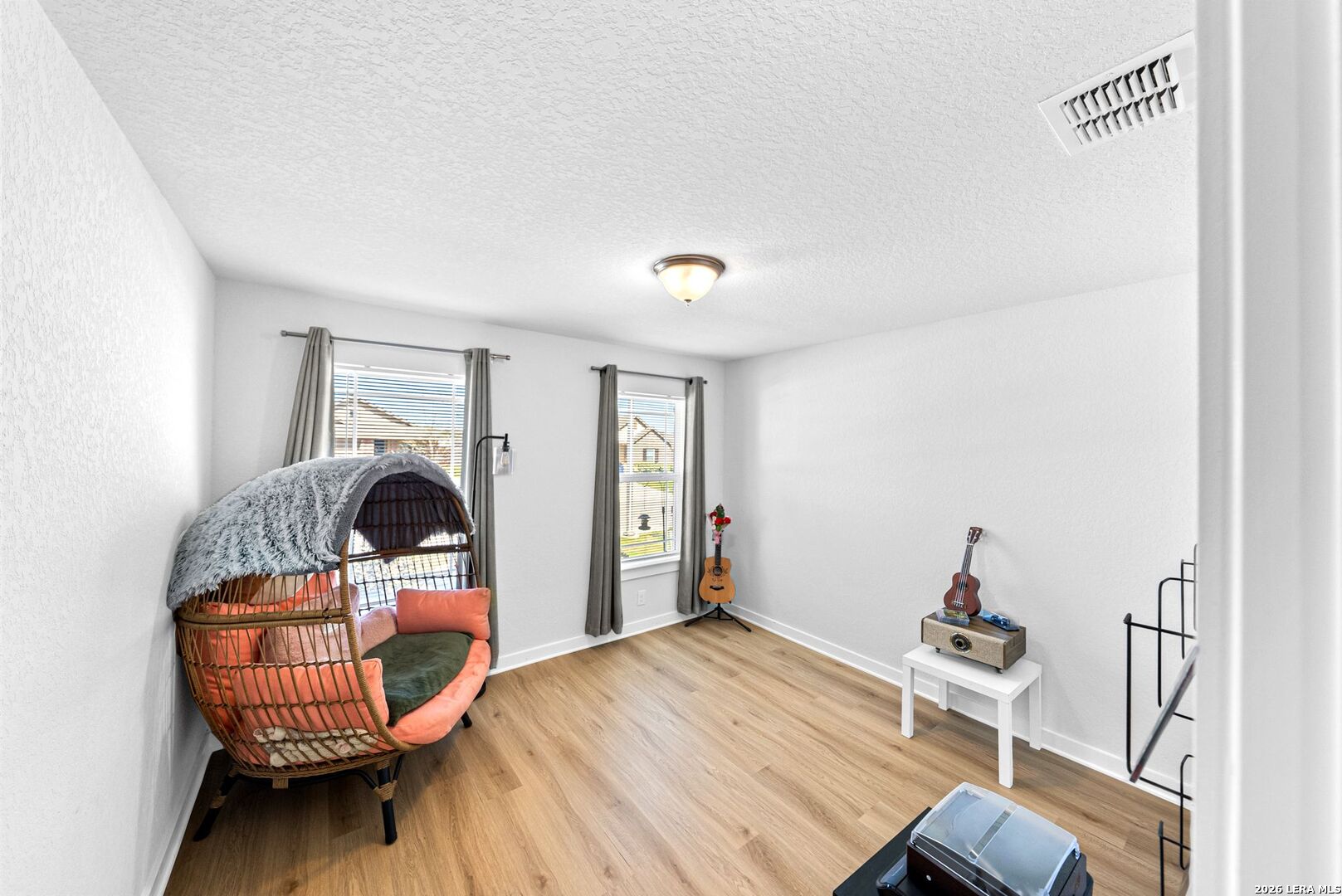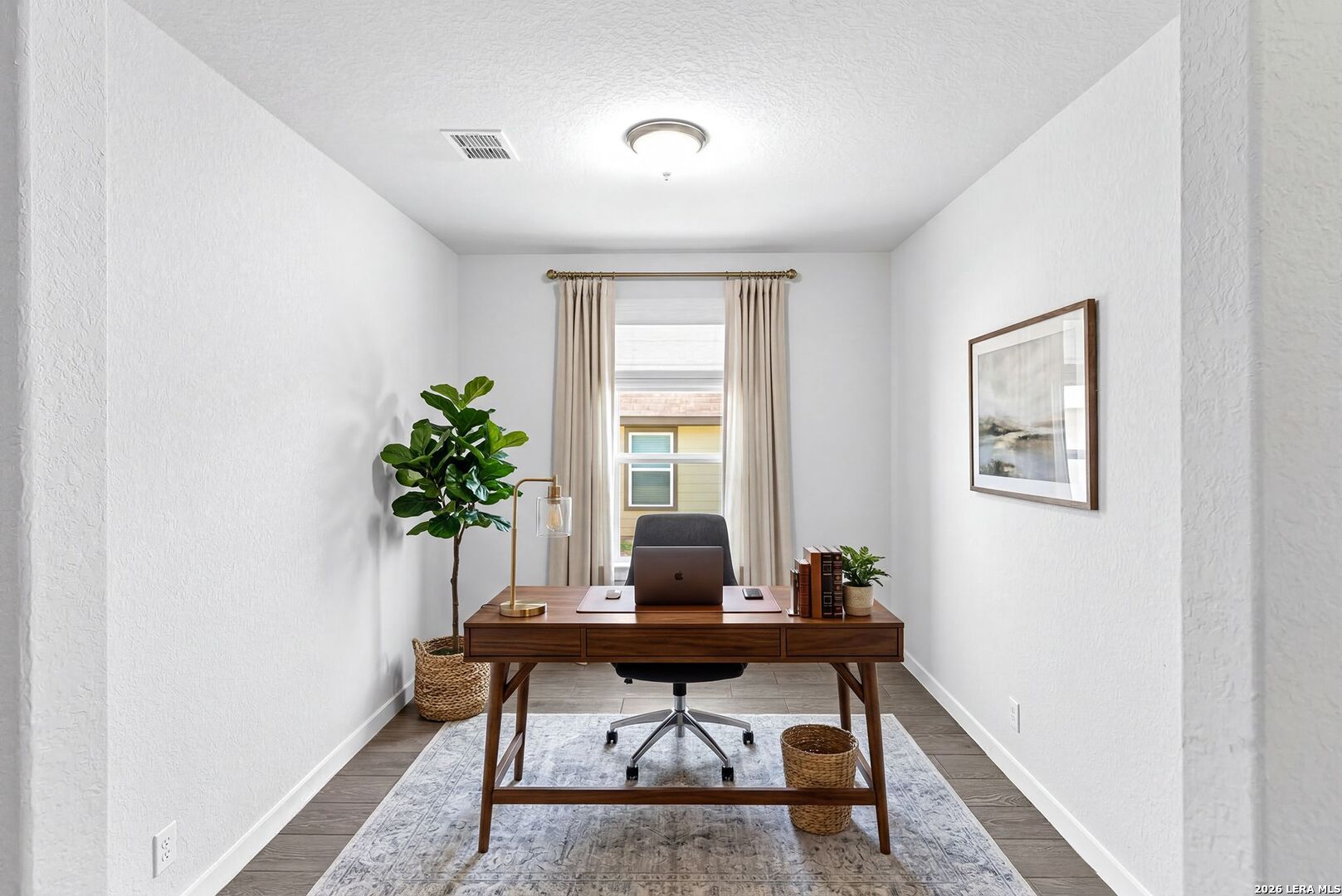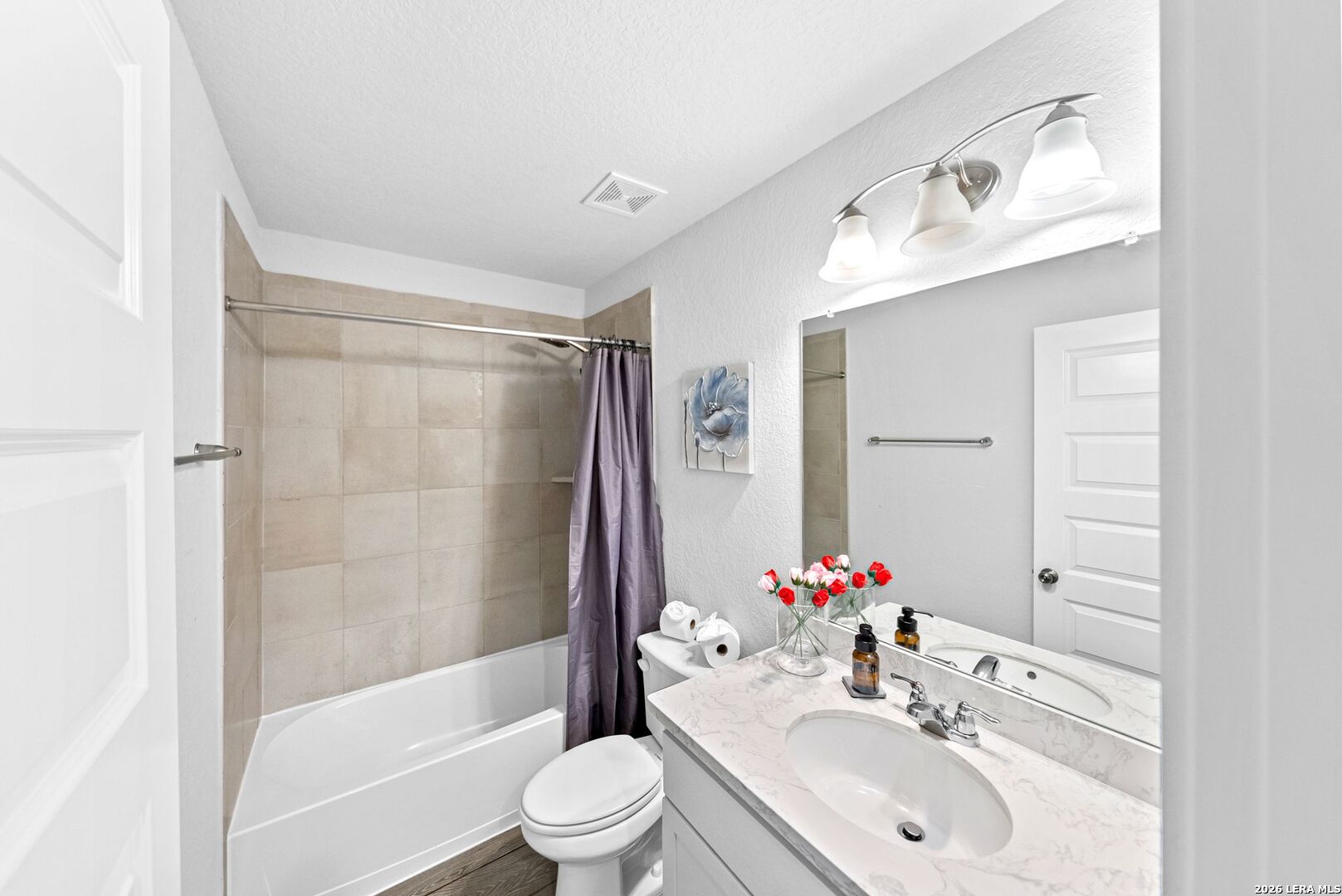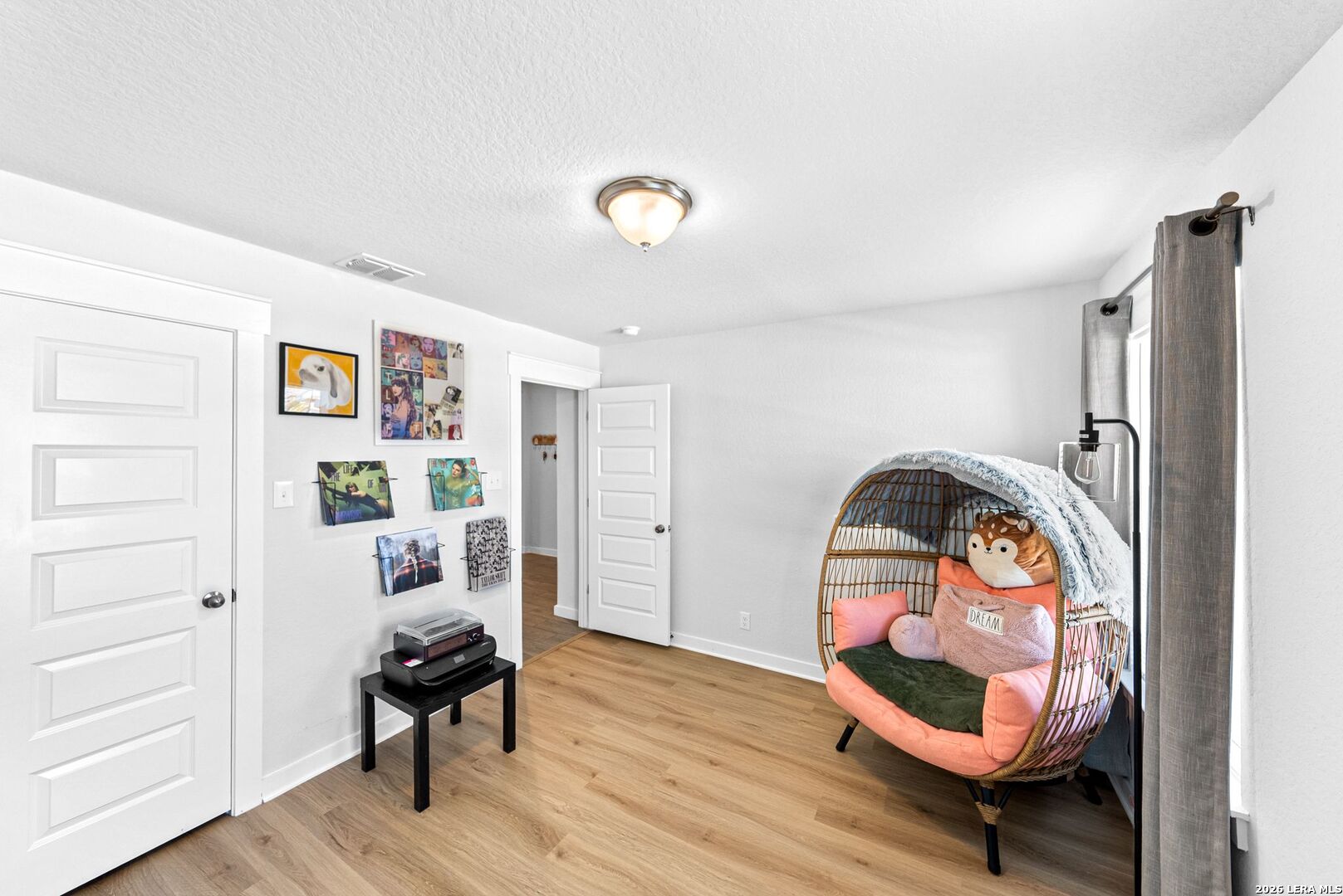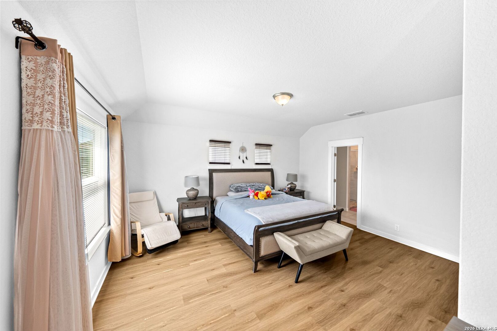Step into a home that gives you space to live fully, gather comfortably, and enjoy the rhythm of everyday life. This thoughtfully designed two story home offers five bedrooms, three full bathrooms, a dedicated office, and a spacious loft, creating the kind of flexibility that fits real life without compromise. From the moment you enter, the upgraded flooring carries you through an open and inviting layout that feels both bright and grounded. The kitchen is the centerpiece of the home, designed for connection as much as function. White shaker style cabinets, stainless steel appliances, and sleek omegastone countertops create a clean and modern look, while the large island becomes a natural gathering place. It is easy to picture mornings starting here with coffee and quiet conversation, or evenings filled with laughter as meals are shared and stories are told. Having both the primary suite and a secondary bedroom on the main floor offers a level of convenience that stands out. Whether it is for guests, extended family, or simply the ease of having a bedroom close by, the layout adapts to your needs. The primary suite provides a peaceful retreat, with a spacious bathroom featuring a walk in shower, and a large closet that makes daily routines feel organized and effortless. The office creates a dedicated space for productivity, whether working from home, managing schedules, or focusing on personal projects. Upstairs, the loft becomes a natural extension of the living space. It can transform into a movie room, game area, or a place where everyone can unwind at the end of the day without feeling crowded. Step outside to the extended covered patio where the pace of the day slows down. It is the perfect setting for weekend barbecues, evening conversations, or simply enjoying fresh air as the sun sets. The backyard is supported by full sod and an irrigation system, making it easy to maintain a clean and inviting outdoor space year round. This home brings together space, comfort, and thoughtful design in a way that makes daily living feel smooth and enjoyable. It is more than just square footage. It is a place where routines feel easier, gatherings feel natural, and home truly feels like home.