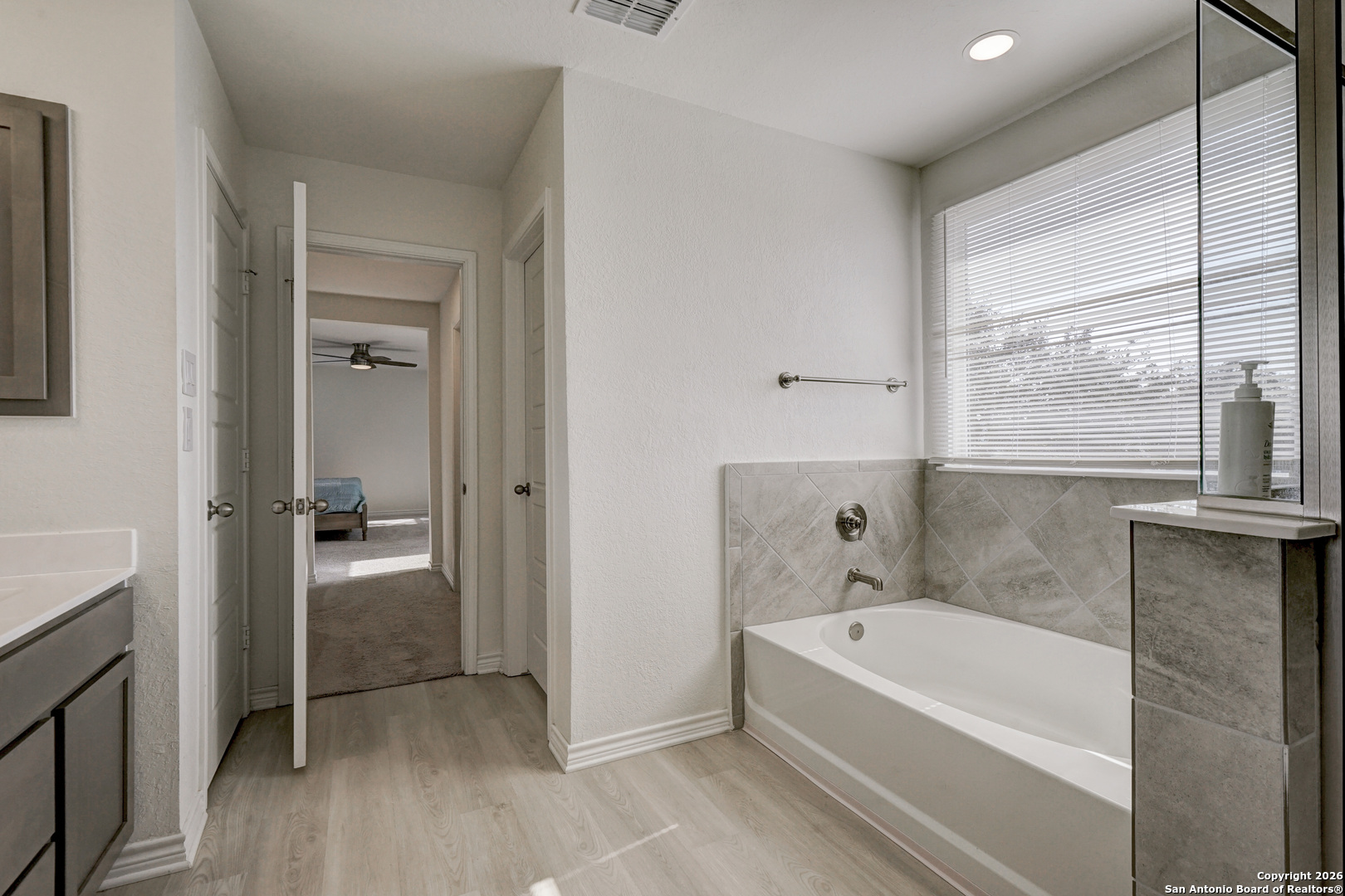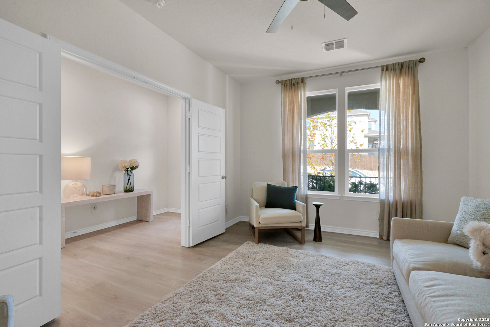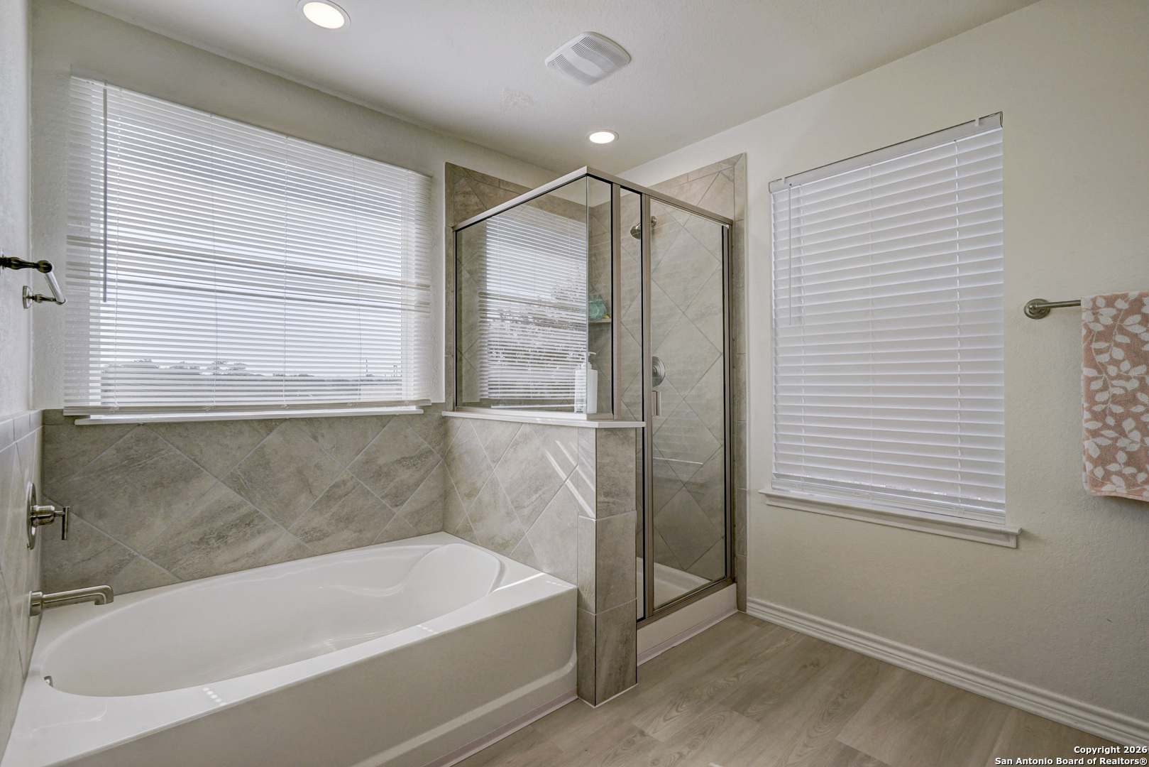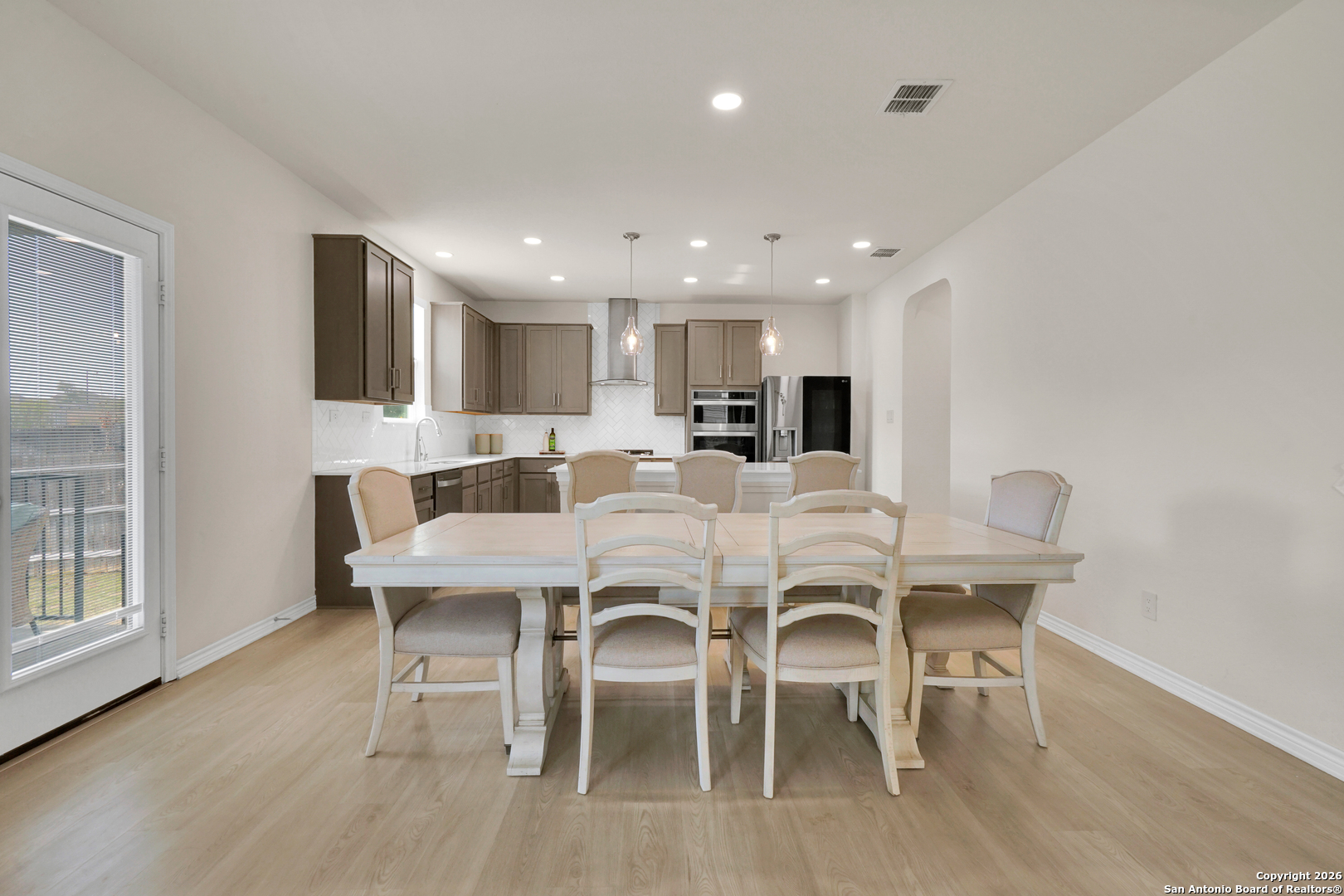 Welcome to this exceptional 3-bedroom, 2.5-bath residence in the desirable Edgebrook subdivision-crafted with thoughtful design and elevated finishes throughout. Offering an inviting office at the front of the home, this two-story beauty blends modern style with the comfort and convenience today's buyers love. Step inside to an impressive open layout where the kitchen overlooks the expansive great room, creating a seamless flow ideal for both entertaining and everyday living. The gourmet kitchen stands out with its Woodmont Dakota 42-inch upper cabinets in a rich ash stain, paired with elegant Silestone Blanco Maple countertops. A striking Emser Catch glossy tile backsplash adds a polished touch, while the extended breakfast bar provides additional seating and prep space. Culinary enthusiasts will appreciate the Whirlpool gas cooktop, smart combination wall oven, canopy hood, and dishwasher-all designed for a high-performance cooking experience. A Moen Sleek high-arc faucet completes the stylish and functional setup. The primary suite offers a peaceful retreat with a beautifully appointed bathroom featuring a separate 42-inch garden tub and tiled shower surround. The extended vanity includes convenient knee space and dual sinks accented by Moen Gibson faucets, creating a spa-like environment. Secondary bedrooms are generously sized, offering flexibility for family, guests, or hobbies. The dedicated study with double doors near the entry is perfect for welcoming clients or creating a quiet space to work from home. Outdoors, unwind under the covered patio and enjoy a lush yard supported by a full sprinkler system-ideal for low-maintenance living and year-round enjoyment. Additional upgrades include Kwikset Amador entry hardware and a wireless security system for added peace of mind. Better than new construction and thoughtfully designed from top to bottom, this home in Edgebrook delivers style, comfort, and convenience in every detail. Ready to welcome its next owner, it's a must-see for anyone seeking modern living in a prime location.
