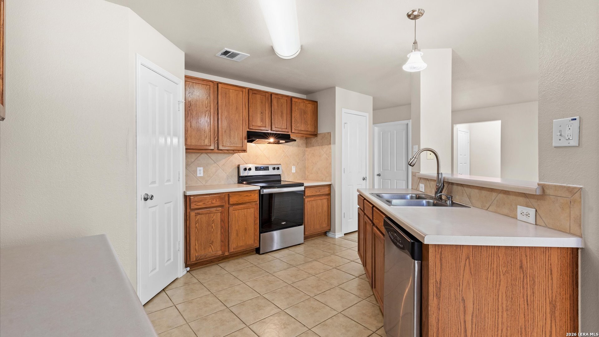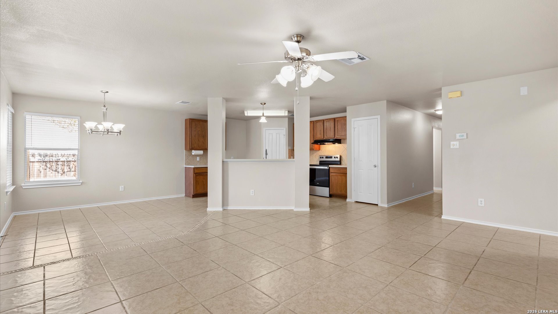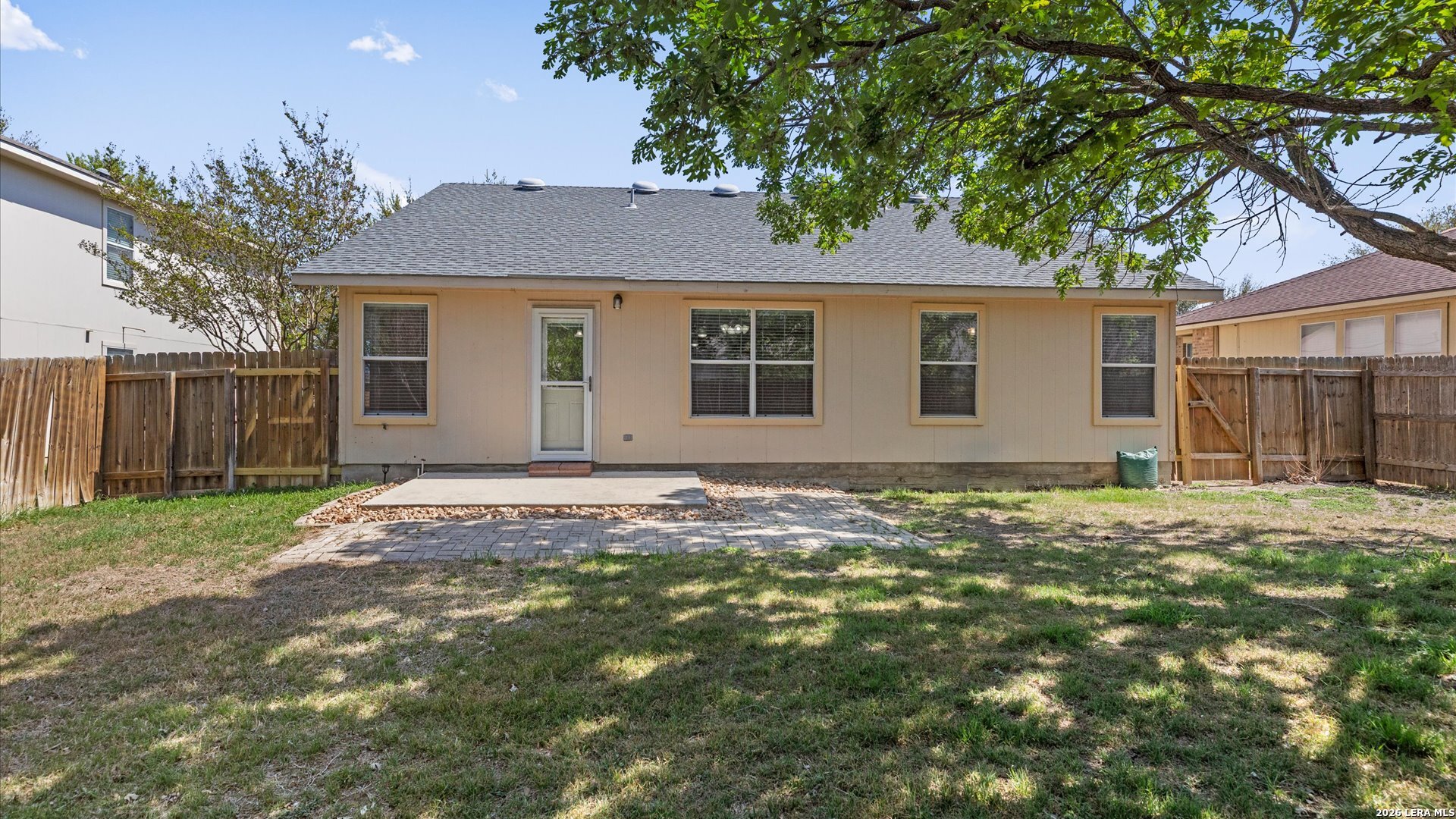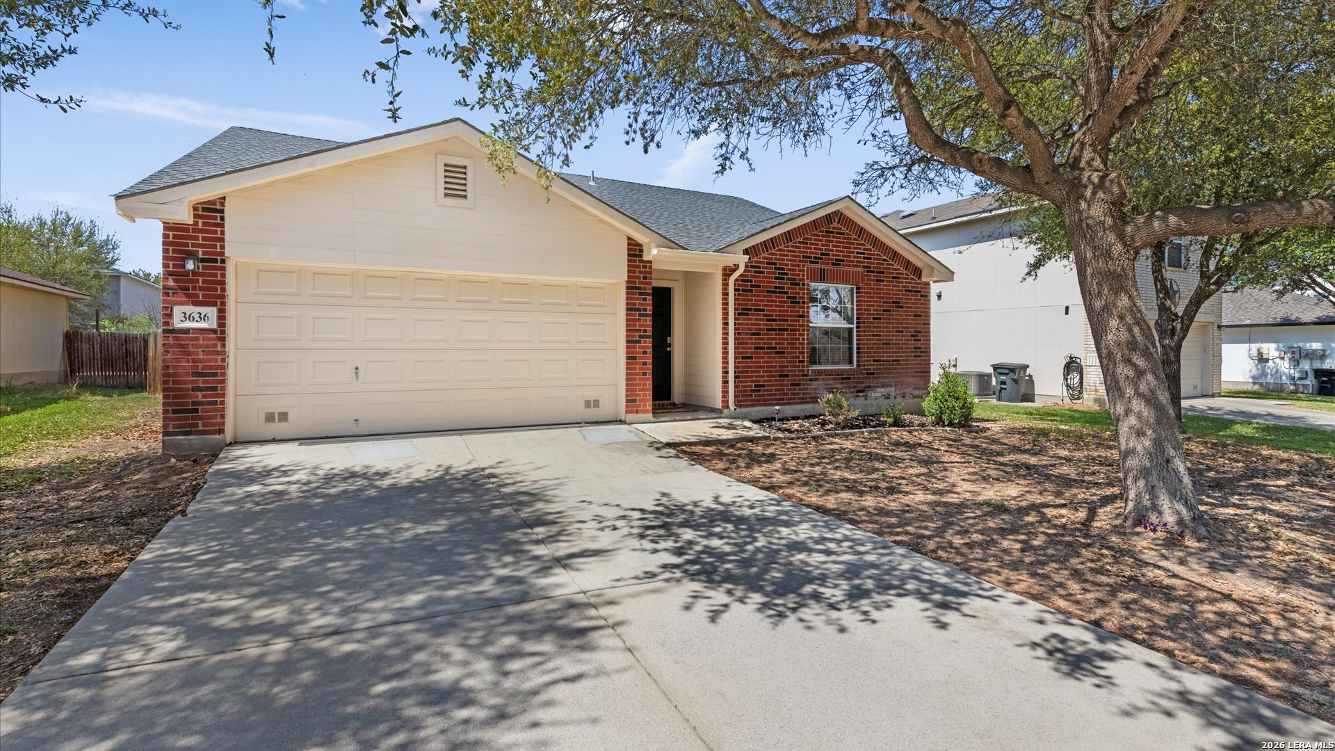 Welcome to 3636 Tilden Trail in New Braunfels, a 3-bedroom, 2-bathroom single-story home featuring all tile floors and a fresh coat of paint. This move-in-ready residence offers an open floor plan where the kitchen-complete with a breakfast bar, walk-in pantry, and electric cooking-flows directly into the dining and family areas. The master suite includes a walk-in closet, double vanity, and a garden tub/shower combo. Exterior highlights include a level lot with mature trees, roof replaced July 2022, a brand-new water heater installed in 2025, and a 2-car attached garage. Located in the Morningside subdivision, residents have access to a park, playground, and walking trails, with zoning for Morningside Elementary, Danville Middle, and Davenport High School.