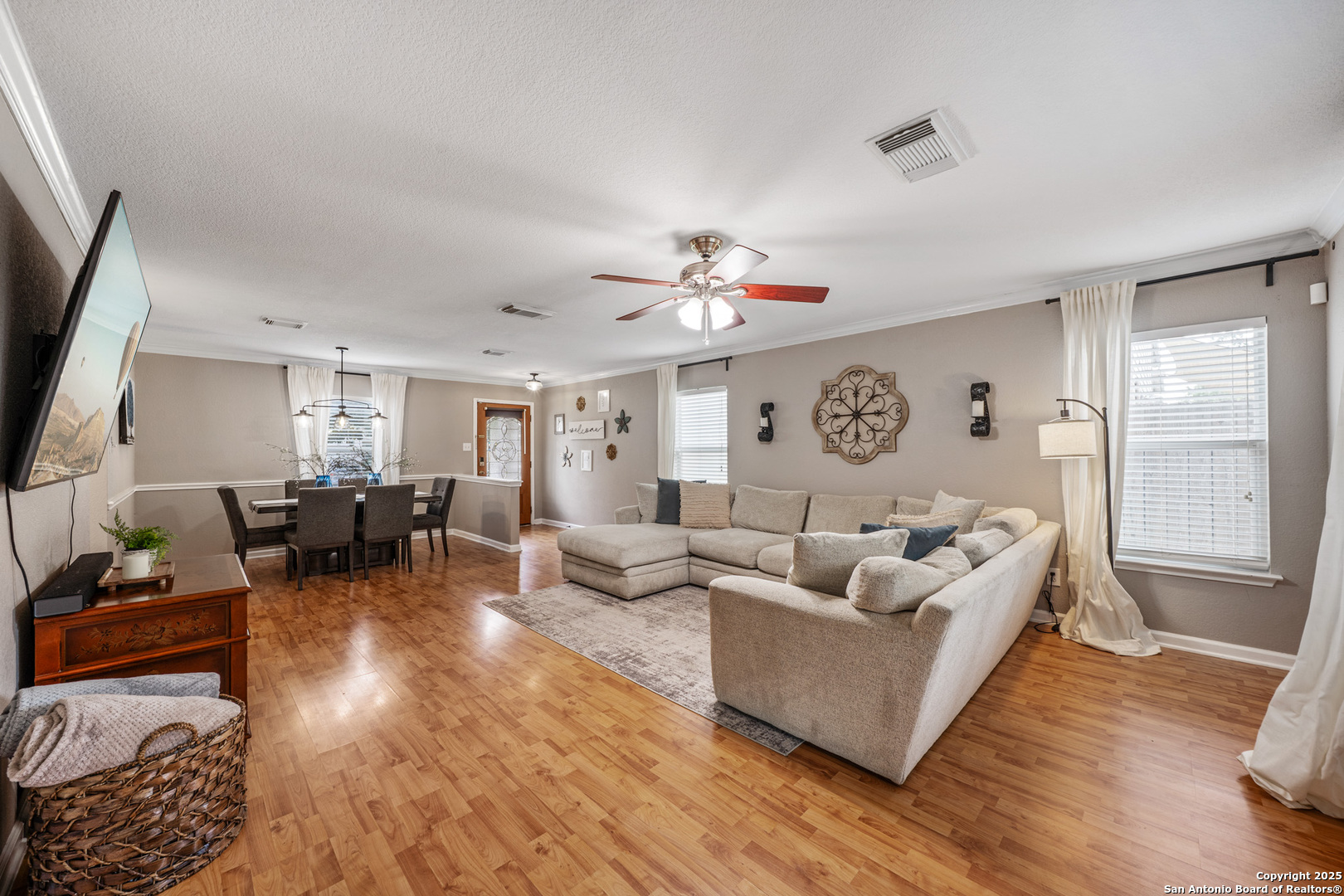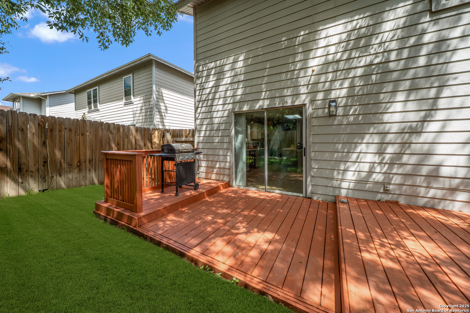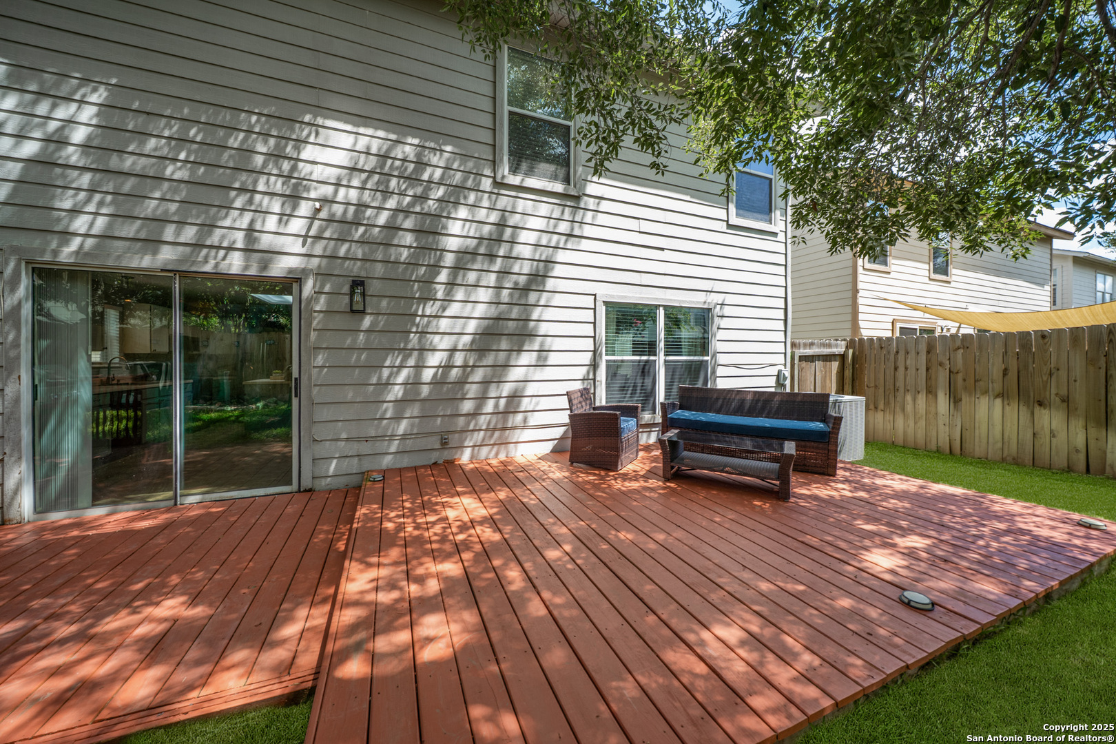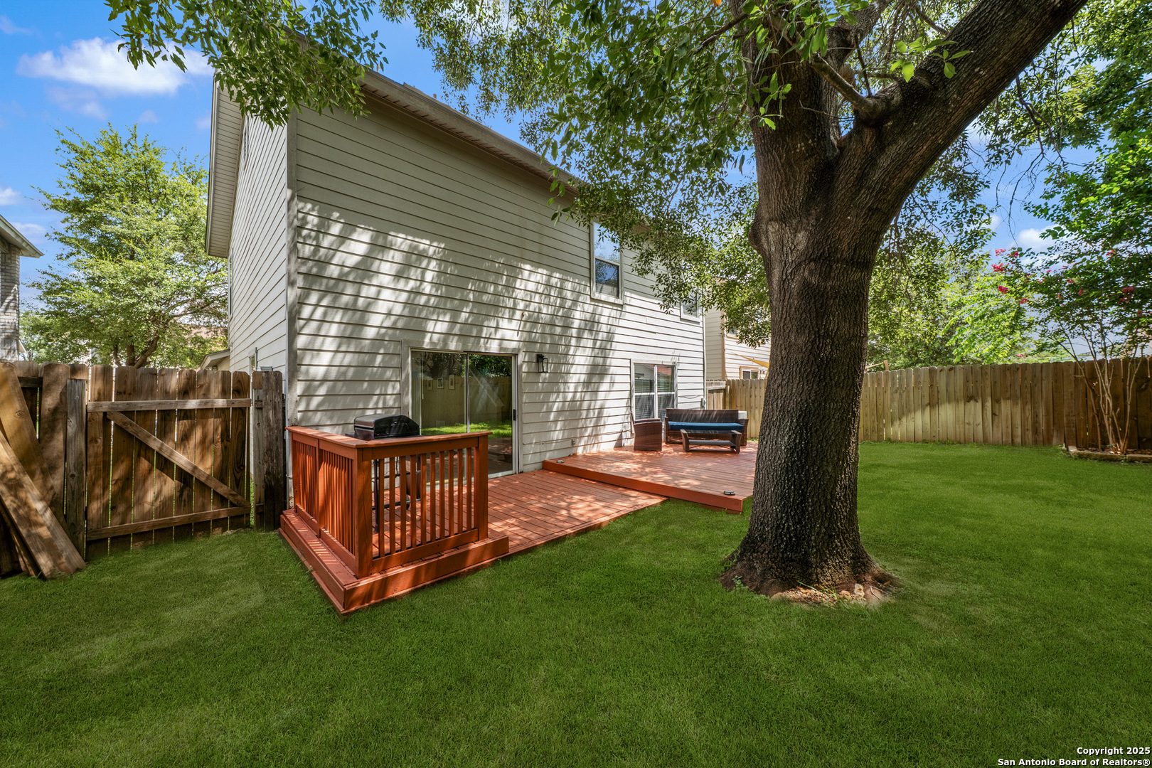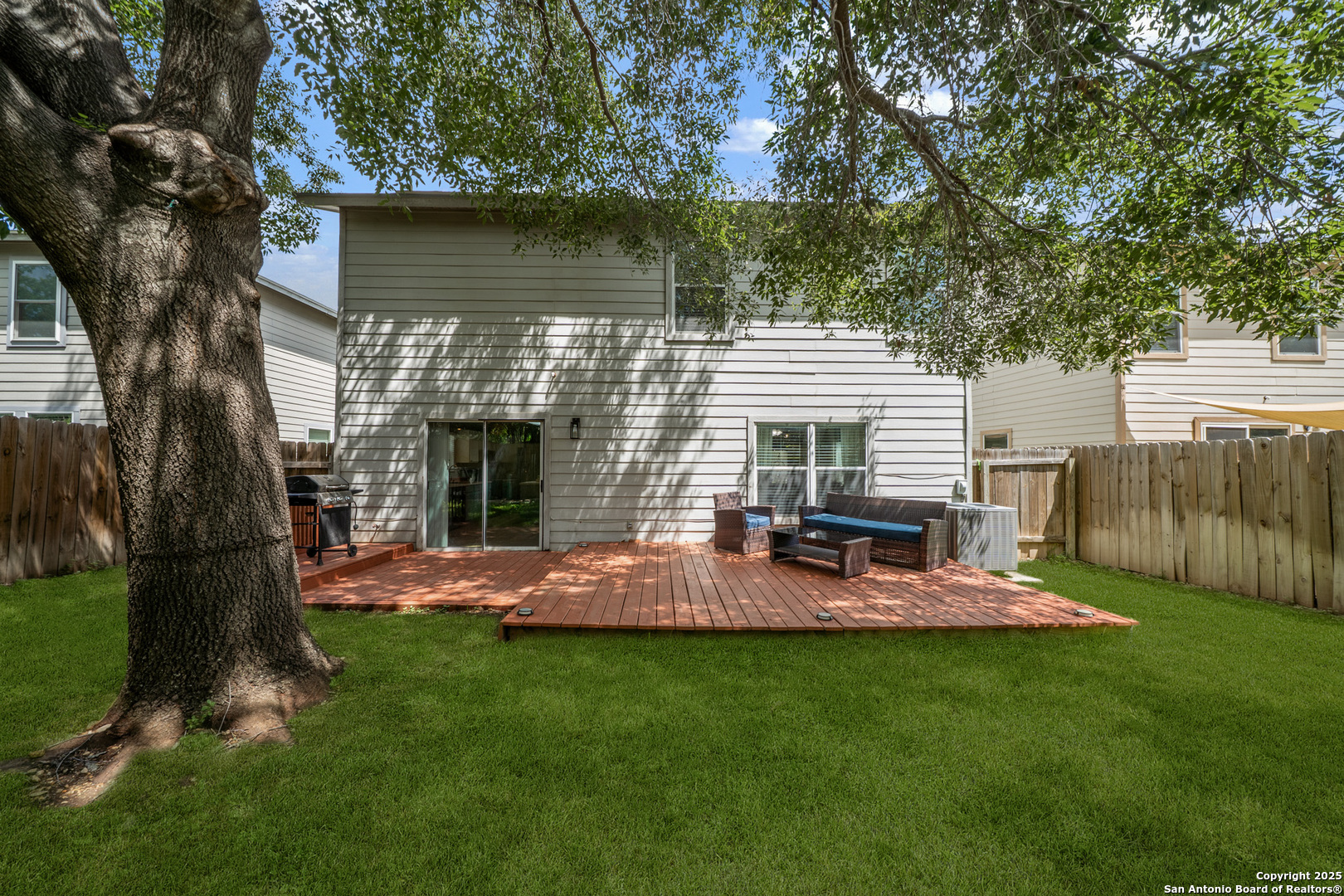 Beautifully Updated Two-Story Home in the Heart of Brookstone. Tucked beneath a canopy of mature oak trees, this charming two-story home offers the perfect balance of warmth, style, and functionality. From the exceptional curb appeal to the abundance of natural light throughout, every detail invites you into a welcoming and open living space. The main level features a spacious family room that flows effortlessly into the dining area and a chef-inspired island kitchen. Recently updated, the kitchen boasts sleek cabinetry, a stylish backsplash, generous counter space, ample storage, and a walk-in pantry-ideal for both daily living and entertaining. Upstairs, the private primary suite offers a peaceful retreat with a beautifully renovated ensuite bath. Two additional bedrooms and a full secondary bathroom provide comfort and flexibility for family or guests. Enjoy outdoor living in the serene, tree-shaded backyard complete with a large deck and lush landscaping-perfect for relaxing evenings or weekend gatherings. Conveniently located near top-rated NEISD schools, shopping, dining, the airport, and McAllister Park, this home delivers both comfort and convenience in a highly sought-after neighborhood.