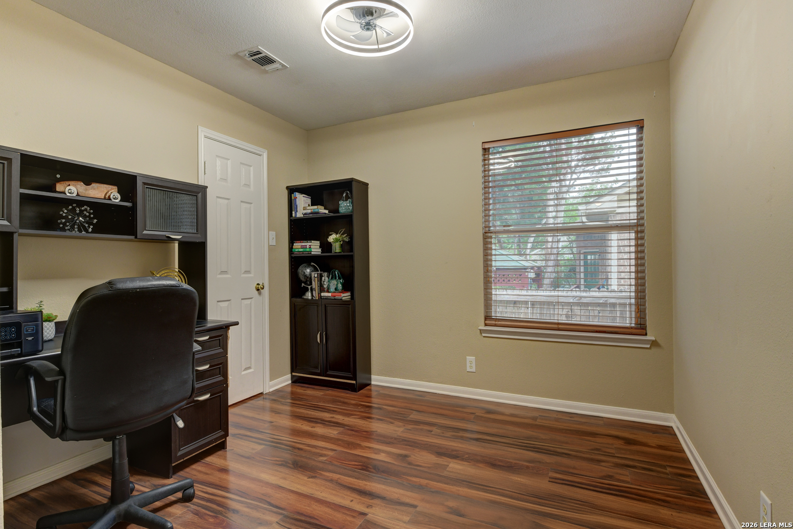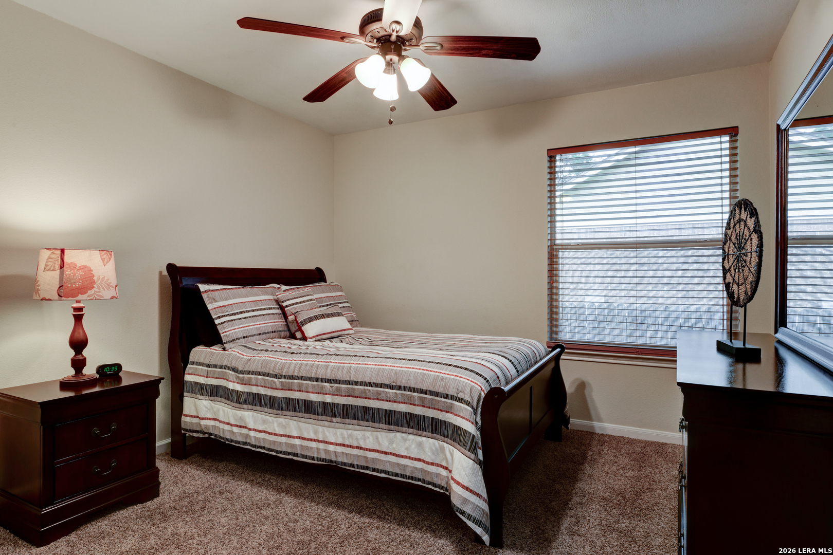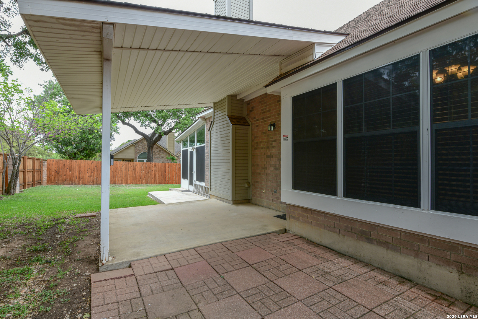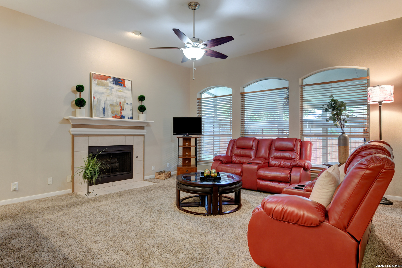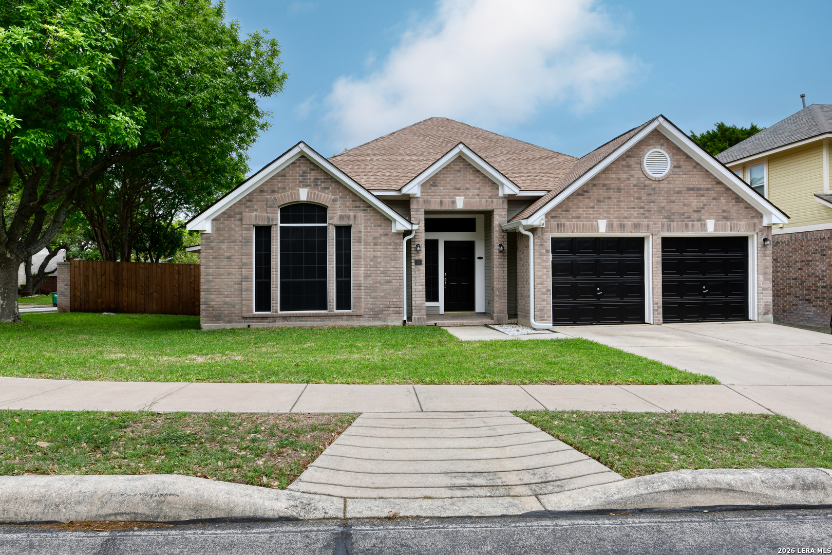 Single-story David Weekley home in the sought-after gated community of Finesilver Ranch, ideally situated on a corner lot. This 4-bedroom, 2-bath home offers a functional layout with a combined living and dining area, plus an open-concept kitchen and family room. Spacious kitchen features island, skylight, cooktop, abundant countertops, built-in oven replaced in 2023, and eat-in breakfast area. Living room offers a fireplace and opens seamlessly to the kitchen, making it ideal for everyday living and entertaining. Generous primary suite includes dual closets, double vanity, garden tub, separate shower, and private access to the screened-in porch. Additional updates include one AC unit replaced in 2023, roof replaced in 2025, water heater replaced in 2021, and attic ladder replaced in 2022. Complete with gutters and sprinkler system in front and back.