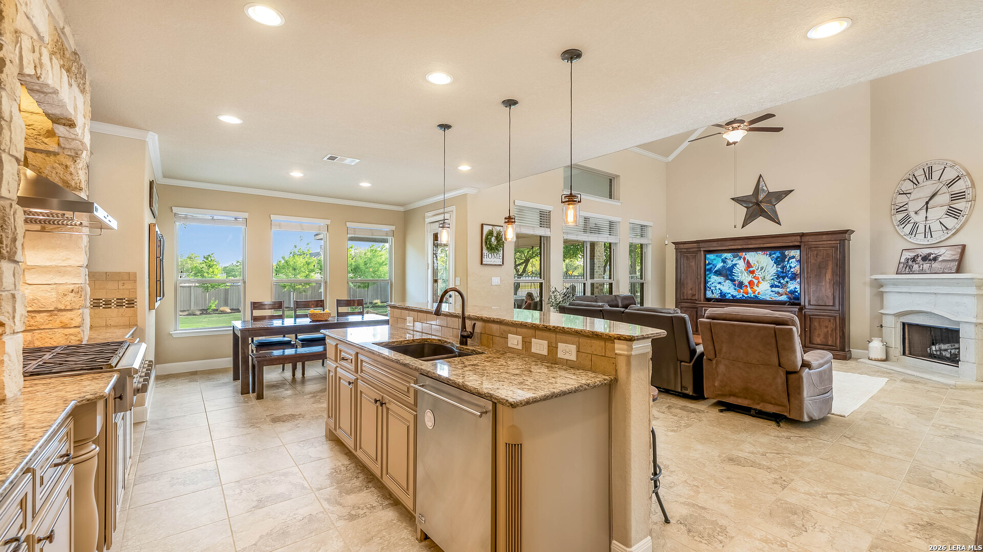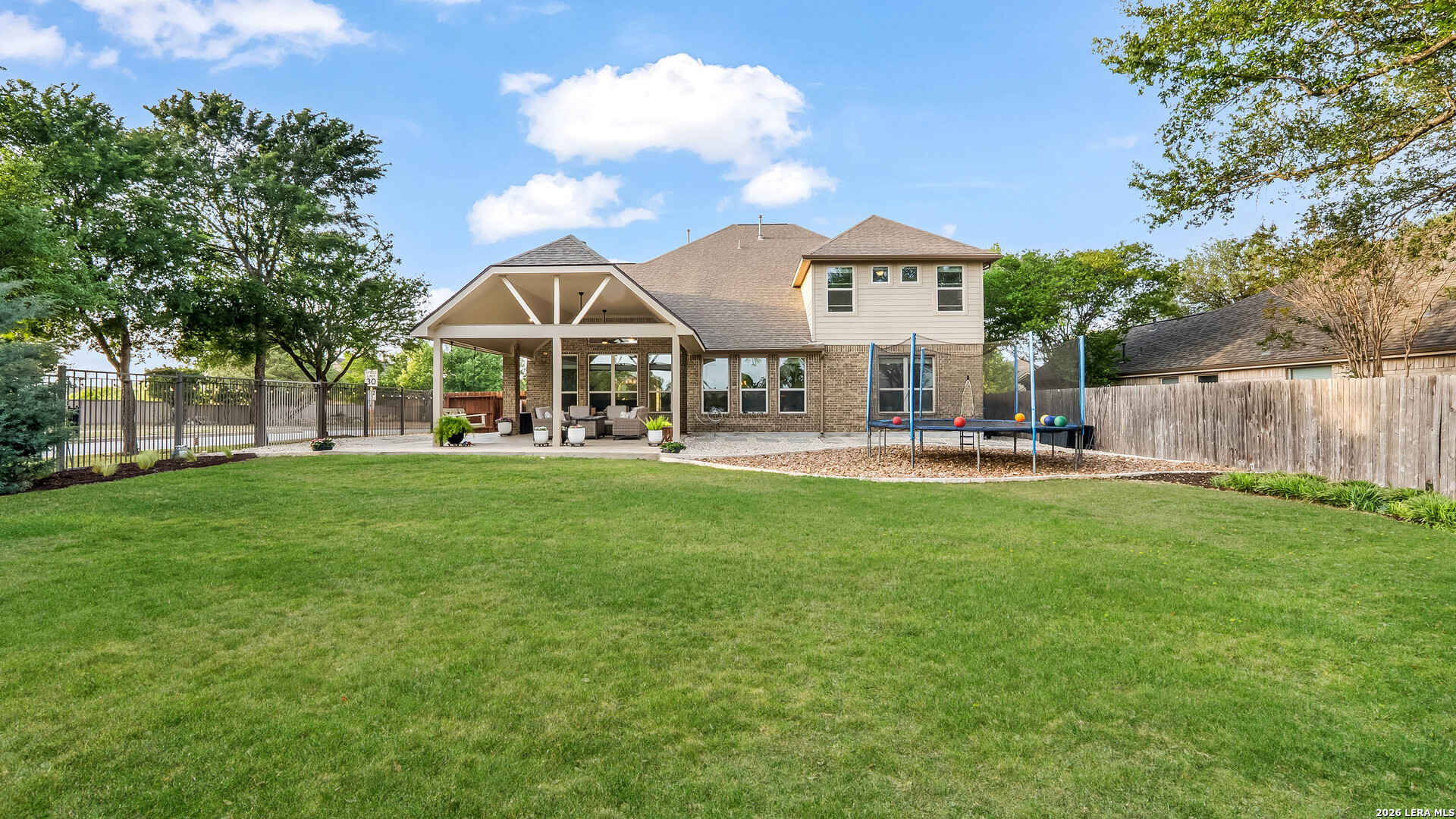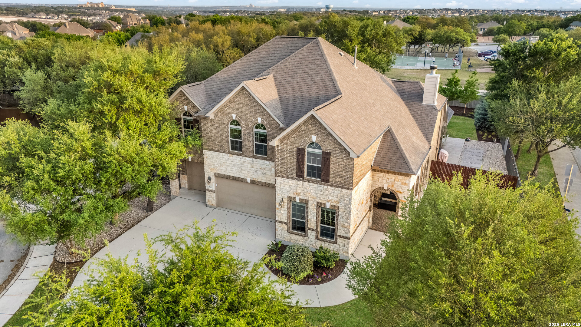 Get ready to fall in love with a home that truly has it all! Nestled on a spacious cul-de-sac corner lot in the highly sought-after Preserve at Indian Springs, this beautifully maintained 4-bedroom, 3-bath home offers the perfect blend of style, comfort, and functionality. From the moment you arrive, the curb appeal stands out with lush landscaping, an extended driveway, and striking exterior accent lighting that adds charm both day and night. The extended driveway, paired with a spacious 3-car garage, provides plenty of room for parking, guests, and additional storage. Step inside to a bright and inviting open floor plan featuring soaring ceilings that create a grand, open atmosphere, along with wood and tile flooring throughout the main level and plush carpet upstairs for added comfort. The kitchen is truly the heart of the home, showcasing gas cooking, granite countertops, custom cabinetry, a built-in oven, a pot filler, and a large island with a built-in wine rack, perfect for entertaining and everyday living. The open layout flows seamlessly into the main living areas, making it ideal for gathering. You'll also find a private study with built-in shelving, perfect for working from home, along with a spacious game/bonus room and a dedicated media room offering endless options for relaxation and entertainment. Step outside to your own backyard retreat, where a stunning upgraded patio provides the perfect setting for hosting or unwinding. A full irrigation system keeps the yard looking lush and well-maintained year-round. Located steps from the incredible community amenities - an oversized family pool, a covered pavilion/clubhouse, a children's playground, a splash pad, a basketball court, jogging trails, and a BBQ area. This home offers not just a place to live, but a lifestyle to love.