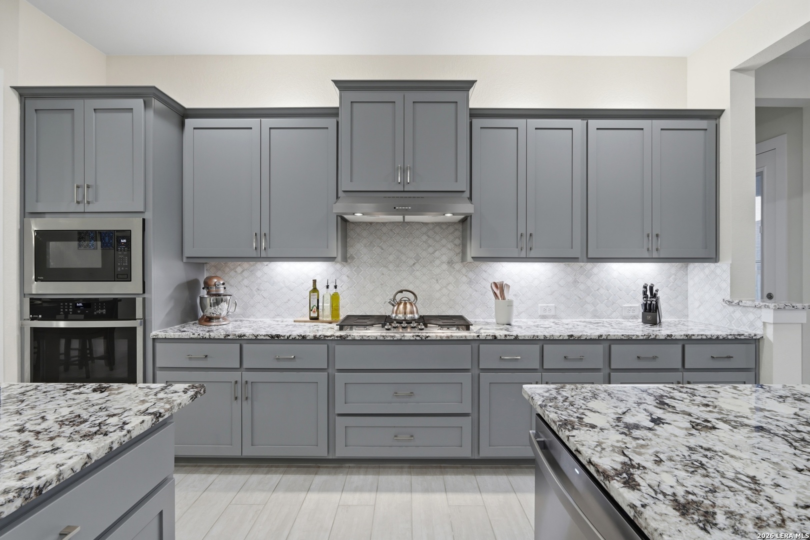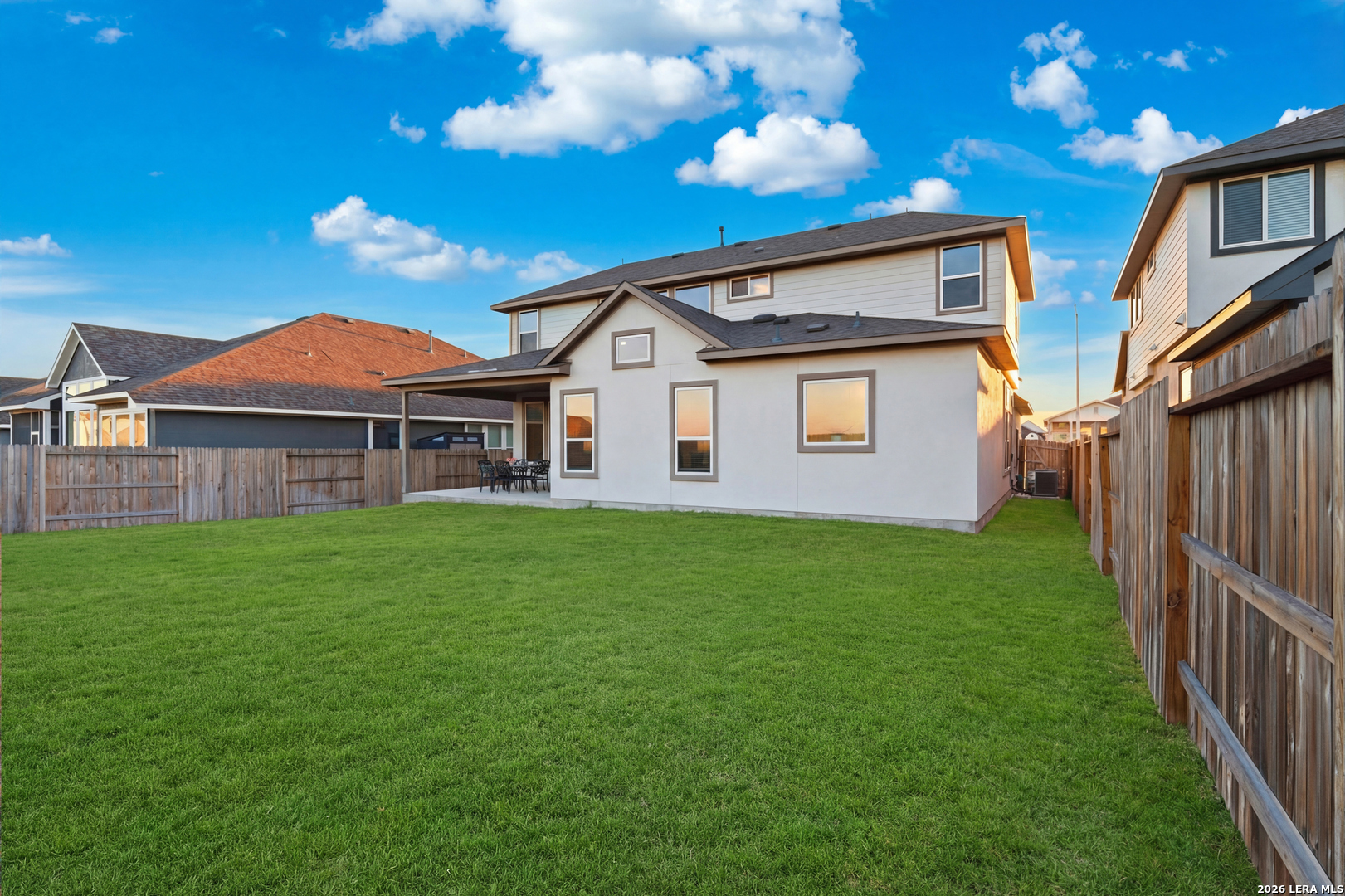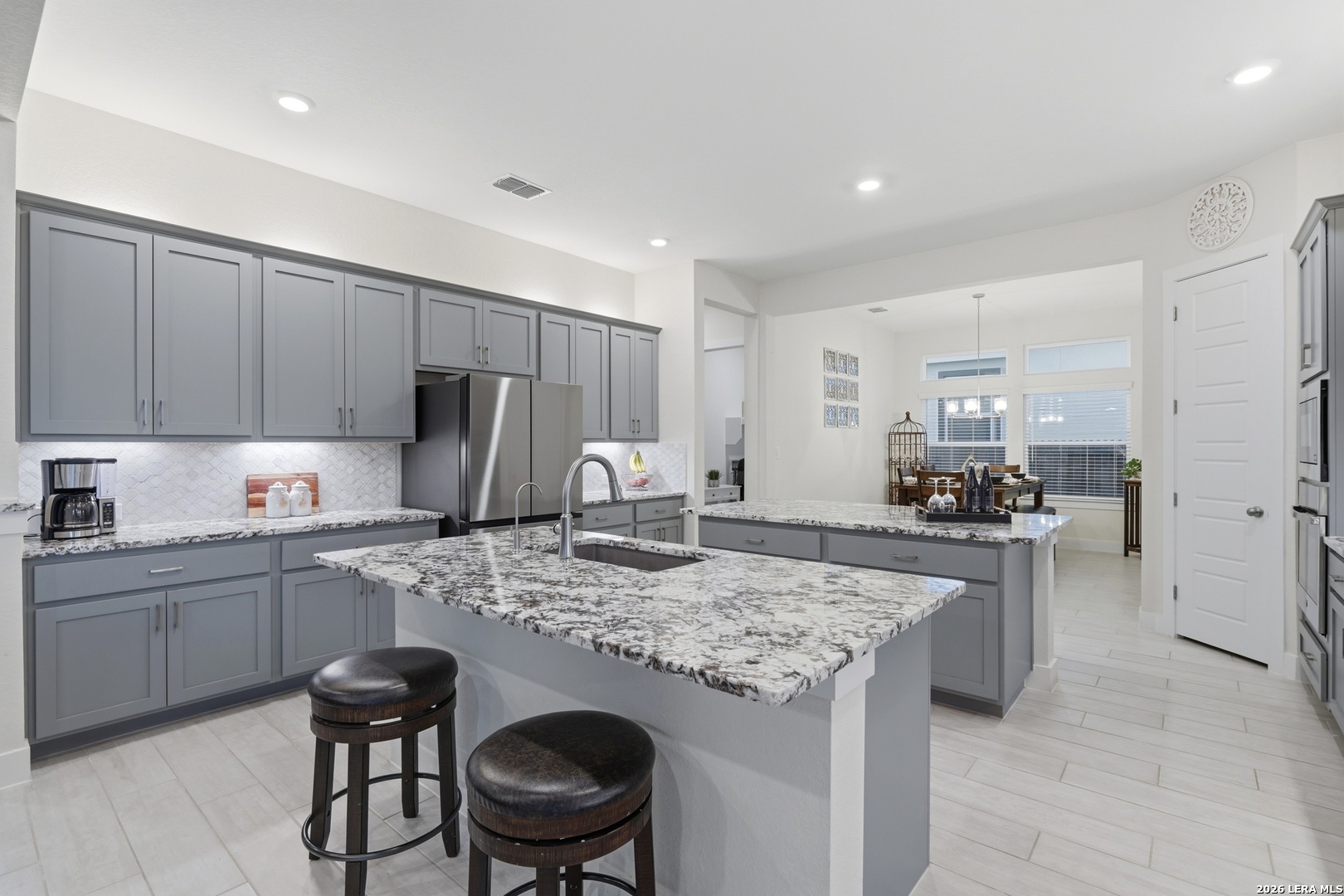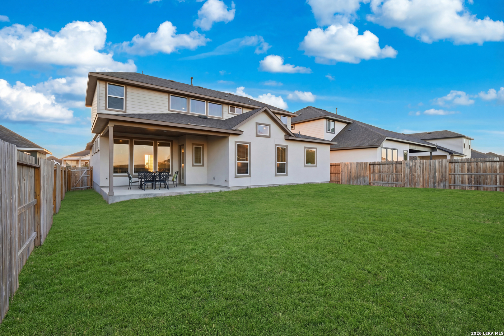 This exceptional, almost one-year-old home truly looks and feels Brand New, perfectly combining luxury, space, and functionality. Located in the desirable subdivision of Village at Three Oaks, this two-story home offers outstanding curb appeal with its four-sided masonry exterior and features 5 spacious bedrooms and 4.5 bathrooms thoughtfully designed for modern living. As you step inside, you're welcomed by the natural light from the large windows, that highlights the formal living, dining and the expansive open-concept layout. The Chef's Kitchen is truly the heart of the home, featuring two oversized islands, quartz countertops, a stylish tile backsplash, stainless steel appliances, ample cabinetry, and generous seating, ideal for entertaining or everyday meals. The main level includes a spacious primary suite with a spa-like bathroom, a garden tub, separate shower, dual vanities, and an oversized walk-in closet. A secondary bedroom with its own full bath perfect for a mother-in-law or guest suite, and the laundry room are also conveniently located downstairs. Upstairs, you'll find three additional bedrooms, two full bathrooms, and a large game room or second living area, offering flexibility and privacy for family or guests. The home also offers an oversized garage with a 3-foot extension, perfect for extra storage, a workshop area, or larger vehicles. Step outside to enjoy your private backyard with a generously sized covered patio and spacious yard perfect for gatherings & entertaining. This beautiful home truly has it all style, comfort, and lifestyle. A must-see that won't last long!