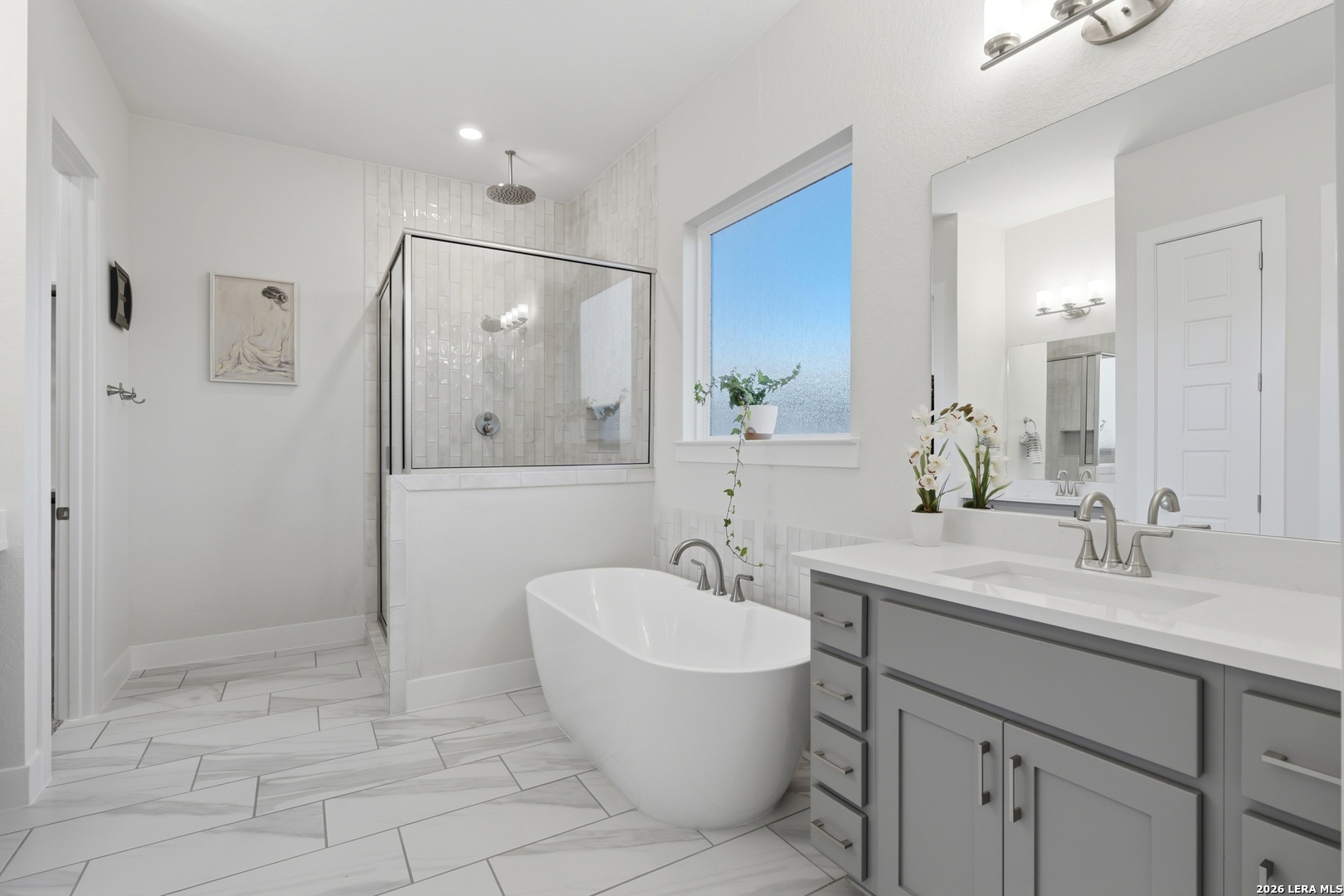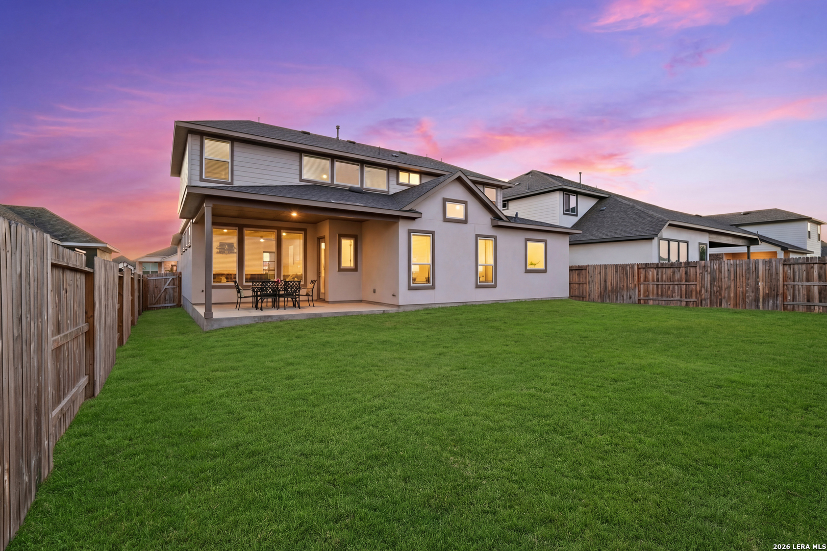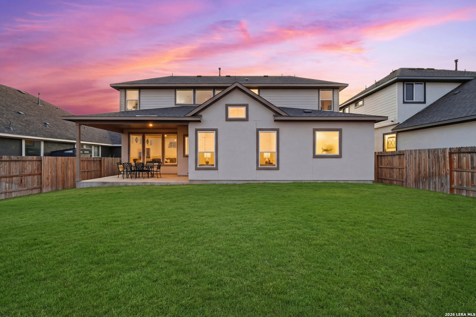 This exceptional, almost one-year-old home truly looks and feels Brand New, perfectly combining luxury, space, and functionality. Located in the desirable subdivision of Village at Three Oaks, this two-story home offers outstanding curb appeal with its four-sided masonry exterior and features 5 spacious bedrooms and 4.5 bathrooms thoughtfully designed for modern living. As you step inside, you're welcomed by the natural light from the large windows, that highlights the formal living, dining and the expansive open-concept layout. The Chef's Kitchen is truly the heart of the home, featuring two oversized islands, quartz countertops, a stylish tile backsplash, stainless steel appliances, ample cabinetry, and generous seating, ideal for entertaining or everyday meals. The main level includes a spacious primary suite with a spa-like bathroom, a garden tub, separate shower, dual vanities, and an oversized walk-in closet. A secondary bedroom with its own full bath perfect for a mother-in-law or guest suite, and the laundry room are also conveniently located downstairs. Upstairs, you'll find three additional bedrooms, two full bathrooms, and a large game room or second living area, offering flexibility and privacy for family or guests. The home also offers an oversized garage with a 3-foot extension, perfect for extra storage, a workshop area, or larger vehicles. Step outside to enjoy your private backyard with a generously sized covered patio and spacious yard perfect for gatherings & entertaining. This beautiful home truly has it all style, comfort, and lifestyle. A must-see that won't last long!