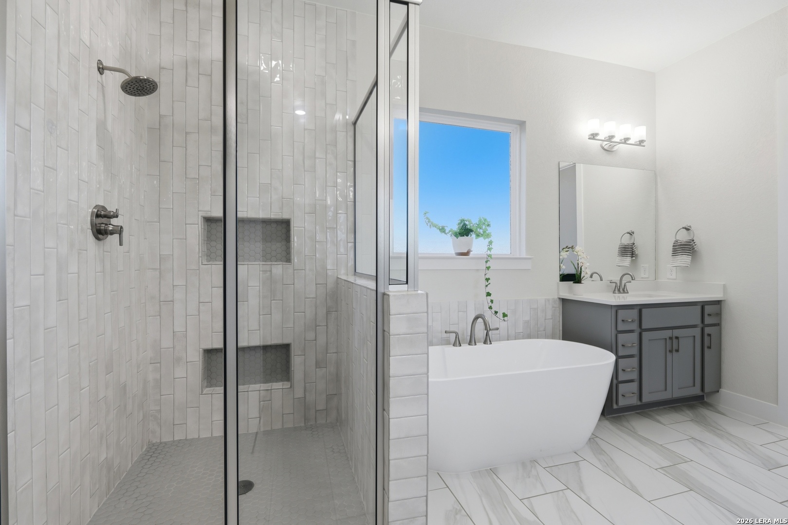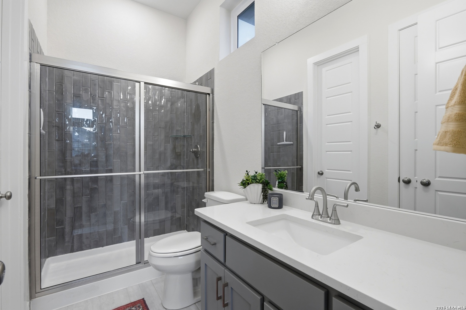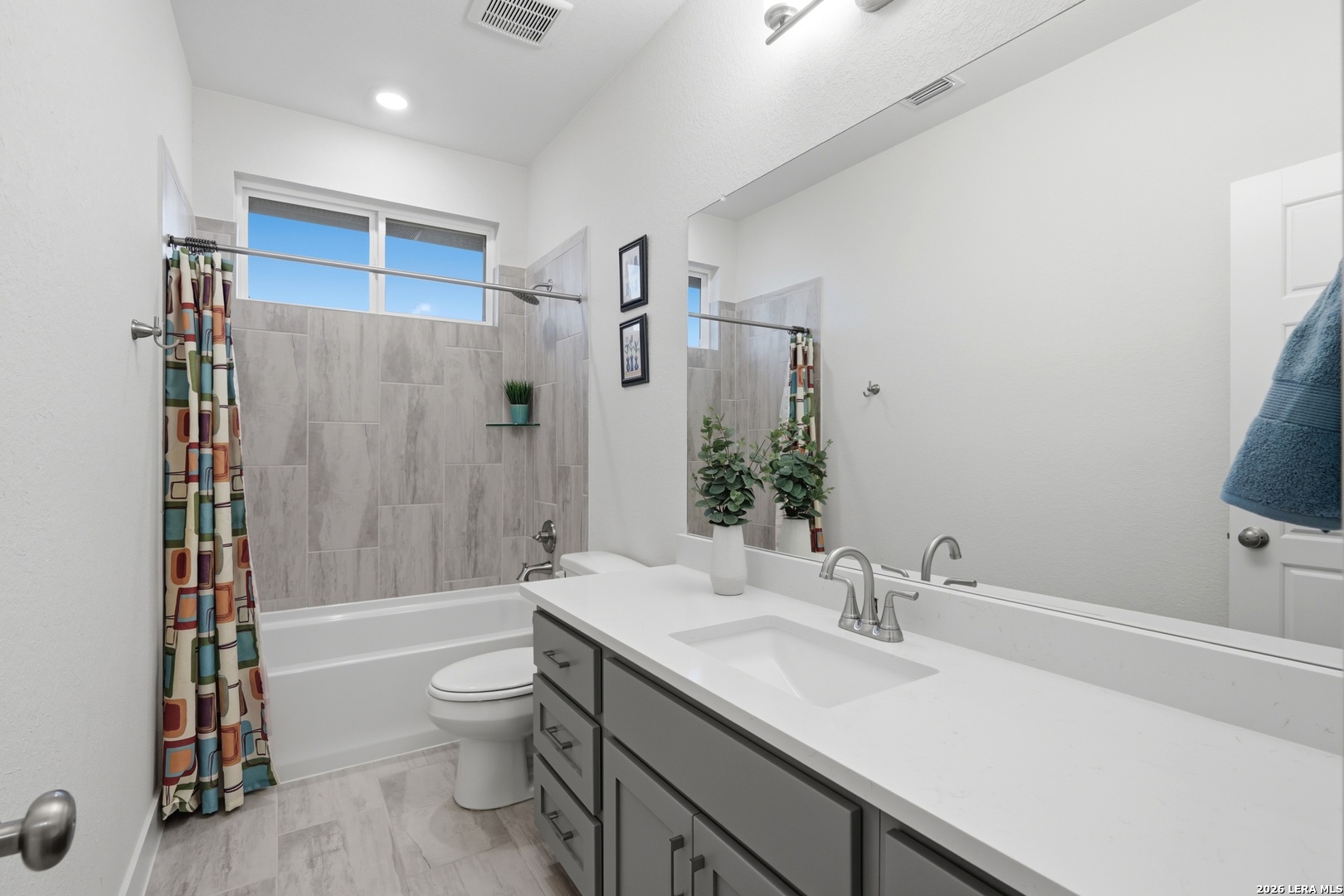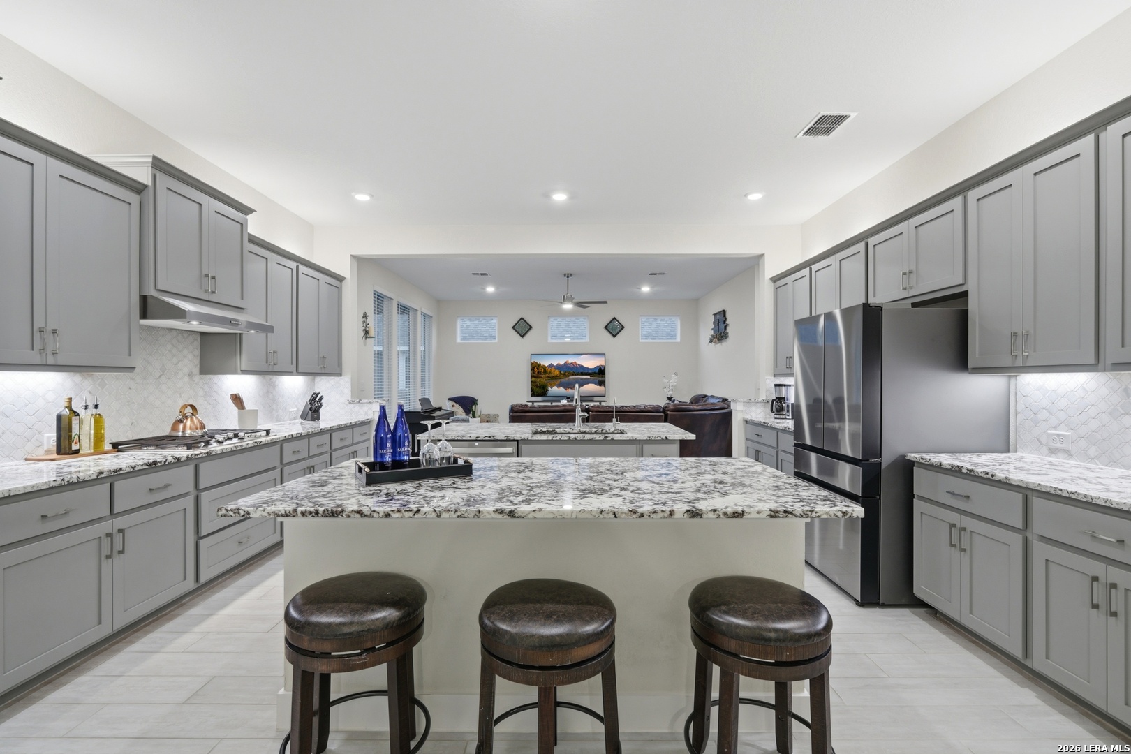 This exceptional, almost one-year-old home truly looks and feels Brand New, perfectly combining luxury, space, and functionality. Located in the desirable subdivision of Village at Three Oaks, this two-story home offers outstanding curb appeal with its four-sided masonry exterior and features 5 spacious bedrooms and 4.5 bathrooms thoughtfully designed for modern living. As you step inside, you're welcomed by the natural light from the large windows, that highlights the formal living, dining and the expansive open-concept layout. The Chef's Kitchen is truly the heart of the home, featuring two oversized islands, quartz countertops, a stylish tile backsplash, stainless steel appliances, ample cabinetry, and generous seating, ideal for entertaining or everyday meals. The main level includes a spacious primary suite with a spa-like bathroom, a garden tub, separate shower, dual vanities, and an oversized walk-in closet. A secondary bedroom with its own full bath perfect for a mother-in-law or guest suite, and the laundry room are also conveniently located downstairs. Upstairs, you'll find three additional bedrooms, two full bathrooms, and a large game room or second living area, offering flexibility and privacy for family or guests. The home also offers an oversized garage with a 3-foot extension, perfect for extra storage, a workshop area, or larger vehicles. Step outside to enjoy your private backyard with a generously sized covered patio and spacious yard perfect for gatherings & entertaining. This beautiful home truly has it all style, comfort, and lifestyle. A must-see that won't last long!