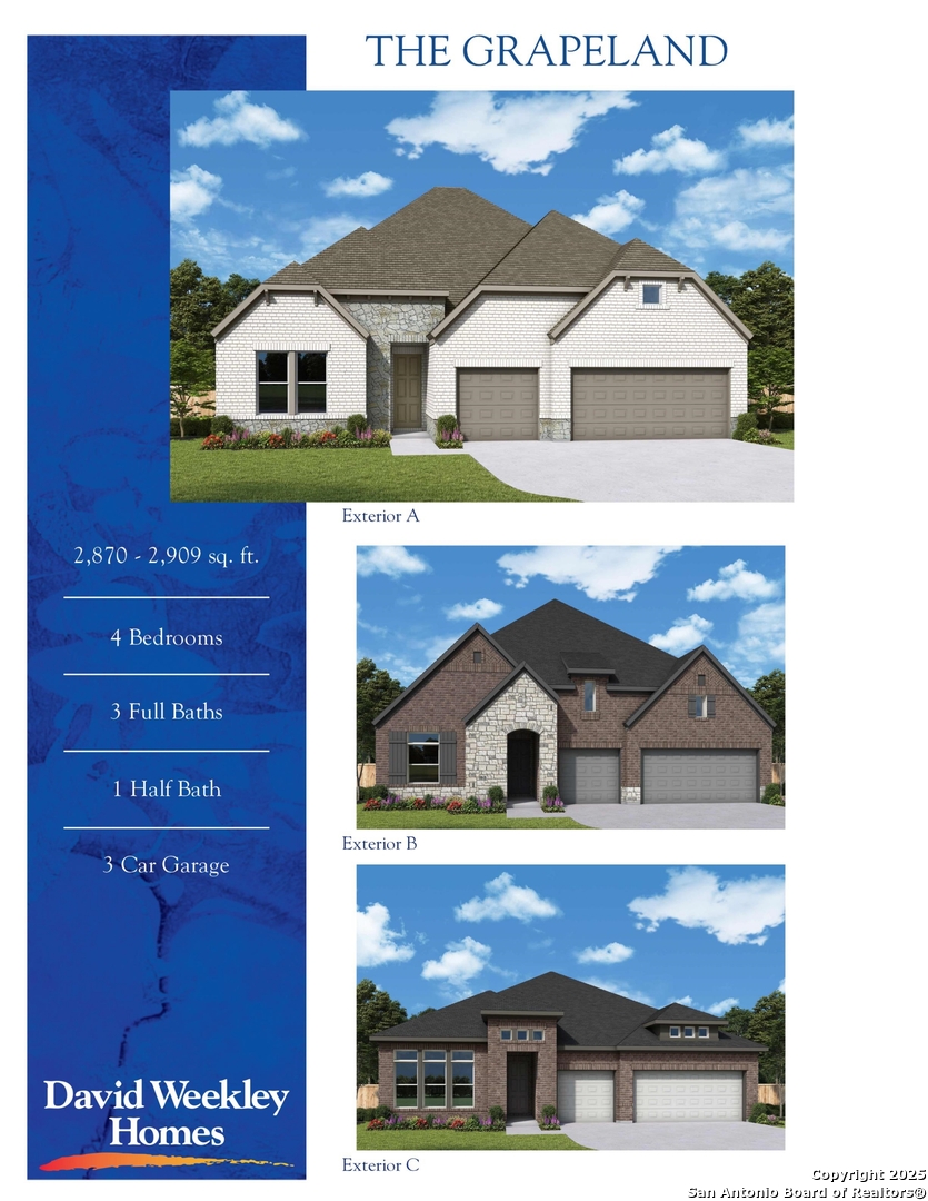 Greet the Grapeland plan by David Weekley Homes in Windsong. 2,909 sq ft, 4 beds, 3 baths, enclosed study, and 3-car garage. Chef's kitchen with a dine-up island and hidden prep space. Open sightlines and sunlight into the family and dining areas, overlooking the covered porch. Owner's Retreat with luxe bath and large walk-in closet. Plus a guest room and two junior bedrooms for versatile living.