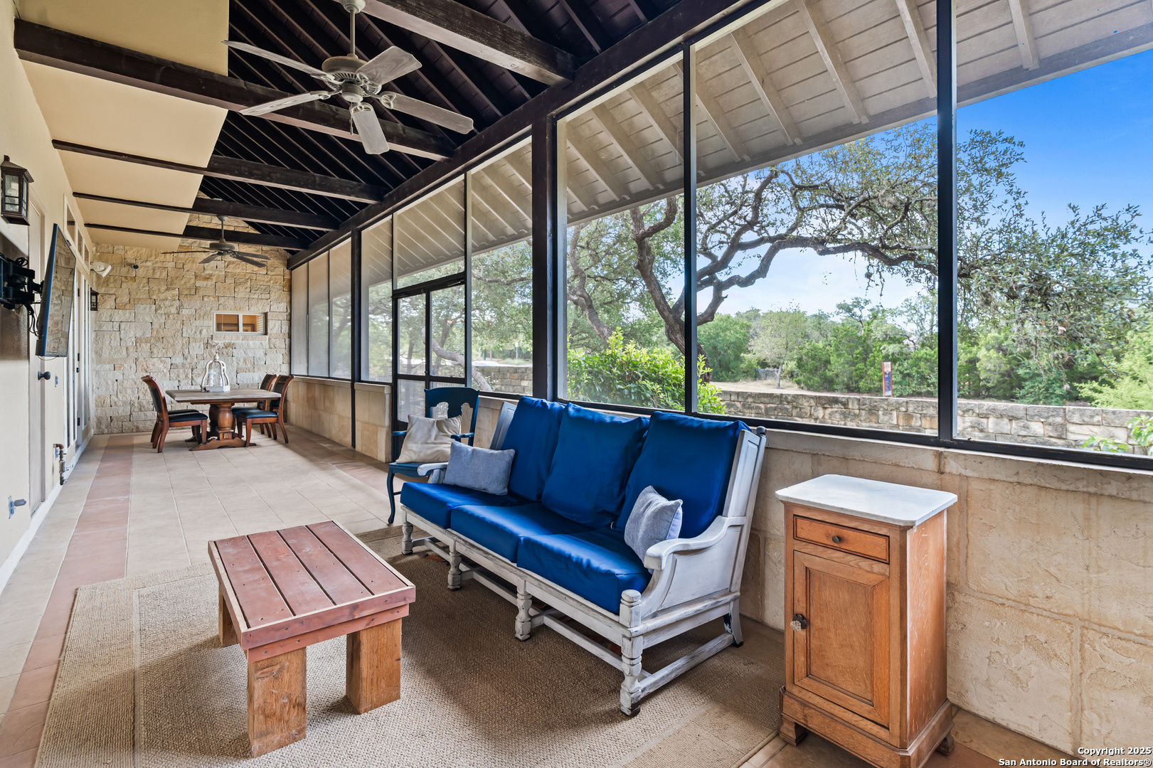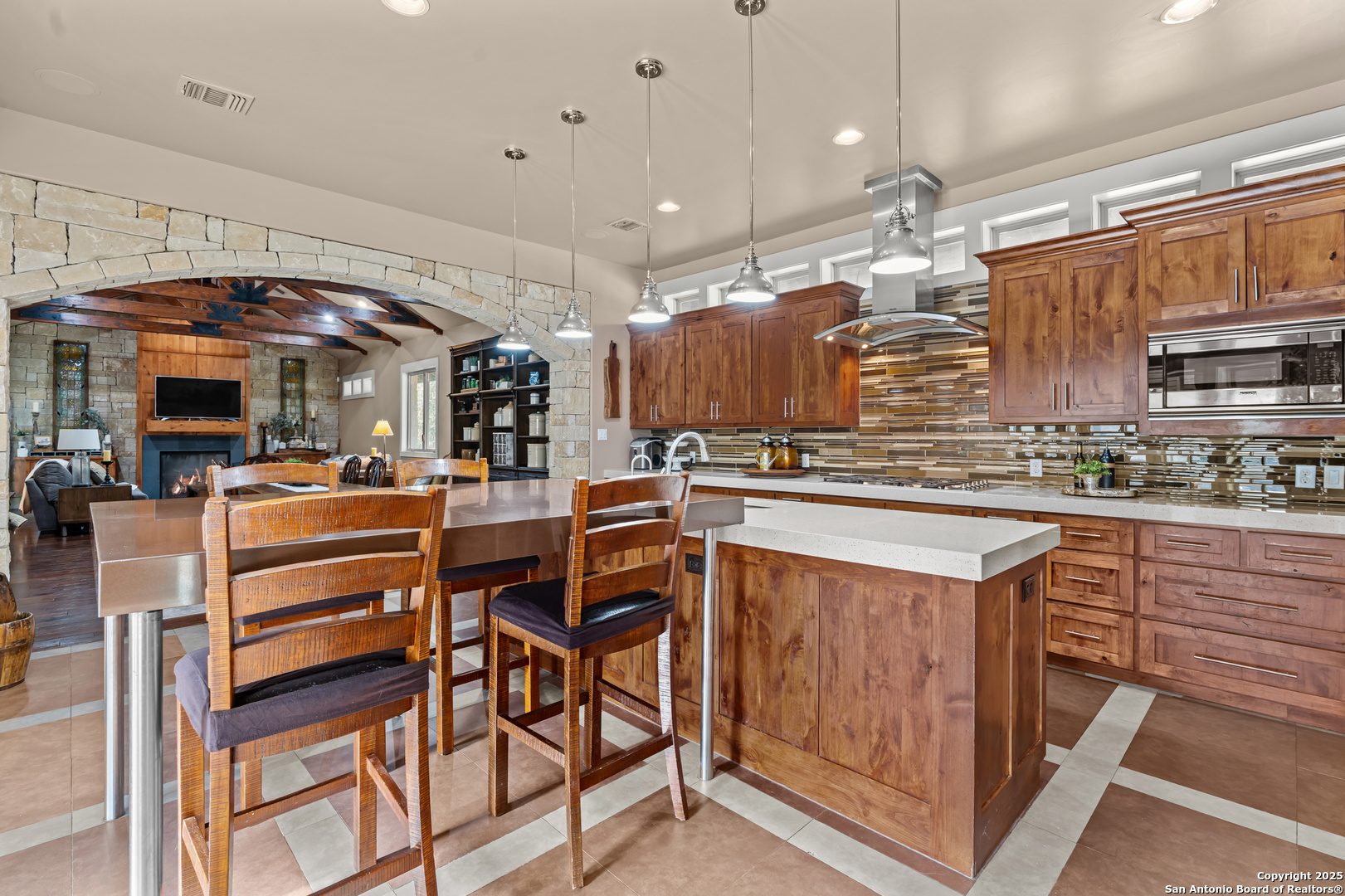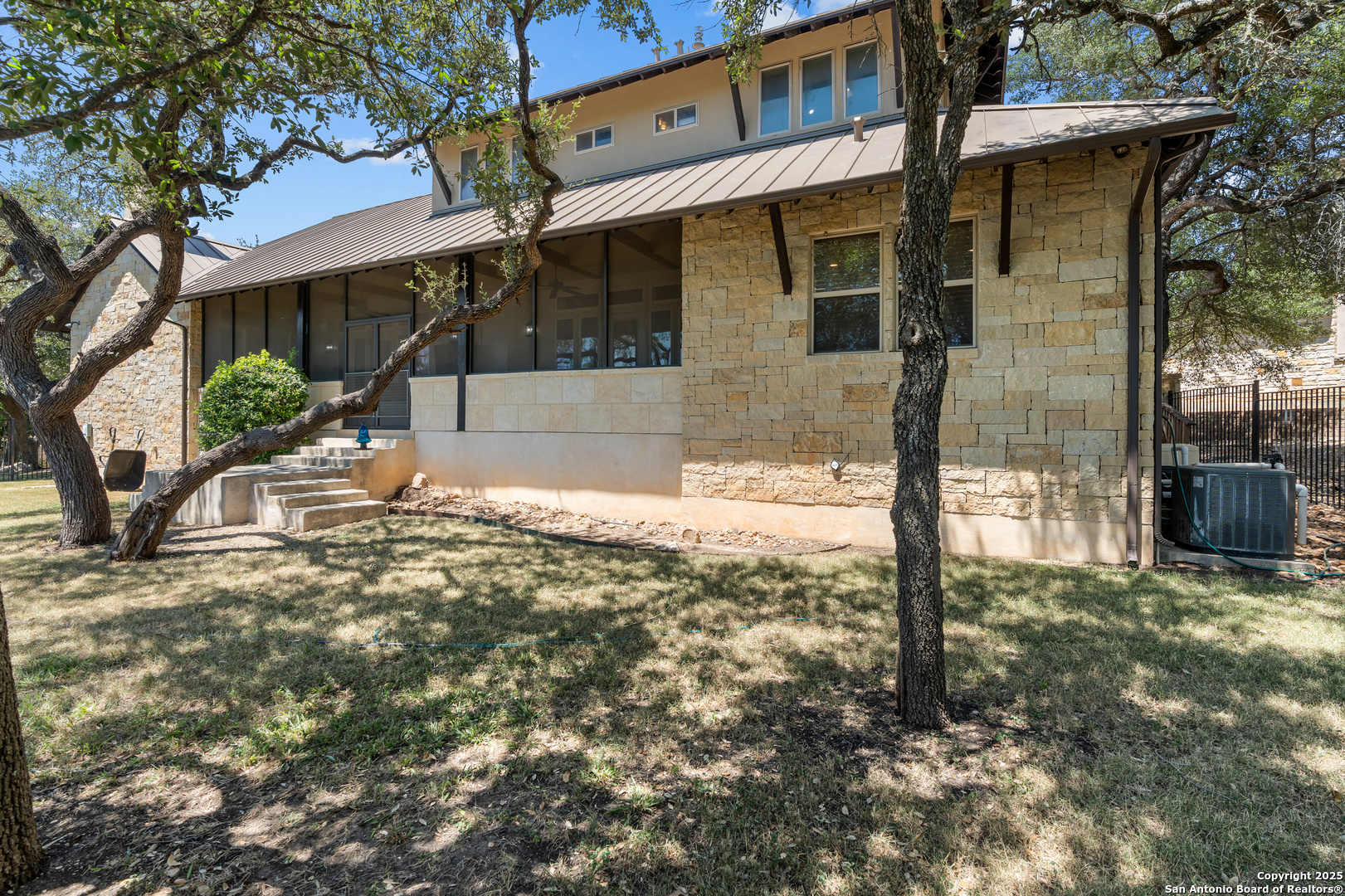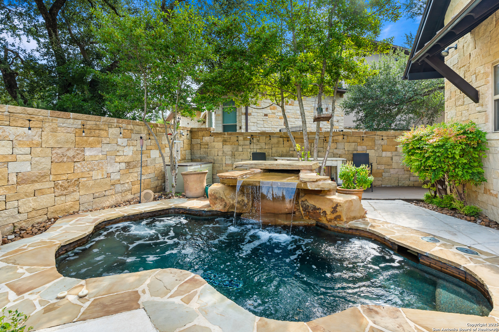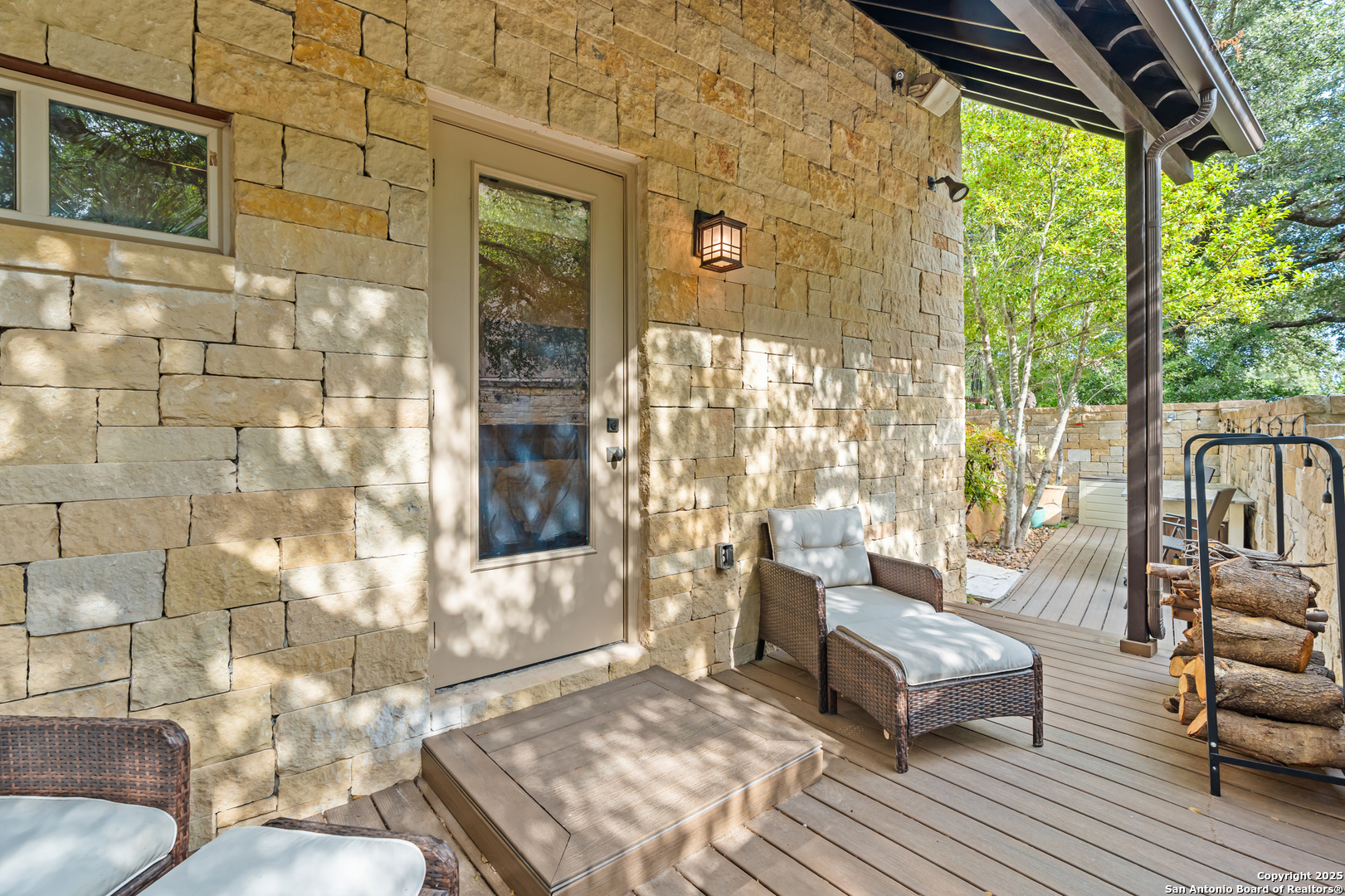 Experience timeless Texas Hill Country architecture enhanced with modern conveniences in this award-winning former model home, an exquisite 4 bedroom, 4.5 bath masterpiece by renowned builder Don Craighead. Designed for those who appreciate elegance, sophistication, and effortless living, this residence offers a lifestyle unlike any other. A long driveway, tree-studded lot, and romantic courtyard create a striking first impression, leading to an outdoor haven complete with a Wolf kitchen, sparkling cocktail pool with tranquil water feature, LED lighting and integrated outdoor surround sound that sets the stage for unforgettable gatherings. Inside, soaring ceilings, expansive living areas, and artisan details flow seamlessly, highlighted by a gourmet Miele kitchen with six-burner gas cooktop, double ovens, three inch stone countertops, custom spice racks, hidden trash compartments, and a walk-in pantry with appliance counter and space for a Sub-Zero refrigerator. Two distinct living spaces, a formal dining area, and a dedicated bar make entertaining effortless. Perfect for multi-generational living, this home offers a separate entrance to an elegant guest suite featuring a full bath, dual walk-in closets, and its own serene outdoor retreat with a Trex deck. Each bedroom throughout the residence is a spacious private retreat, offering the comfort and convenience of its own full bath. The primary suite is a true sanctuary with a spa-like bathroom, custom vanity and makeup storage, generous closet space with custom built-ins and drawers, and offers private access to a large screened-in patio, another inviting space to relax or entertain year-round. highlights throughout the residence include a standing seam metal roof, hardwood floors with a refined Hill Country feel (carpet-free), custom hand-troweled finishes, solid wood doors, custom built-ins, rock wall accents, stately crown molding, 8" baseboards, Control4 home automation, full-home intercom and surround sound, central vac, epoxy garage flooring, abundant storage, and a foam-insulated walk-in attic. Set on a private lot with no neighbors behind, the home offers rare seclusion while still nestled within an intimate gated enclave. Residents also enjoy access to Cibolo Canyons' resort-style amenities including two championship golf courses, fitness center, pools, lazy river, and scenic trails, all just minutes from Highway 281, Loop 1604, shopping, dining, the airport, major employers, and award-winning schools. This is more than a home, it's a refined lifestyle set apart from the rest.
