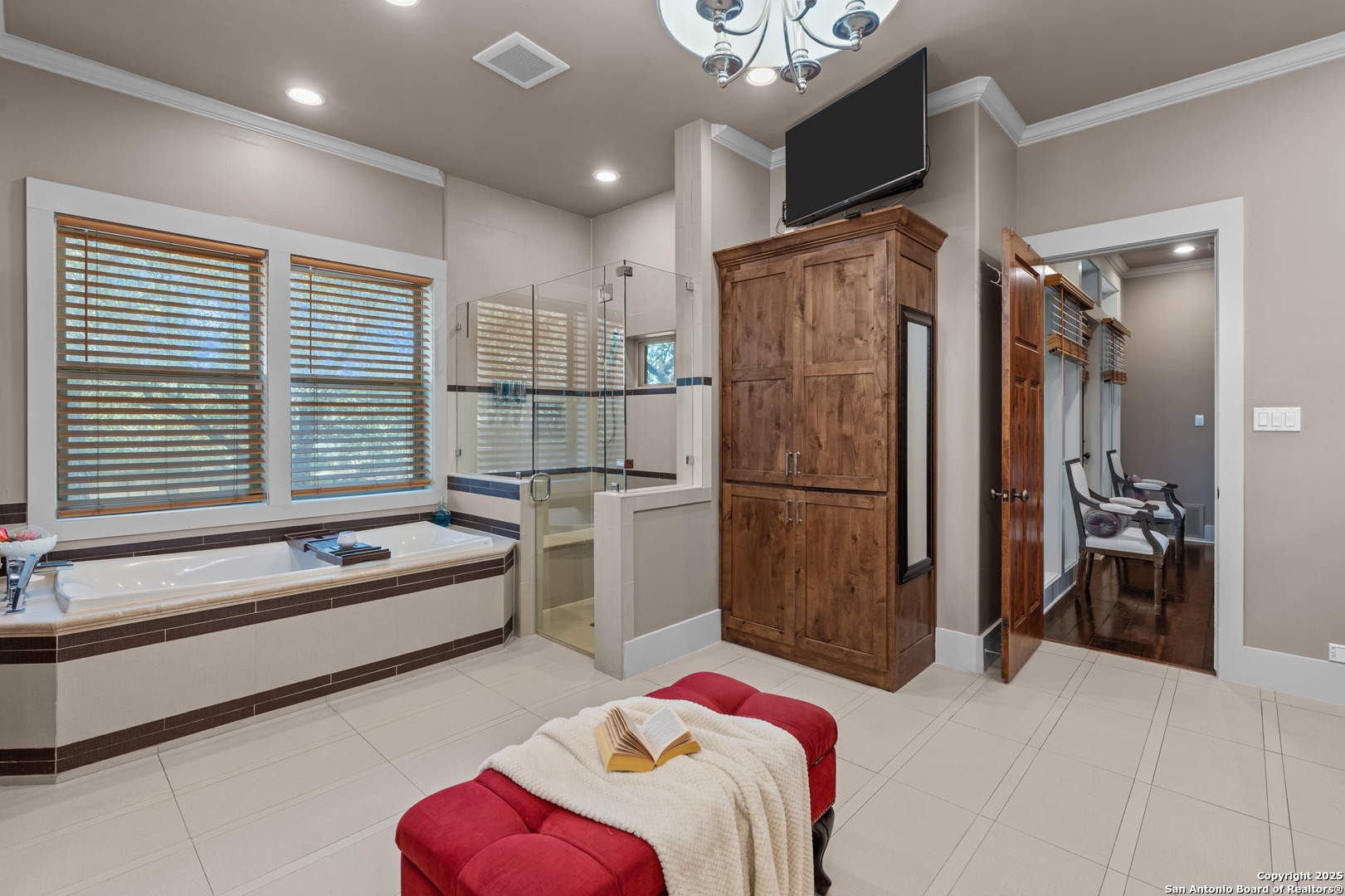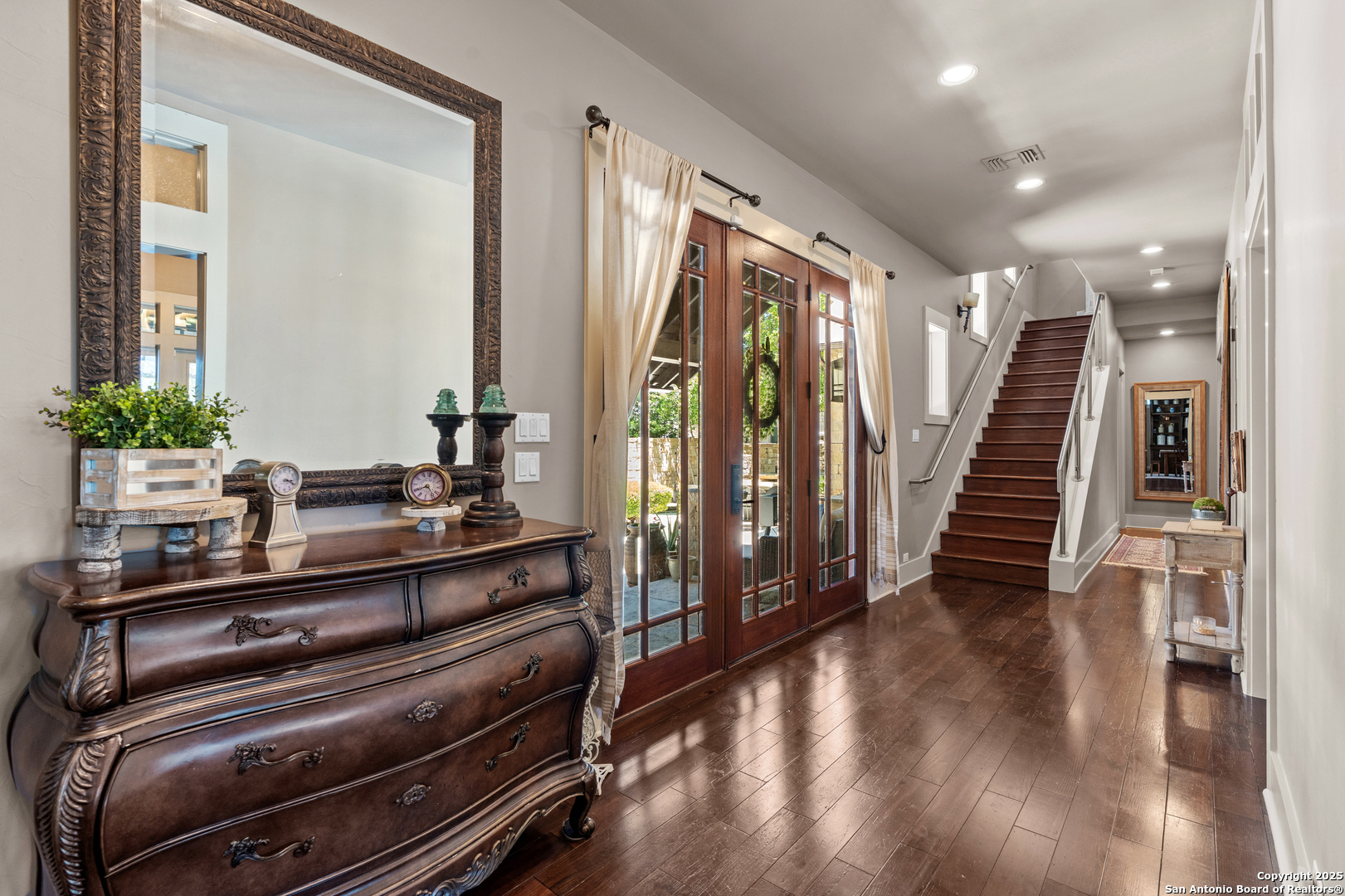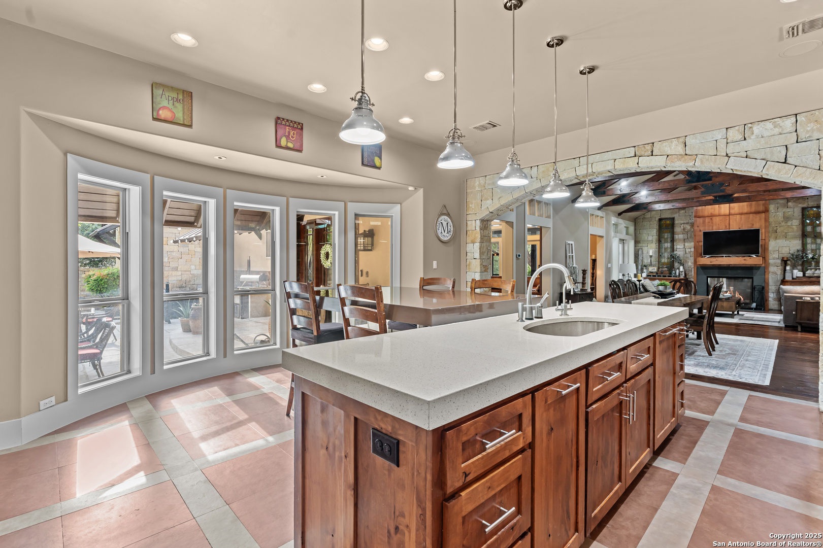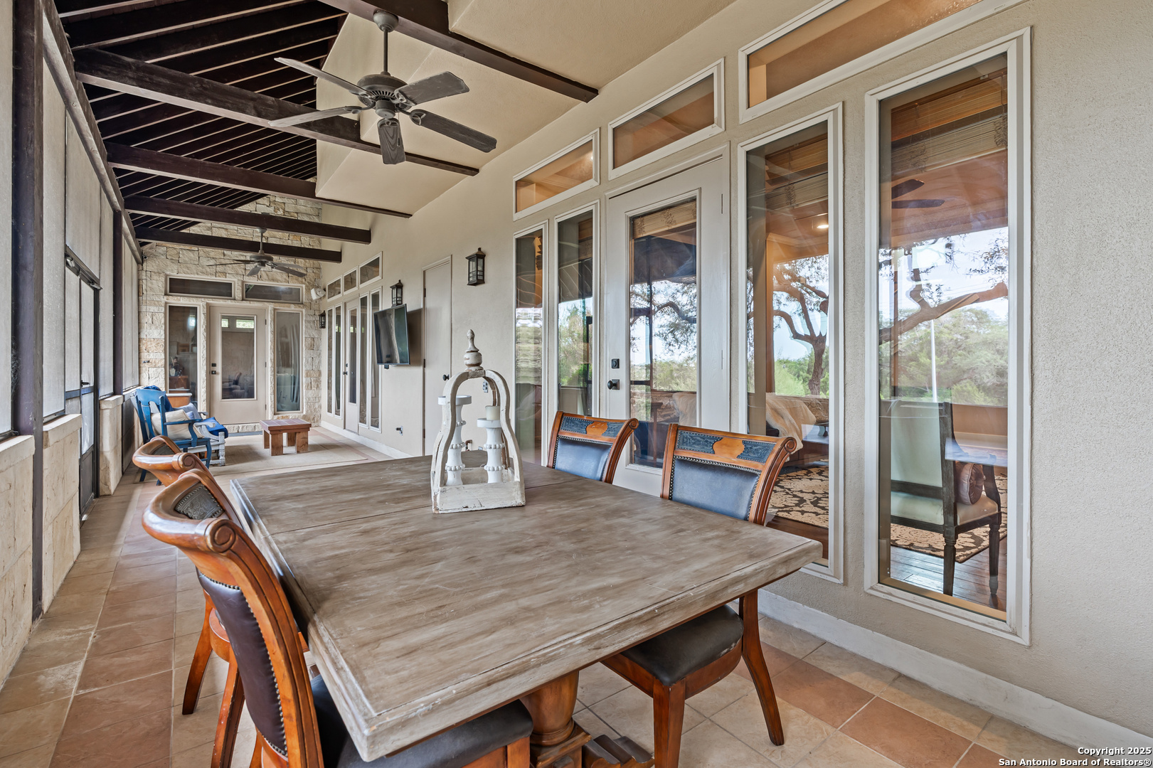 Experience timeless Texas Hill Country architecture enhanced with modern conveniences in this award-winning former model home, an exquisite 4 bedroom, 4.5 bath masterpiece by renowned builder Don Craighead. Designed for those who appreciate elegance, sophistication, and effortless living, this residence offers a lifestyle unlike any other. A long driveway, tree-studded lot, and romantic courtyard create a striking first impression, leading to an outdoor haven complete with a Wolf kitchen, sparkling cocktail pool with tranquil water feature, LED lighting and integrated outdoor surround sound that sets the stage for unforgettable gatherings. Inside, soaring ceilings, expansive living areas, and artisan details flow seamlessly, highlighted by a gourmet Miele kitchen with six-burner gas cooktop, double ovens, three inch stone countertops, custom spice racks, hidden trash compartments, and a walk-in pantry with appliance counter and space for a Sub-Zero refrigerator. Two distinct living spaces, a formal dining area, and a dedicated bar make entertaining effortless. Perfect for multi-generational living, this home offers a separate entrance to an elegant guest suite featuring a full bath, dual walk-in closets, and its own serene outdoor retreat with a Trex deck. Each bedroom throughout the residence is a spacious private retreat, offering the comfort and convenience of its own full bath. The primary suite is a true sanctuary with a spa-like bathroom, custom vanity and makeup storage, generous closet space with custom built-ins and drawers, and offers private access to a large screened-in patio, another inviting space to relax or entertain year-round. highlights throughout the residence include a standing seam metal roof, hardwood floors with a refined Hill Country feel (carpet-free), custom hand-troweled finishes, solid wood doors, custom built-ins, rock wall accents, stately crown molding, 8" baseboards, Control4 home automation, full-home intercom and surround sound, central vac, epoxy garage flooring, abundant storage, and a foam-insulated walk-in attic. Set on a private lot with no neighbors behind, the home offers rare seclusion while still nestled within an intimate gated enclave. Residents also enjoy access to Cibolo Canyons' resort-style amenities including two championship golf courses, fitness center, pools, lazy river, and scenic trails, all just minutes from Highway 281, Loop 1604, shopping, dining, the airport, major employers, and award-winning schools. This is more than a home, it's a refined lifestyle set apart from the rest.