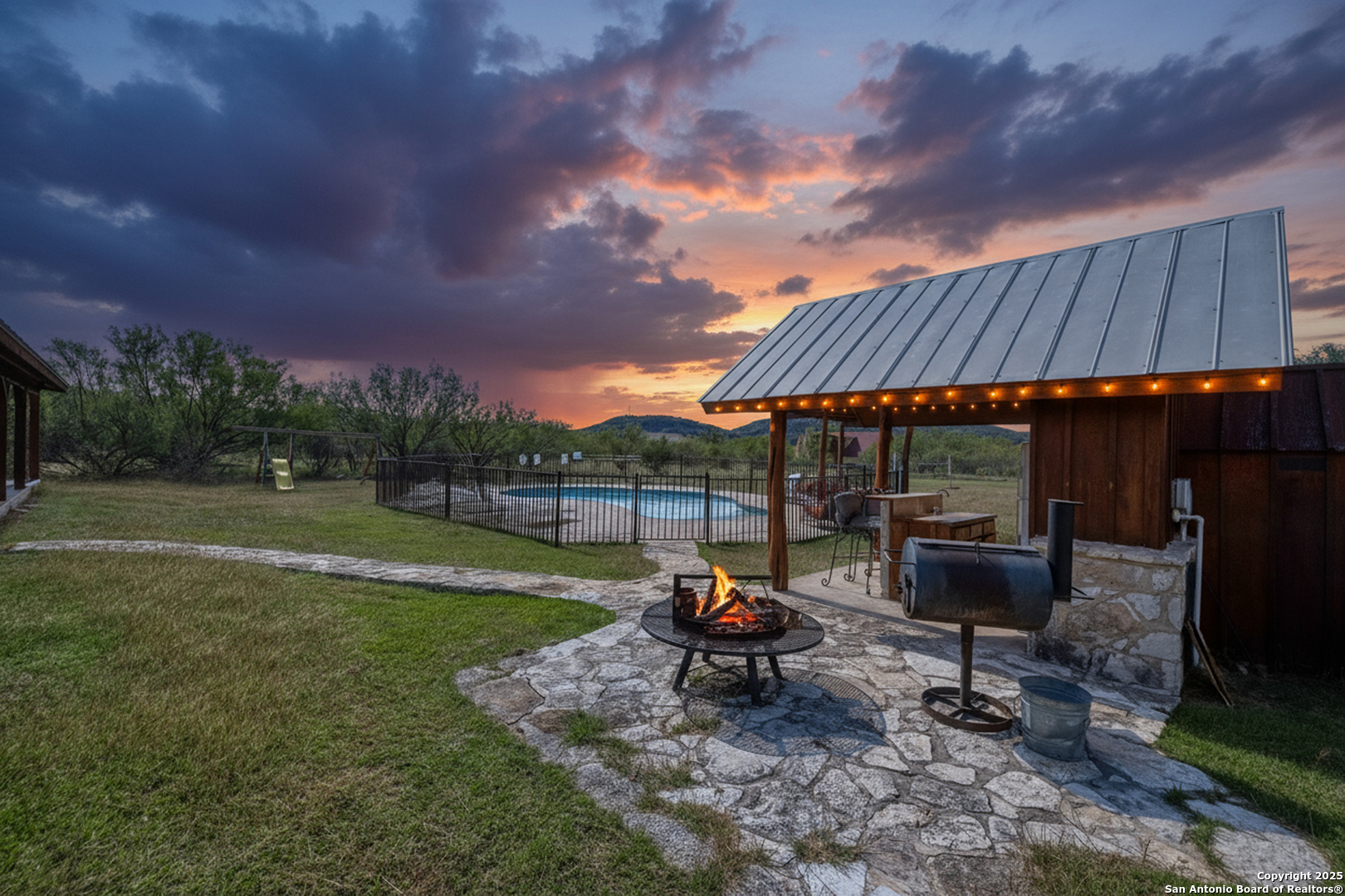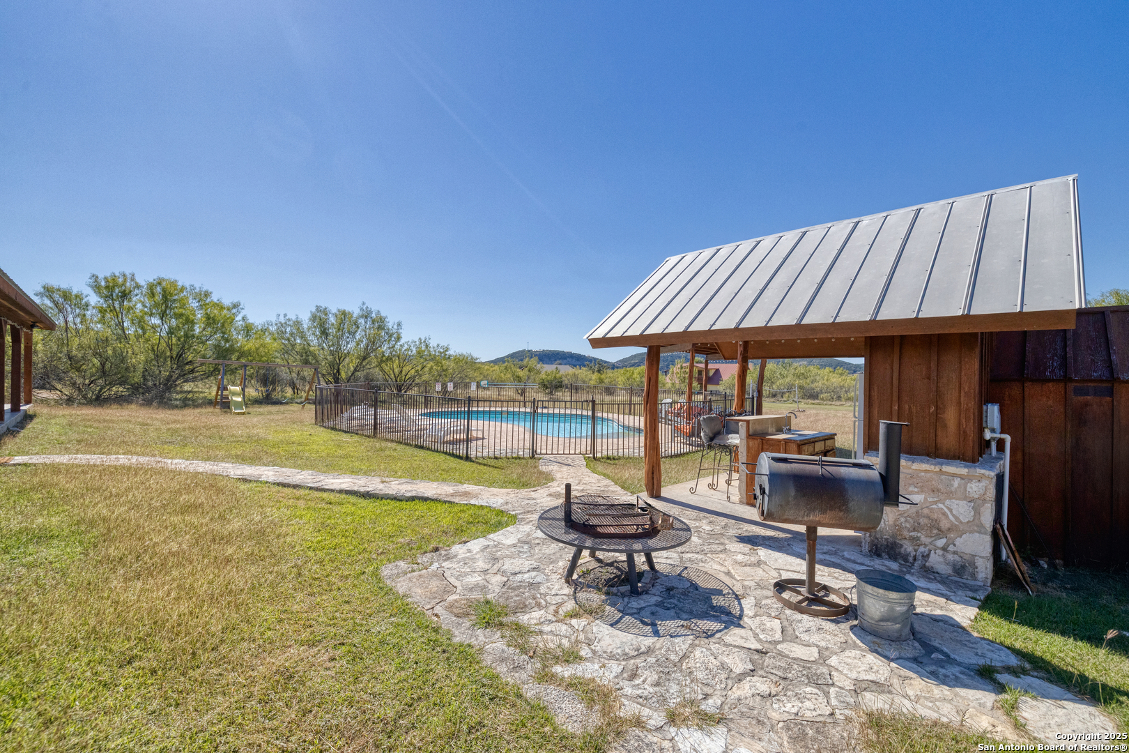 4BD/3.5BA + Loft in Concan!!! Welcome to the Cowboy Cantina, a lovely Hill Country style home within walking distance of the Frio River, House Pasture Cattle Company, and the Frio Valley Golf Course. The home is outfitted to accommodate 18 people comfortably and features an open concept kitchen, dining, and living area that is perfect for entertaining. The outdoor area consists of a large, covered porch, in-ground pool with tanning shelf, a patio with built-in fire pit, and a cabana with a fridge, freezer, and sink. There is also a volleyball area and horseshoe pit for those who like to do more than lounge! This area is one of the best and most productive in the Frio Canyon for nightly rentals since the golf course and House Pasture music venue provide opportunities for year around entertainment and activity.