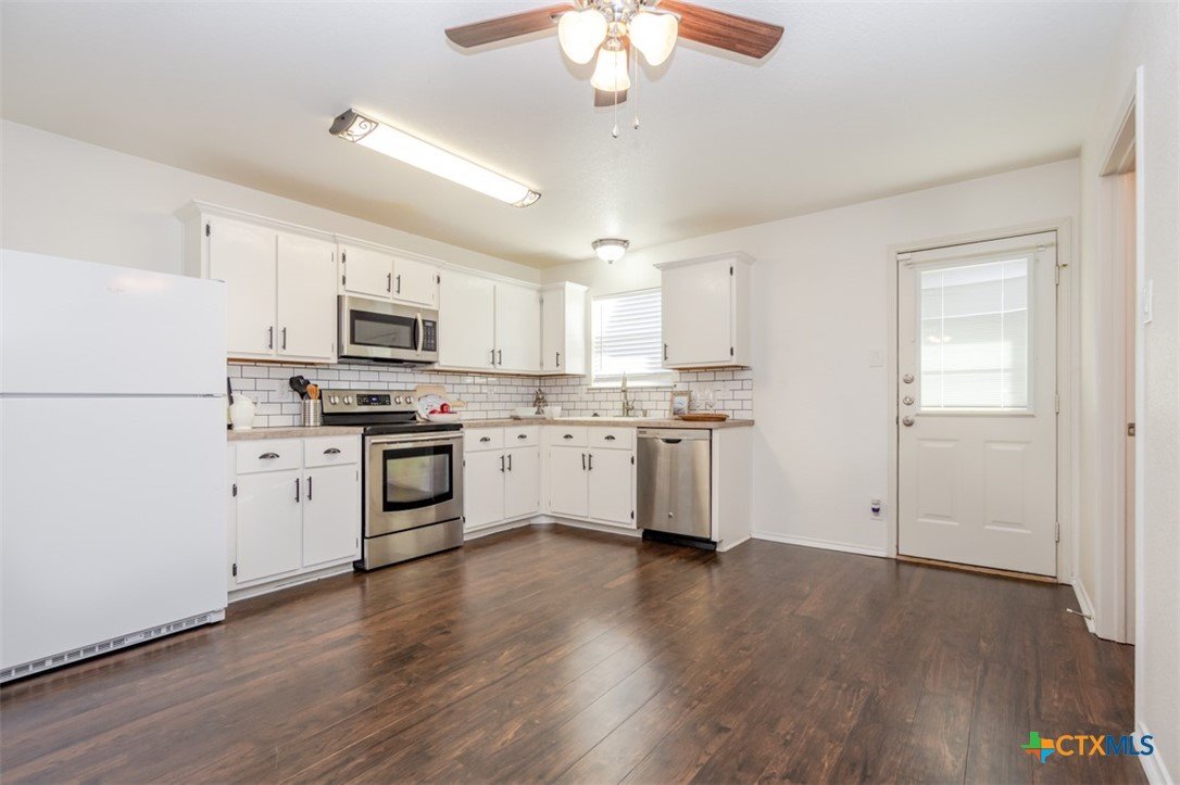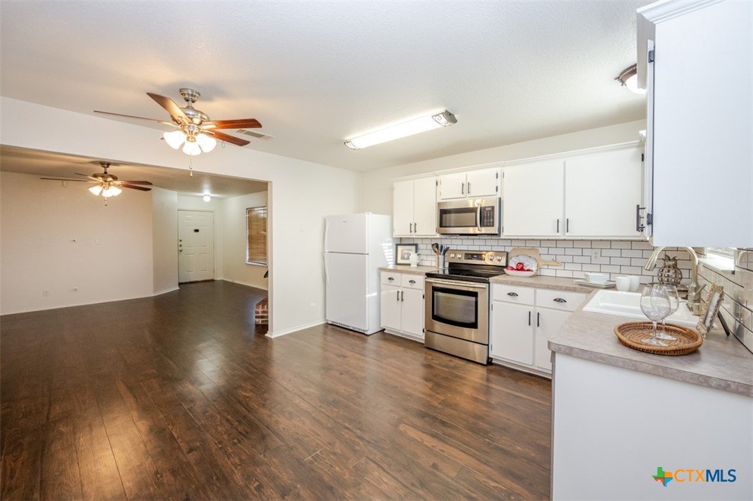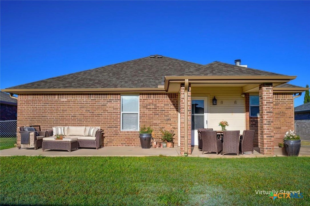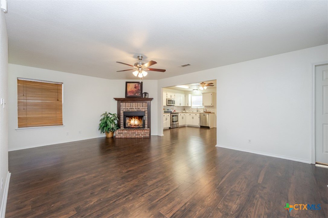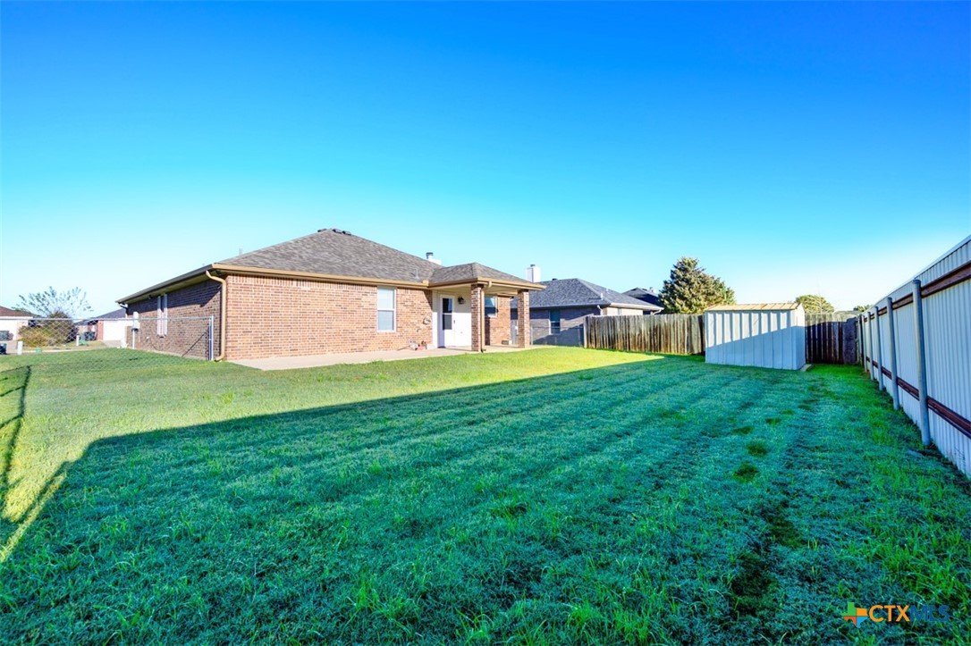 Every corner of this home tells a story of comfort, connection, and everyday joy. From morning coffee shared around the kitchen table to laughter echoing through the family room, it’s a space designed for real life. The open floor plan keeps everyone close — the corner fireplace sets the tone in the family room while the wood laminate floors lead seamlessly into a bright, cheerful kitchen. With its white cabinets, modern backsplash, and stainless steel appliances, it’s as inviting as it is functional, perfect for everything from weeknight dinners to weekend gatherings. Each bedroom offers room to unwind, while outside, the spacious backyard becomes an extension of the home. There’s a covered patio for lazy afternoons, an open extension for barbecues under the stars, and a storage building that helps keep everything organized and ready for the next project or adventure. Set in a convenient location close to schools, shopping, and Fort Hood, this home blends comfort with practicality, it’s the kind of place where long days end in peace and every new beginning feels right at home.