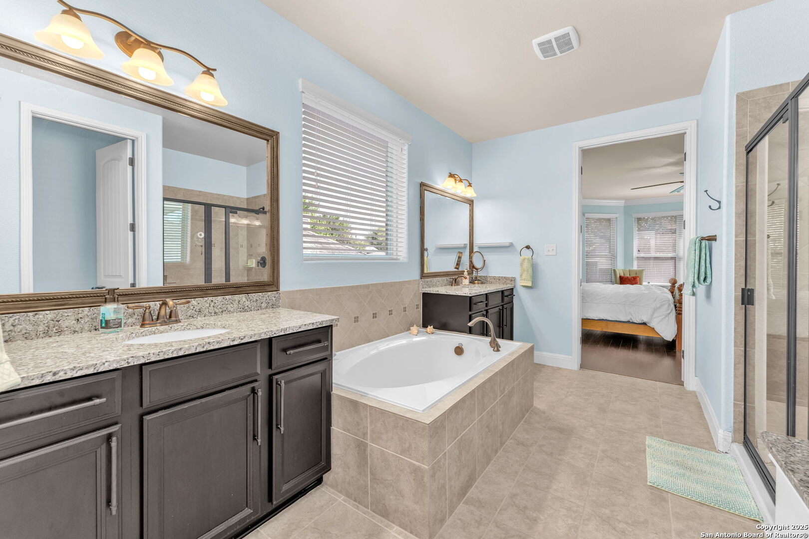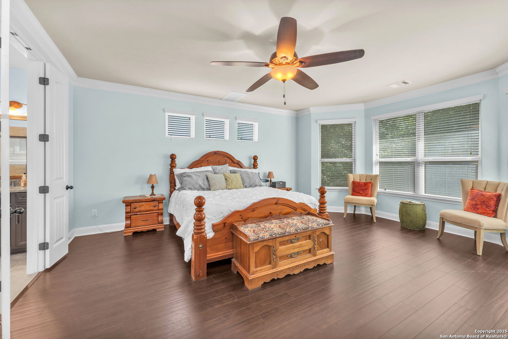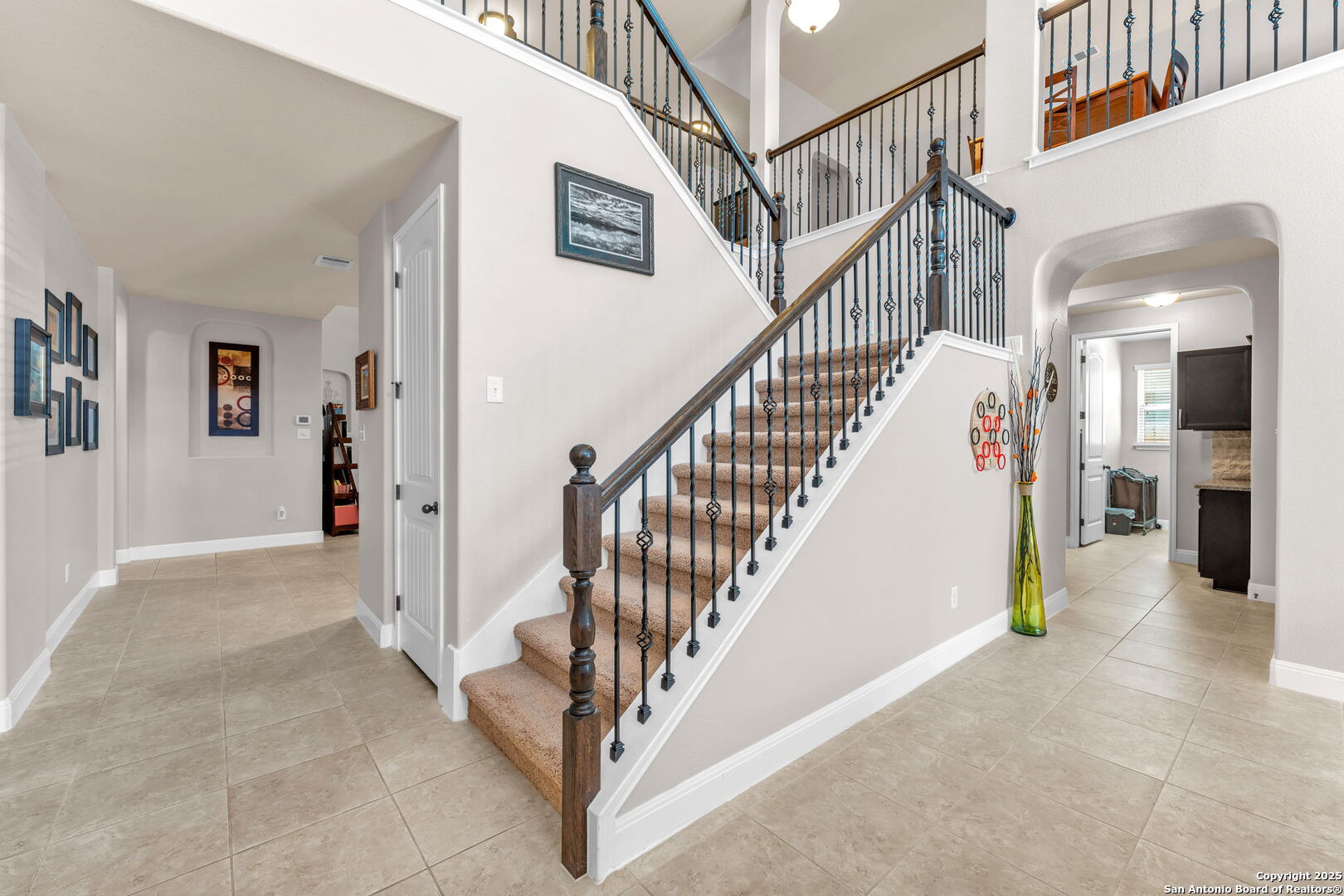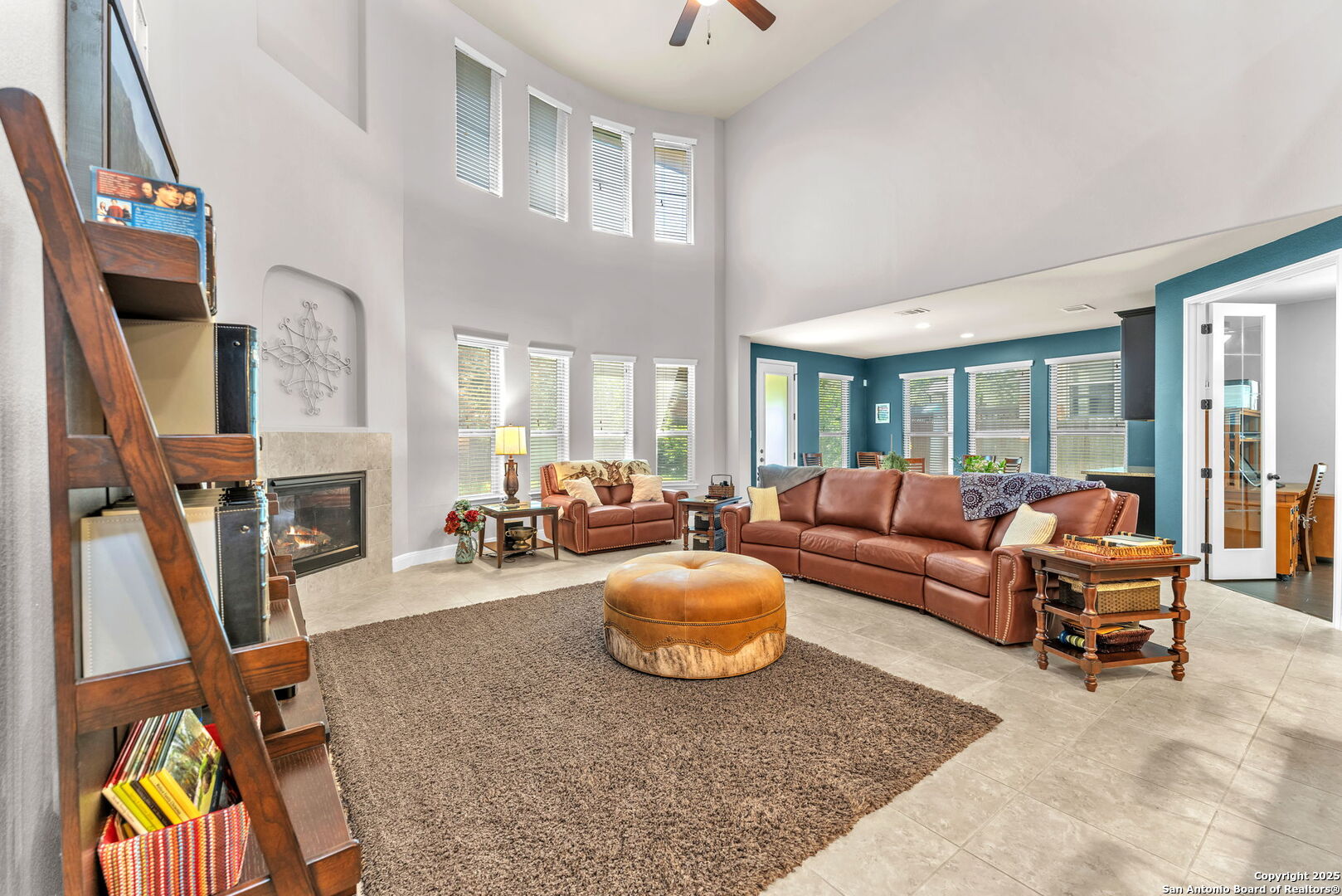 Spacious, Energy-Efficient Home in Comal ISD with Exceptional Features & Amenities! Welcome to this stunning 5-bedroom, 3.5-bathroom residence offering nearly 5000 sq ft of thoughtfully designed living space in one of the most desirable neighborhoods in Comal ISD. This energy-efficient home is packed with high-end features and offers the perfect balance of comfort, style, and functionality. Step inside to discover an expansive open-concept layout featuring a chef's kitchen with a large island, butler's pantry, extended coffee (or drink) bar, and an oversized walk-in pantry-ideal for both daily living and entertaining. The separate dedicated office with elegant glass doors and a main-level library/sitting room provide flexible spaces for work or relaxation. Upstairs, enjoy movie nights in the media room with a walkout balcony, or unwind in the game room (loft), fully equipped with basketball hoops, table hockey, and a pool table-all of which can remain with the home at the buyer's request. This energy-conscious home features solar panels, spray foam insulation, solar screens on rear-facing windows, and a large tankless hot water heater, providing long-term savings and year-round comfort...and a LOW energy bill! Outdoor living is made easy with a low-maintenance yard, and community amenities including a pool, splash pad, covered BBQ pavilion, and scenic walking trails. The home is conveniently located near top-rated public schools, popular restaurants, shopping centers, and offers quick access to Hwy 281 for easy commutes to local military bases and downtown San Antonio. This home has it all-space, efficiency, luxury, and location. Don't miss your chance to own this one-of-a-kind property. Schedule your private showing today!