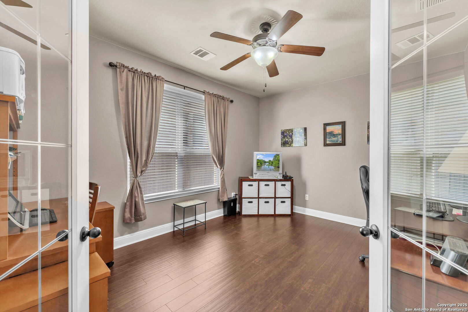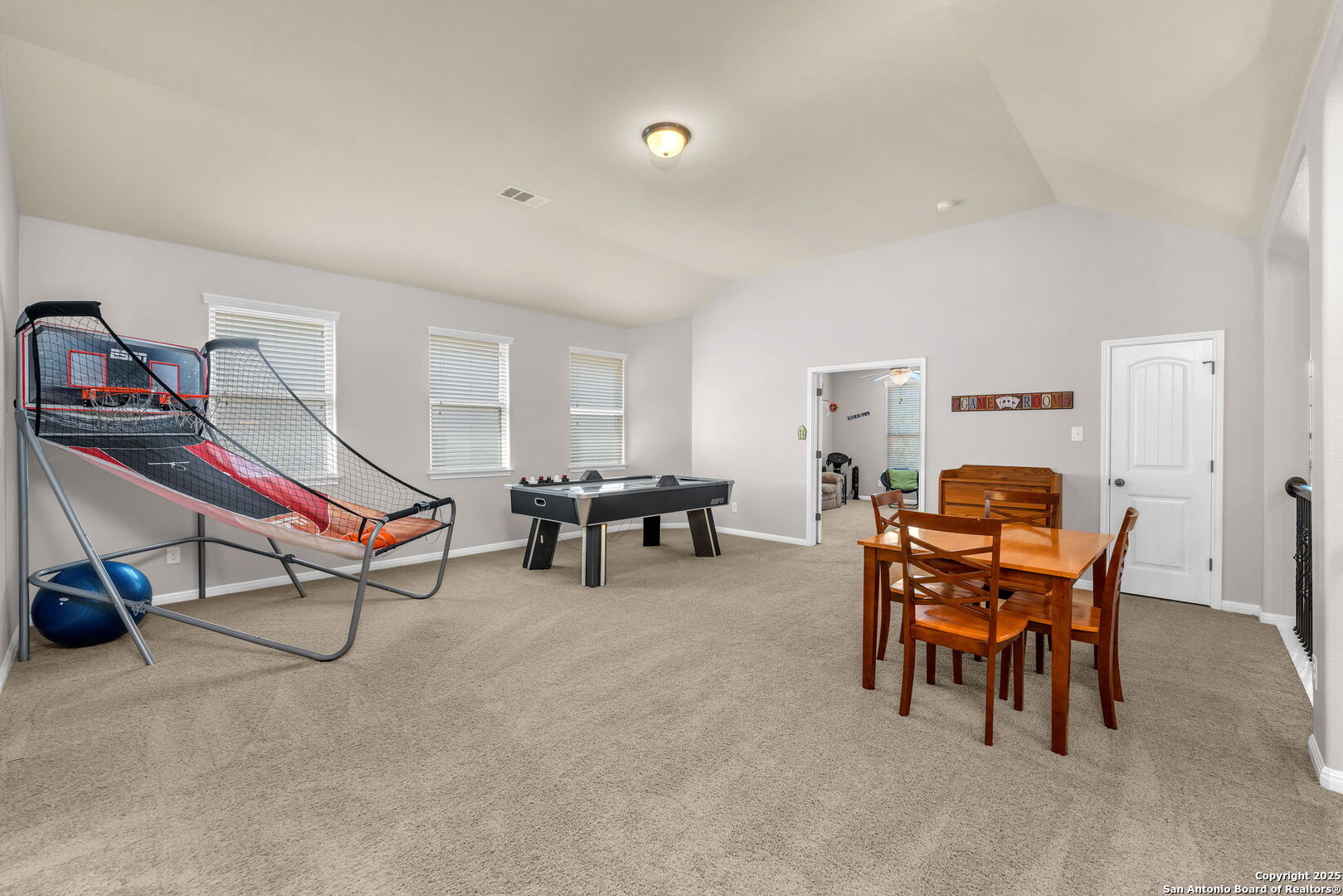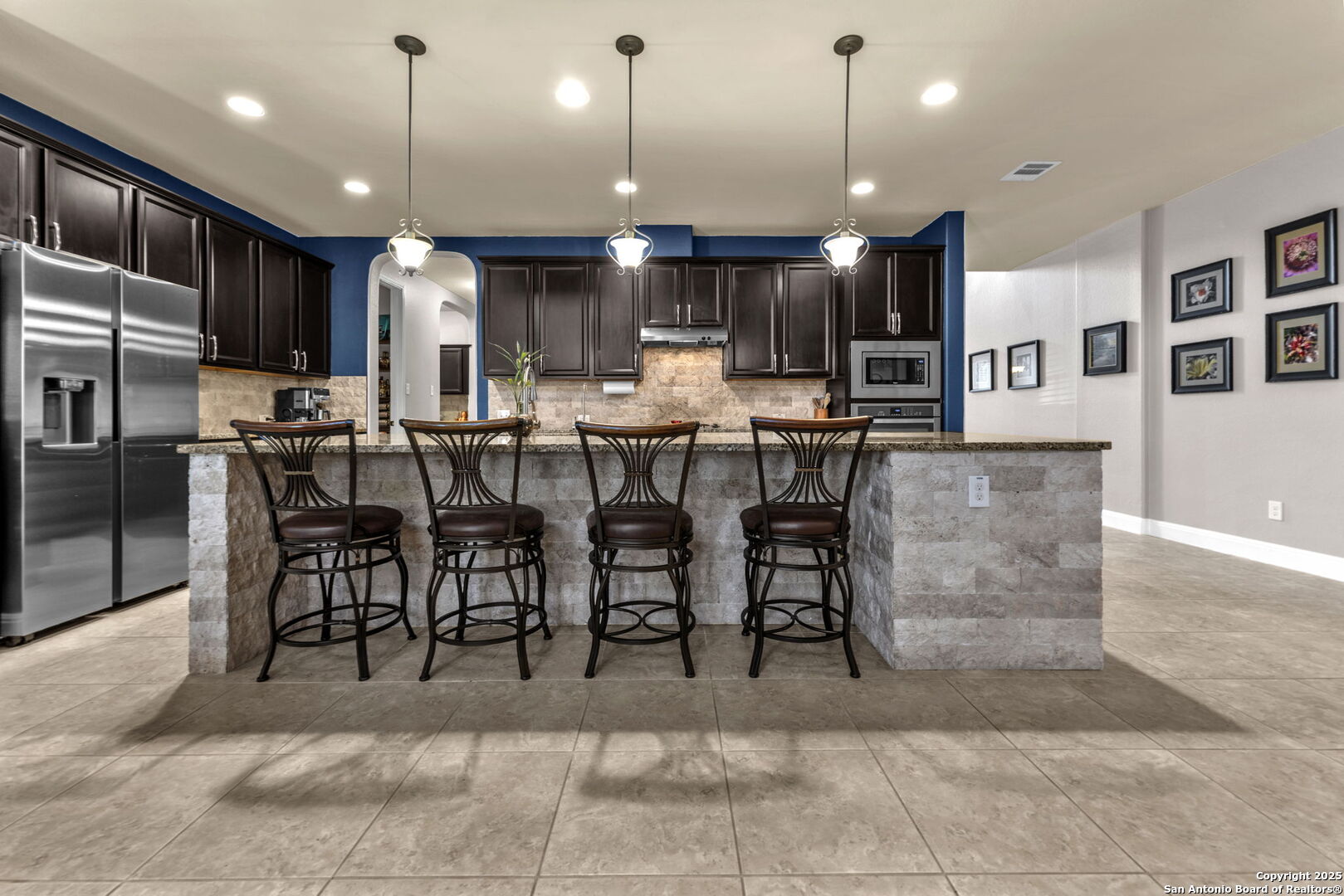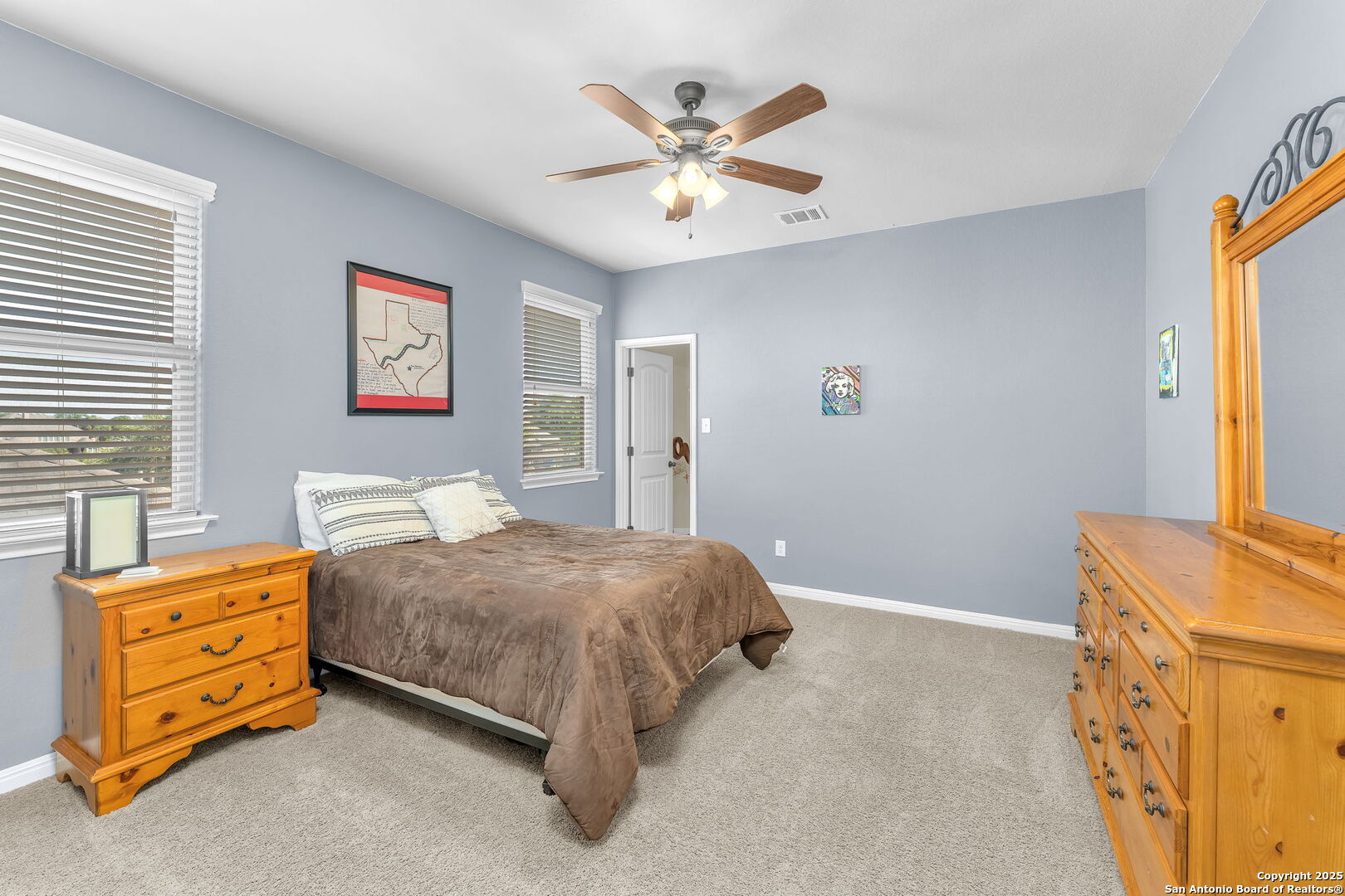 Spacious, Energy-Efficient Home in Comal ISD with Exceptional Features & Amenities! Welcome to this stunning 5-bedroom, 3.5-bathroom residence offering nearly 5000 sq ft of thoughtfully designed living space in one of the most desirable neighborhoods in Comal ISD. This energy-efficient home is packed with high-end features and offers the perfect balance of comfort, style, and functionality. Step inside to discover an expansive open-concept layout featuring a chef's kitchen with a large island, butler's pantry, extended coffee (or drink) bar, and an oversized walk-in pantry-ideal for both daily living and entertaining. The separate dedicated office with elegant glass doors and a main-level library/sitting room provide flexible spaces for work or relaxation. Upstairs, enjoy movie nights in the media room with a walkout balcony, or unwind in the game room (loft), fully equipped with basketball hoops, table hockey, and a pool table-all of which can remain with the home at the buyer's request. This energy-conscious home features solar panels, spray foam insulation, solar screens on rear-facing windows, and a large tankless hot water heater, providing long-term savings and year-round comfort...and a LOW energy bill! Outdoor living is made easy with a low-maintenance yard, and community amenities including a pool, splash pad, covered BBQ pavilion, and scenic walking trails. The home is conveniently located near top-rated public schools, popular restaurants, shopping centers, and offers quick access to Hwy 281 for easy commutes to local military bases and downtown San Antonio. This home has it all-space, efficiency, luxury, and location. Don't miss your chance to own this one-of-a-kind property. Schedule your private showing today!