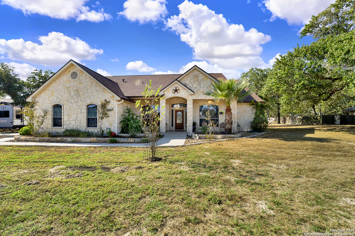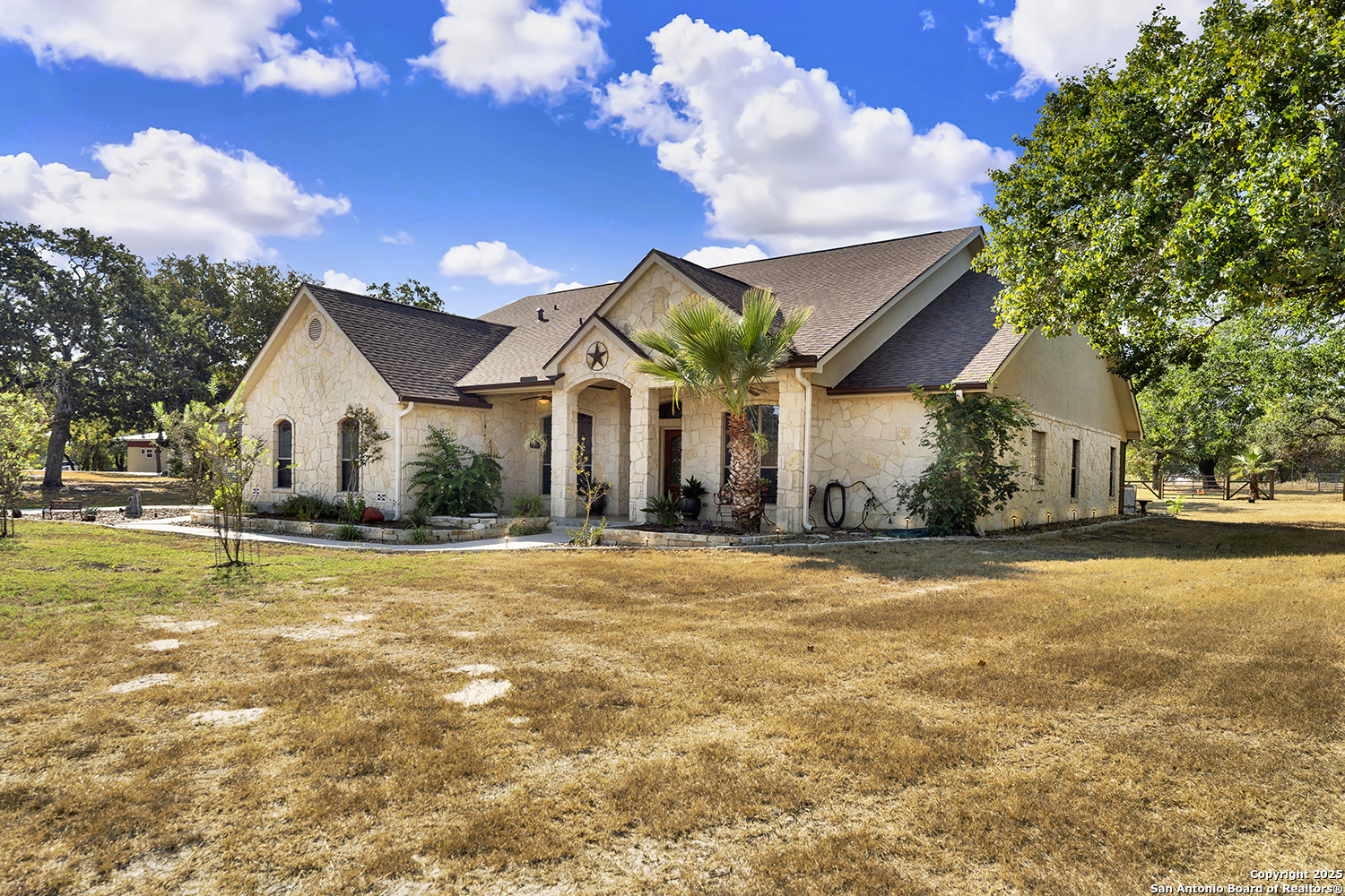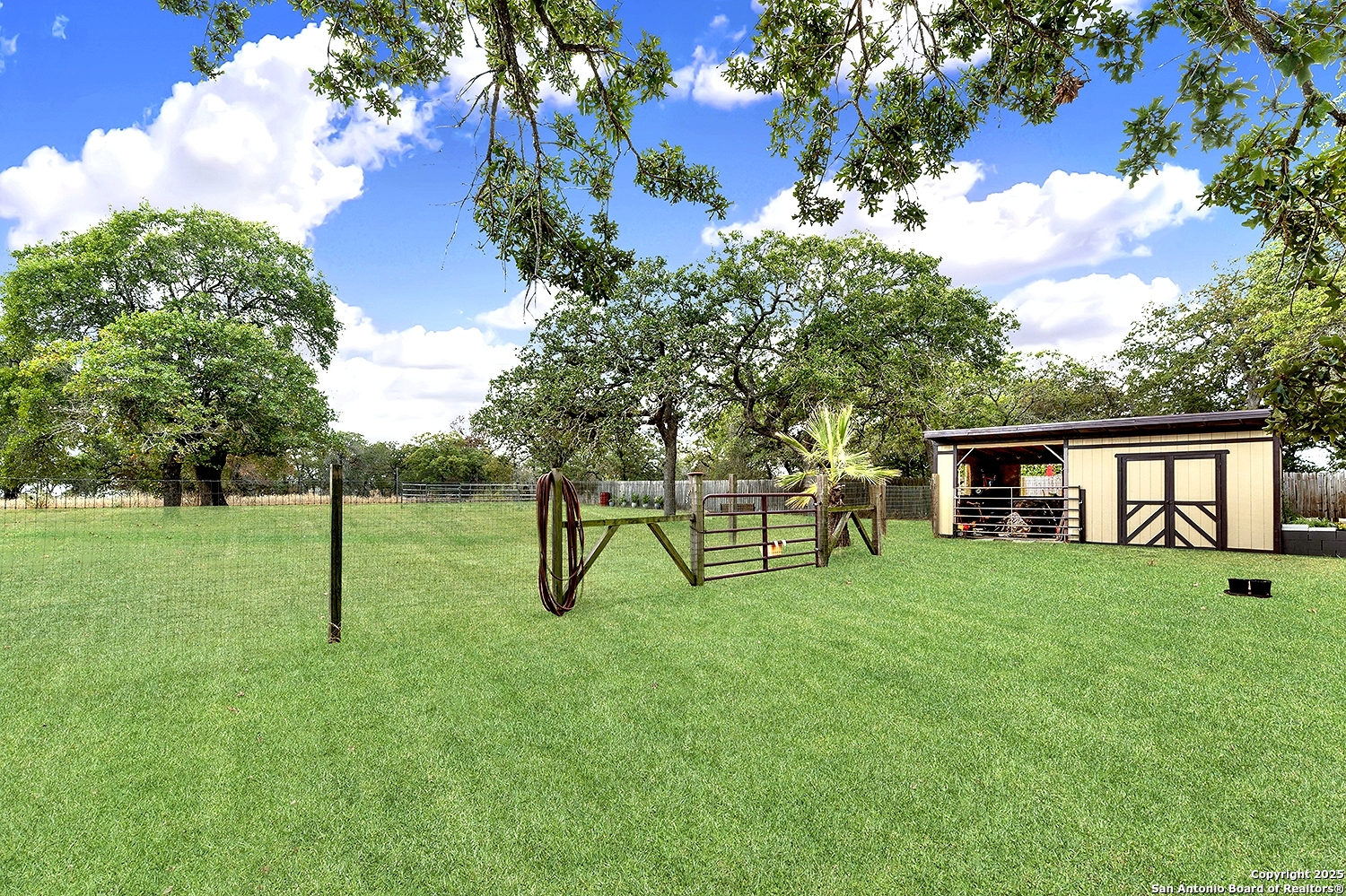 Bring on the back porch sitting in this home! This lovely property features a nicely sized screened in back porch overlooking a large lot with mature oaks and no back neighbors blocking your view! Inside this spacious home you will find two large eating areas, a wood burning fireplace in the living room and a master suite featuring a large closet, walk in shower and jetted soaking tub to relax in! Good size secondary bedrooms split across the house from the Master bedroom. A dedicated office area just off the entry and living. Sink, cabinets & work bench in the garage are sure to come in handy; along with a 24x12 (with 12x12 enclosed space) barn/shop for all the extra things and cross fenced to keep any animals you may have or want to purchase. Extra Street Light at the road so it's not so dark out in the country. This is a great property to view, come make it yours!