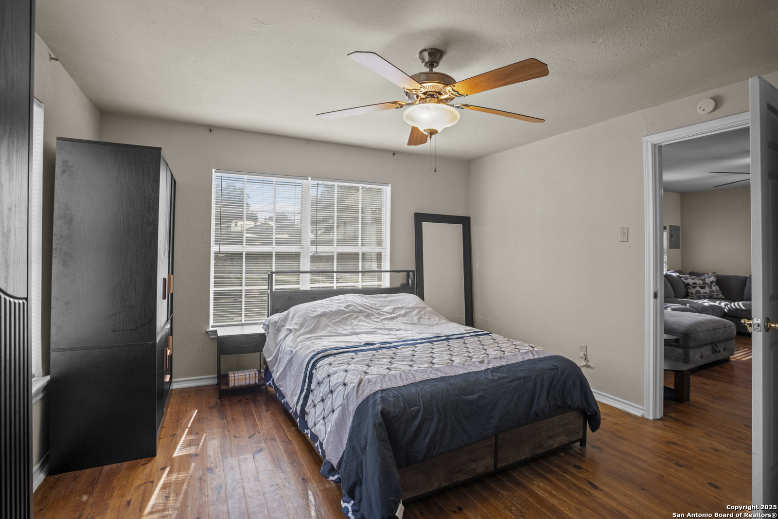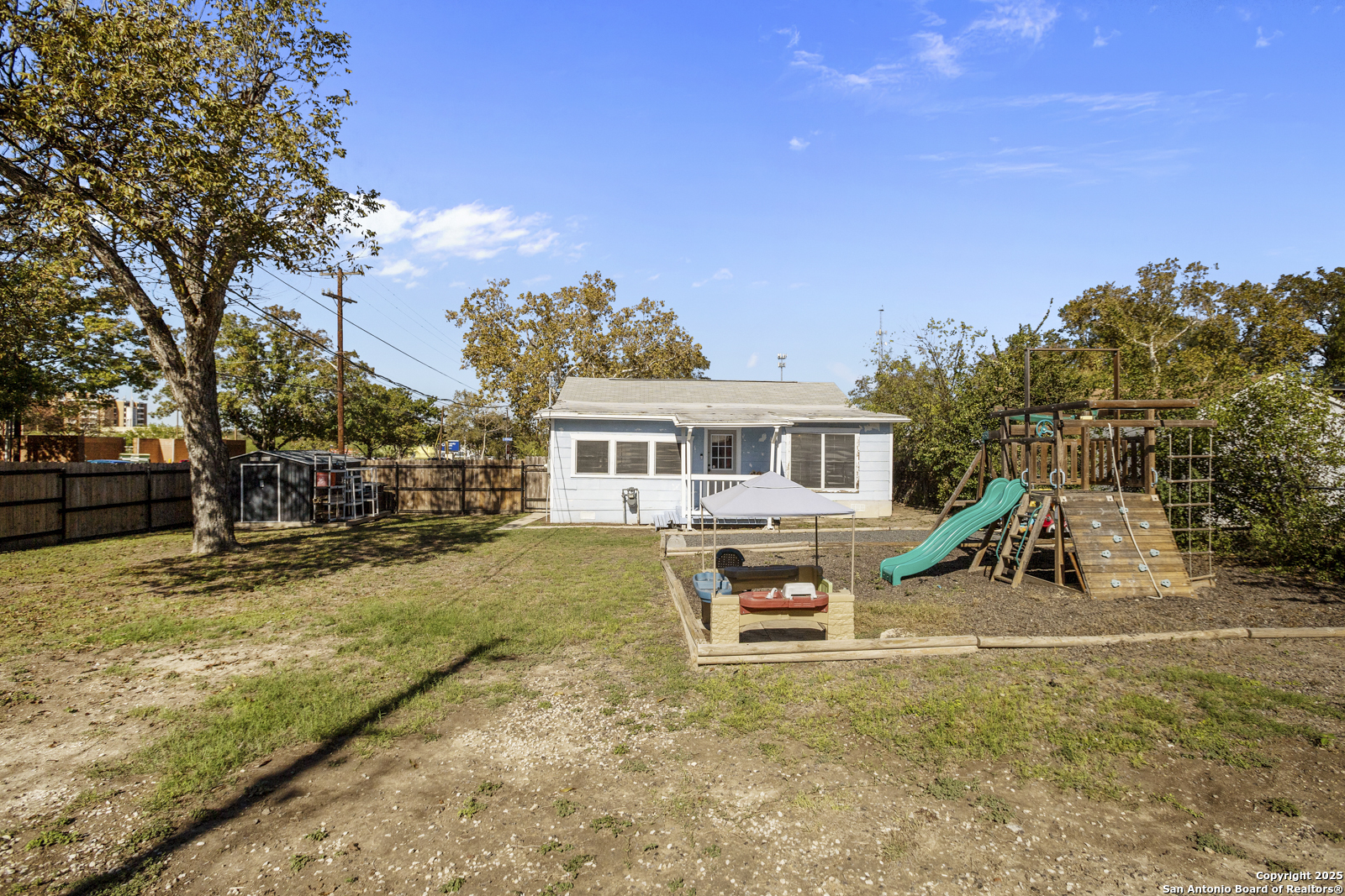 Welcome to this inviting 3-bedroom, 1-bath home in the heart of south San Antonio. The open floor plan creates a bright and airy living space that flows seamlessly into the kitchen, which features a convenient breakfast bar and plenty of cabinet space for all your cooking and storage needs. The large master bedroom offers ample space, and the bathroom includes a single vanity with a shower and tub combo. Outside, enjoy the spacious backyard with a shed, covered back porch, and patio, perfect for relaxing or entertaining. Located just minutes from South Side Lions Park, grocery stores, and a nearby shopping center, this home combines comfort, convenience, and charm in one wonderful package.