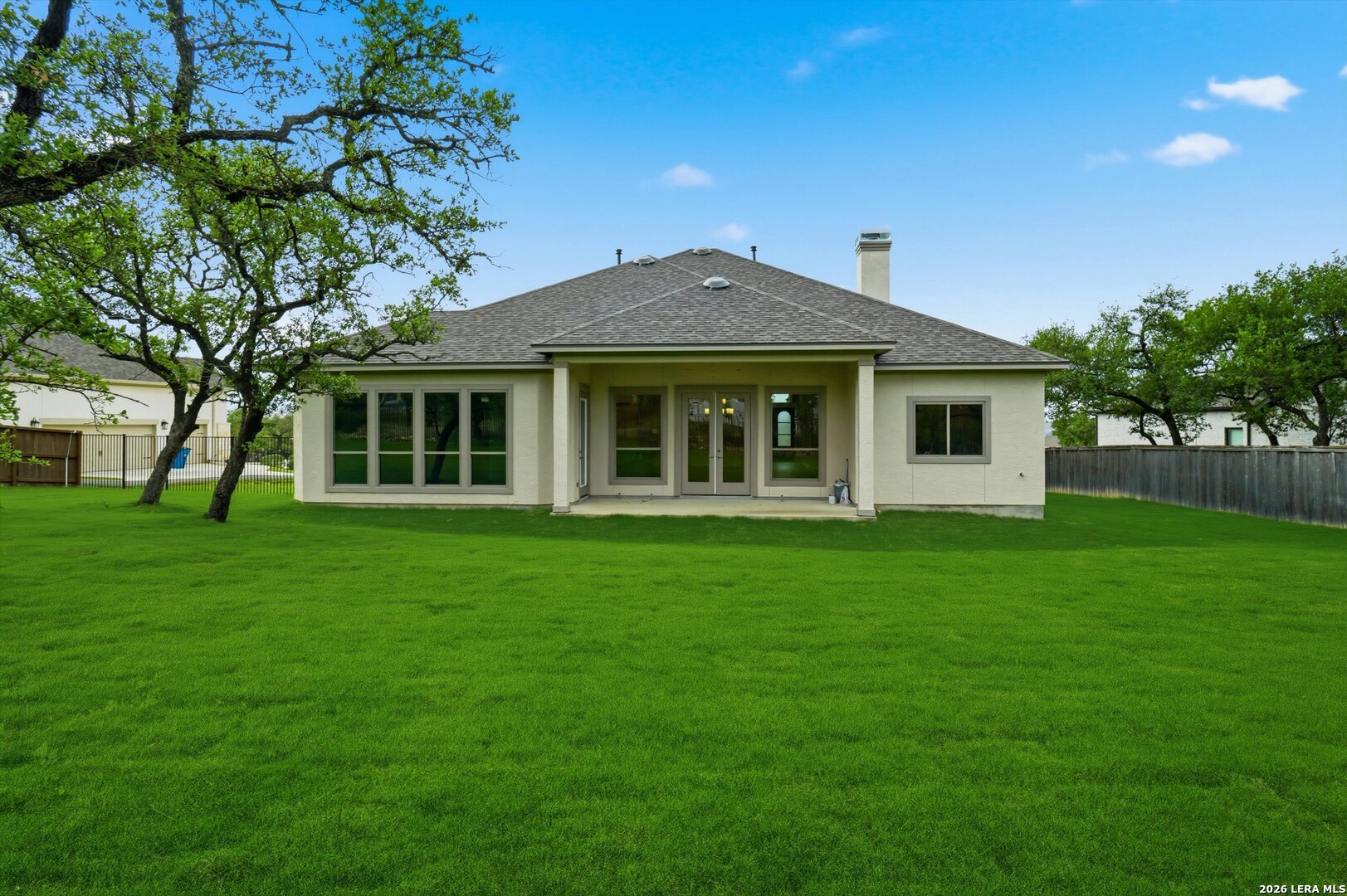 PHENOMONAL YARD SPACE!! New Custom 1 -story home with 4 beds, 3.5 baths, study, 1st-floor gameroom, rear covered patio, and 3 car garage! Spa-style master bath with freestanding tub, stainless appliances, custom cabinetry, and high-end decorator finishes throughout. Open concept for entertaining, high ceilings and tons of natural light. Sits elevated above the street, on almost HALF an acre, on a cul-de-sac street, in a gated section of the community with privacy fencing and full landscaping in place. Backs to a greenbelt.