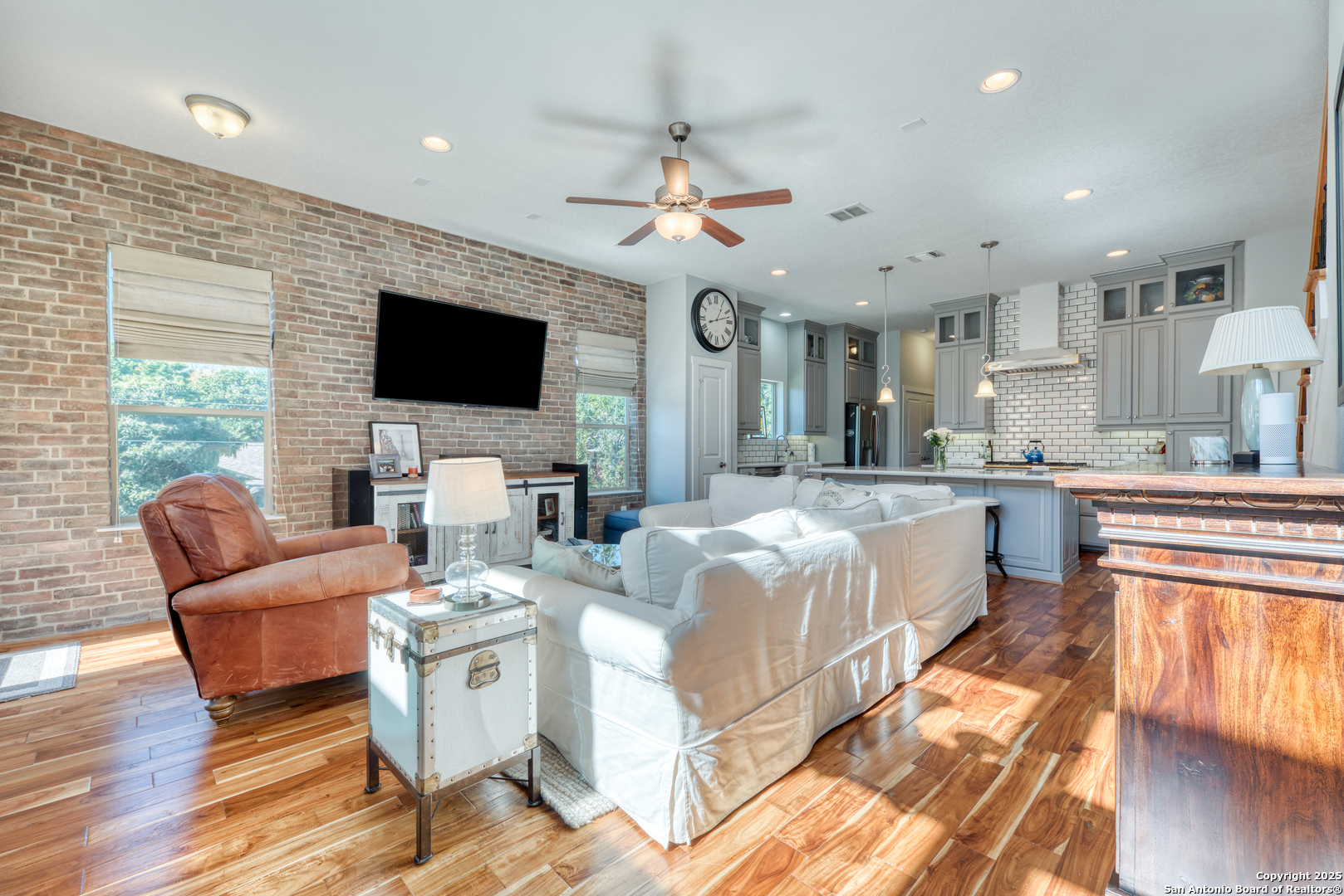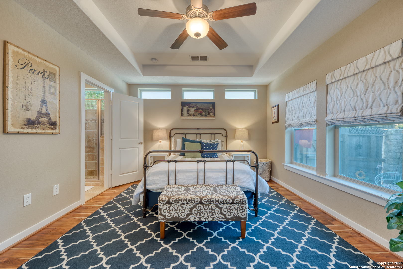 Experience refined living in this stunning contemporary home nestled within an exclusive gated community. Featuring 3 bedrooms, 3 full baths Tree-like home with private elevator near Alamo Heights. This residence blends elegance and functionality with an open-concept design, rich hardwood floors, and abundant natural light. A private guest suite on the first floor offers an en-suite bath, walk-in closet, and patio access-ideal for guests or multi-generational living. The main level showcases a gourmet kitchen with granite island, gas cooking, wine cooler, and balcony for relaxing under the Texas sky. Upstairs, enjoy a versatile loft space perfect for a home office or gym and a luxurious primary suite with spa-style bath, dual vanity, and travertine finishes. Corner unit with 2-car garage, premium privacy, and quick access to Ft. Sam Houston, 410, 281, and the Alamo Heights lifestyle. Rare opportunity for elevated leasing. Request your private tour today!