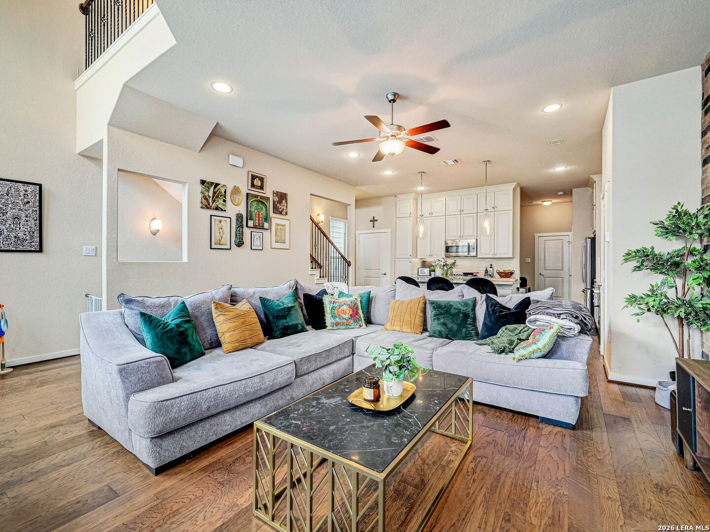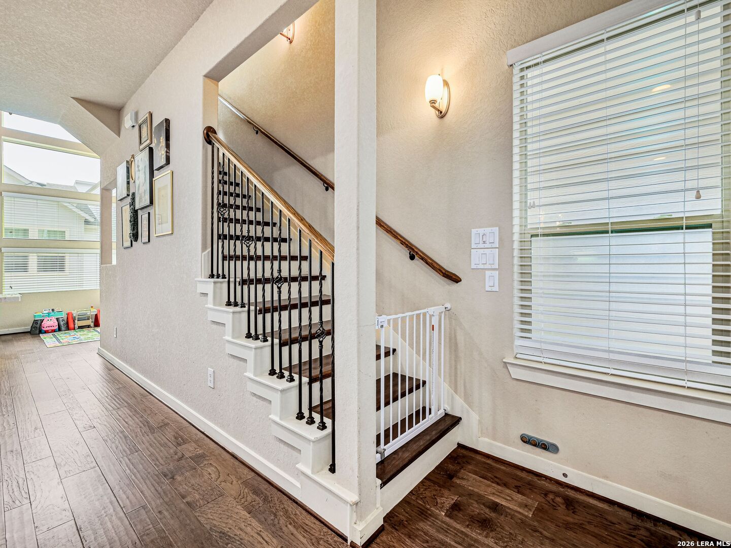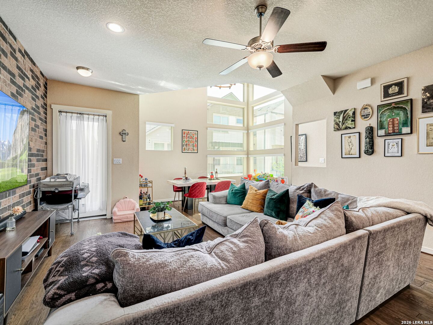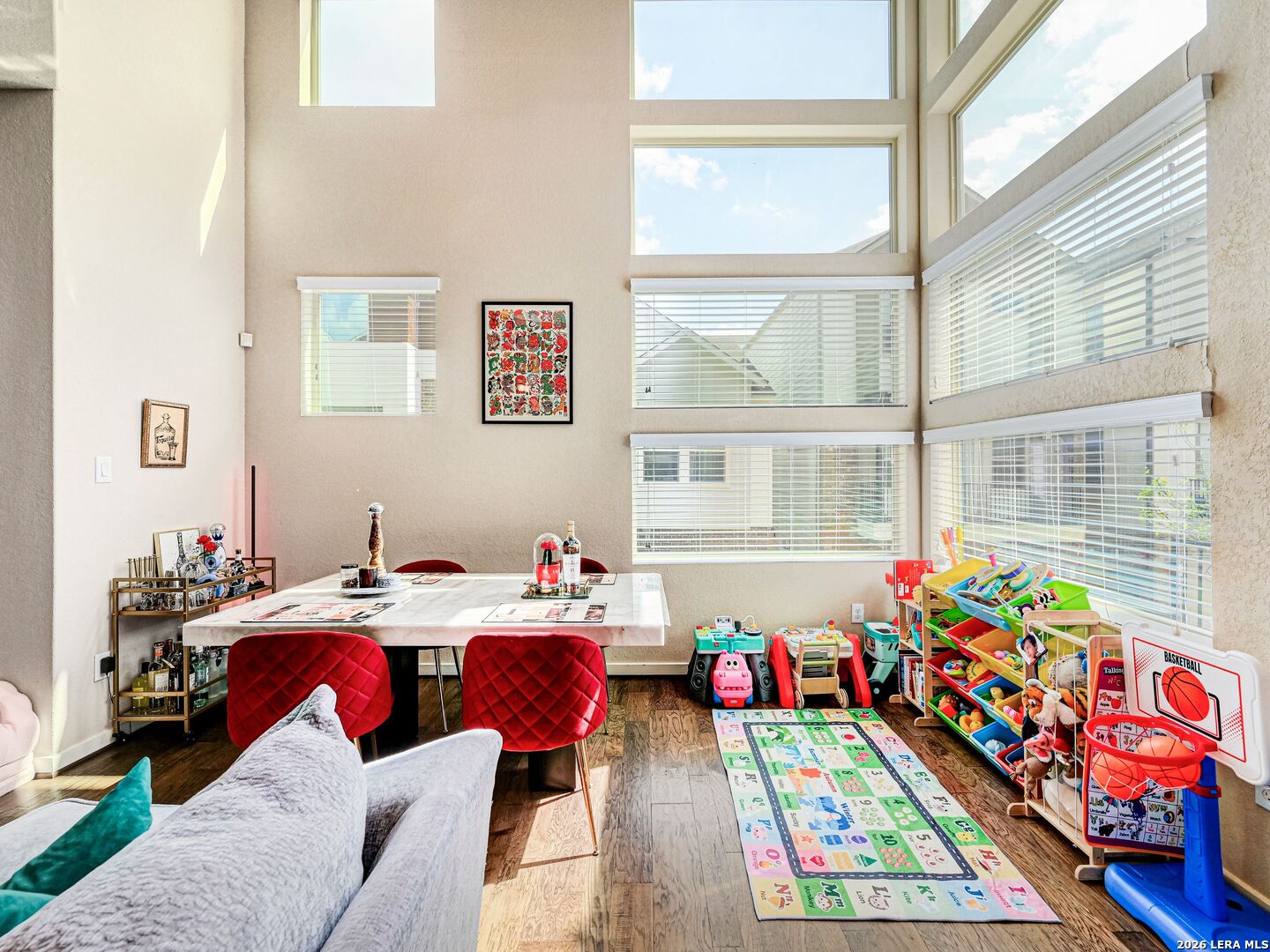 This modern three-story Crockett floor plan by David Weekley Homes is ideally located in the heart of San Antonio's highly desirable Northwood community. The area offers exceptional convenience, with shopping, dining, and entertainment just minutes away, along with quick access to three major highways, making it easy to get anywhere in the city. Inside, this custom home features dramatic oversized windows spanning the second and third floors, filling the space with natural light. The expansive open-concept living area offers 10-foot ceilings, recessed lighting throughout, and a bright, airy feel that is perfect for both everyday living and entertaining.