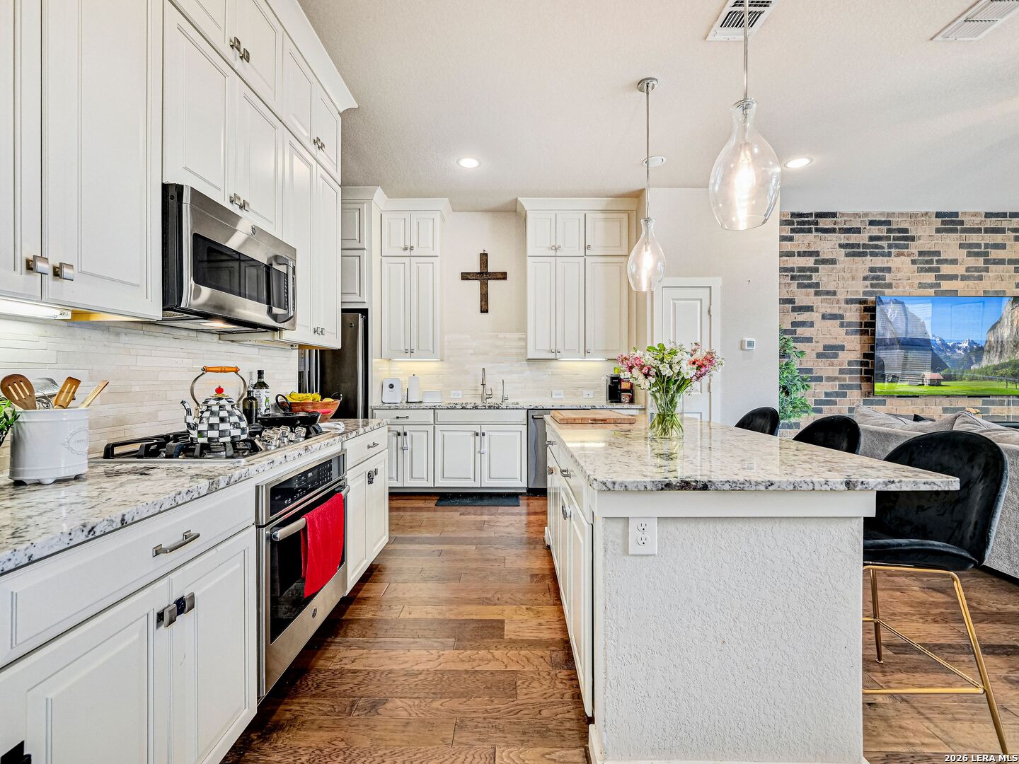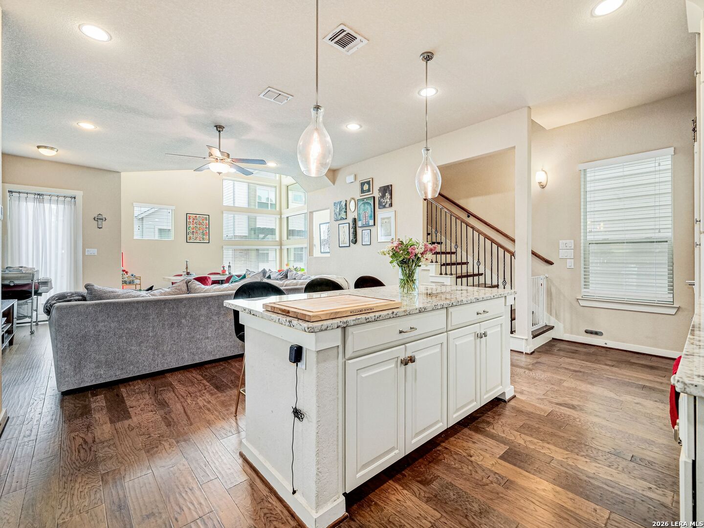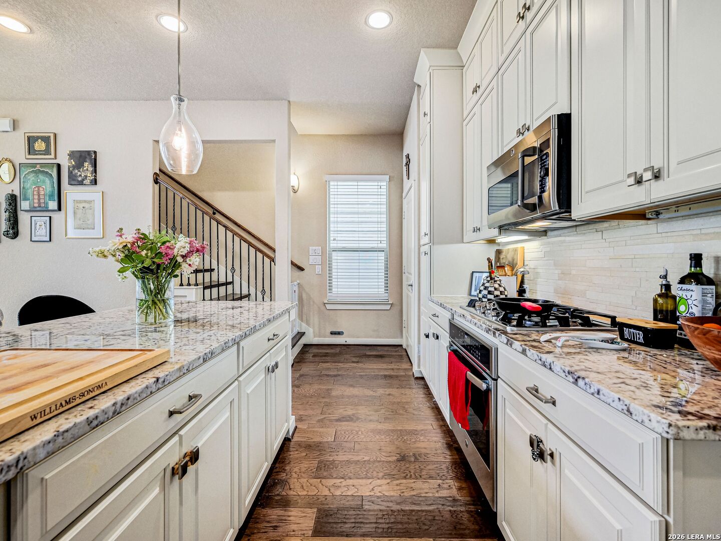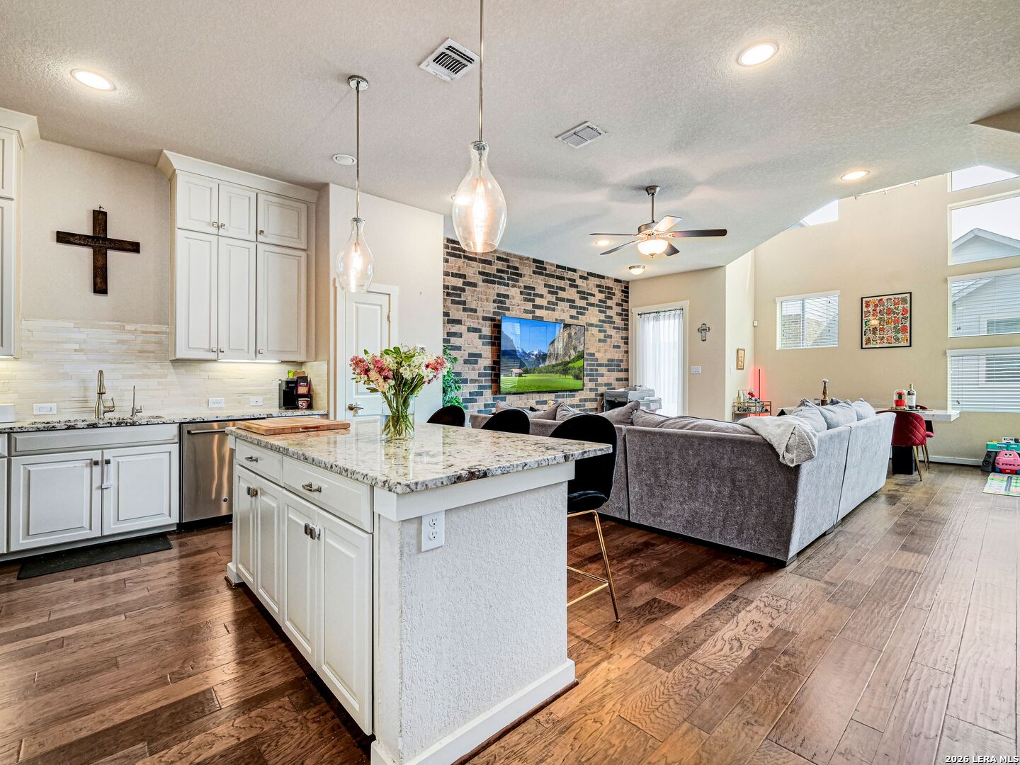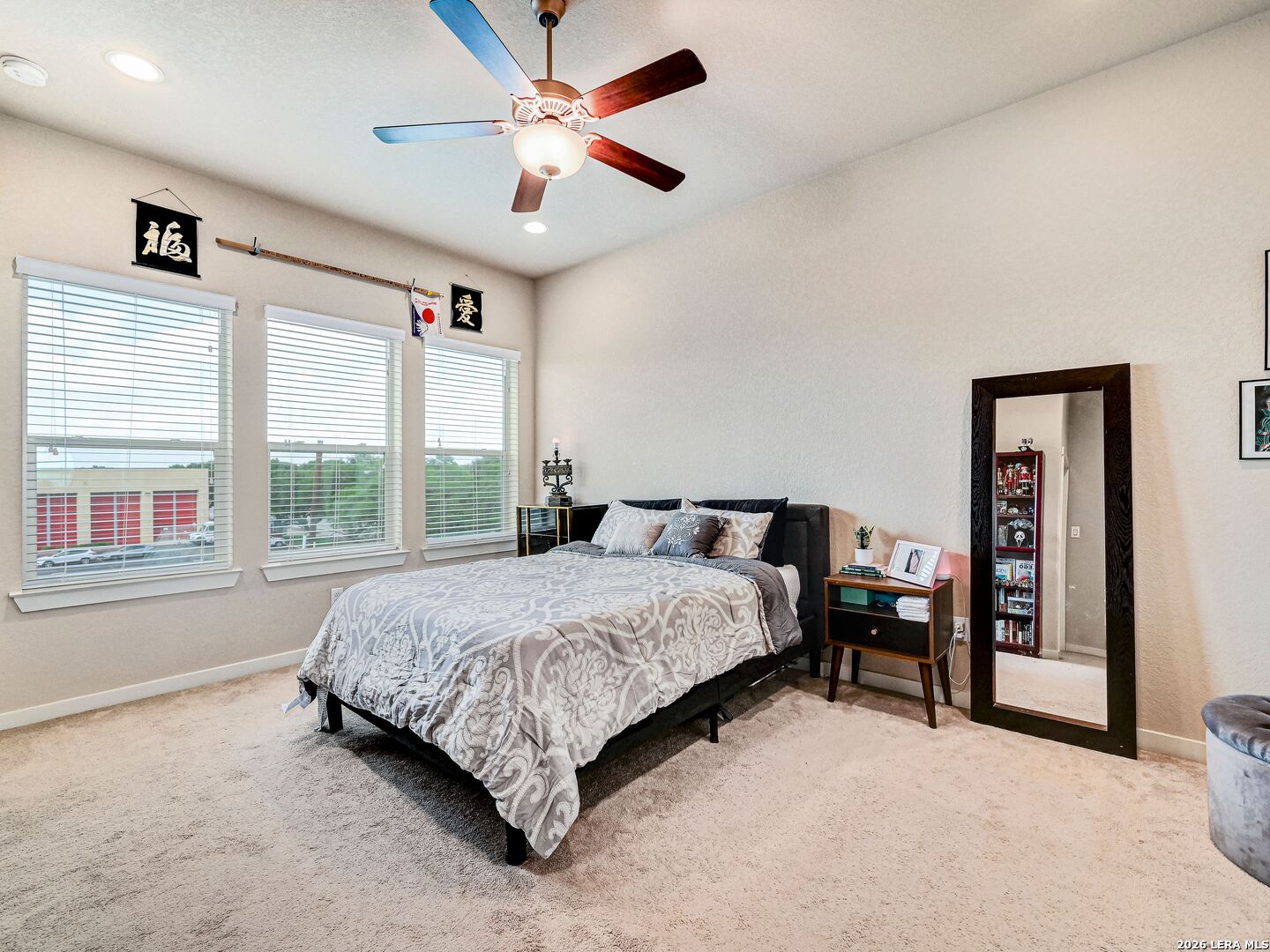 This modern three-story Crockett floor plan by David Weekley Homes is ideally located in the heart of San Antonio's highly desirable Northwood community. The area offers exceptional convenience, with shopping, dining, and entertainment just minutes away, along with quick access to three major highways, making it easy to get anywhere in the city. Inside, this custom home features dramatic oversized windows spanning the second and third floors, filling the space with natural light. The expansive open-concept living area offers 10-foot ceilings, recessed lighting throughout, and a bright, airy feel that is perfect for both everyday living and entertaining.