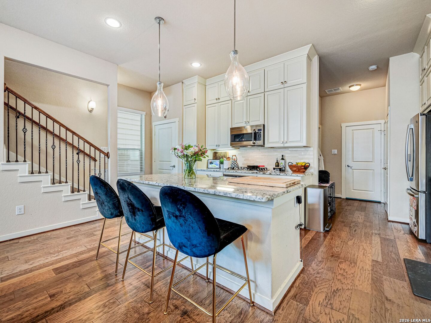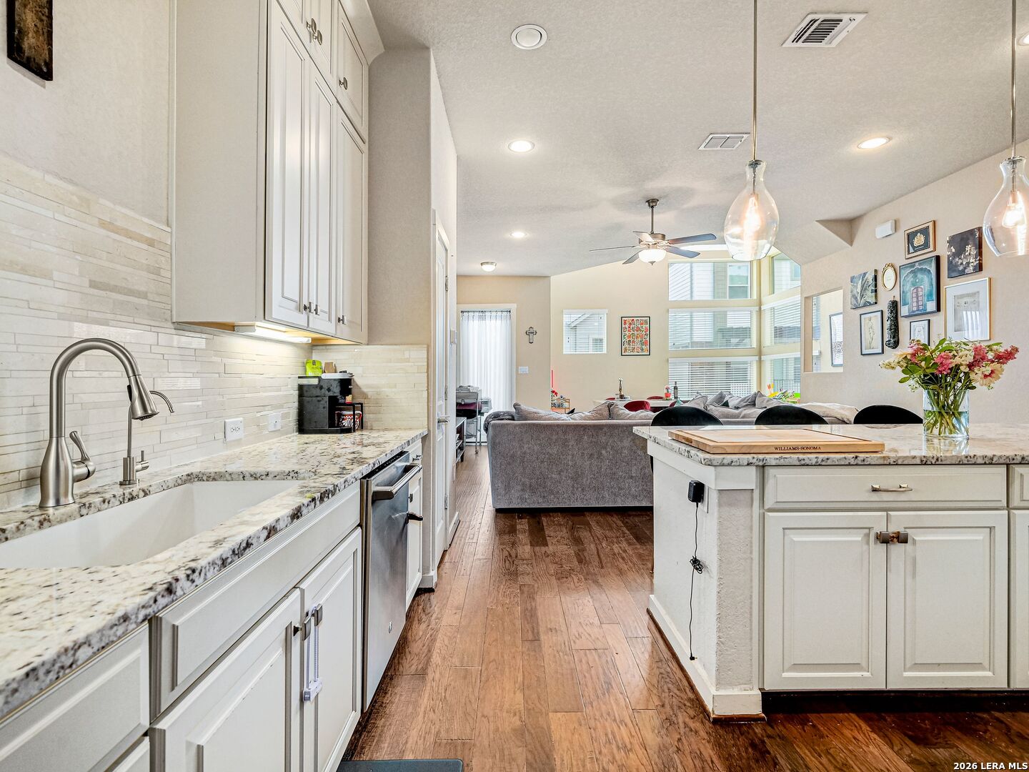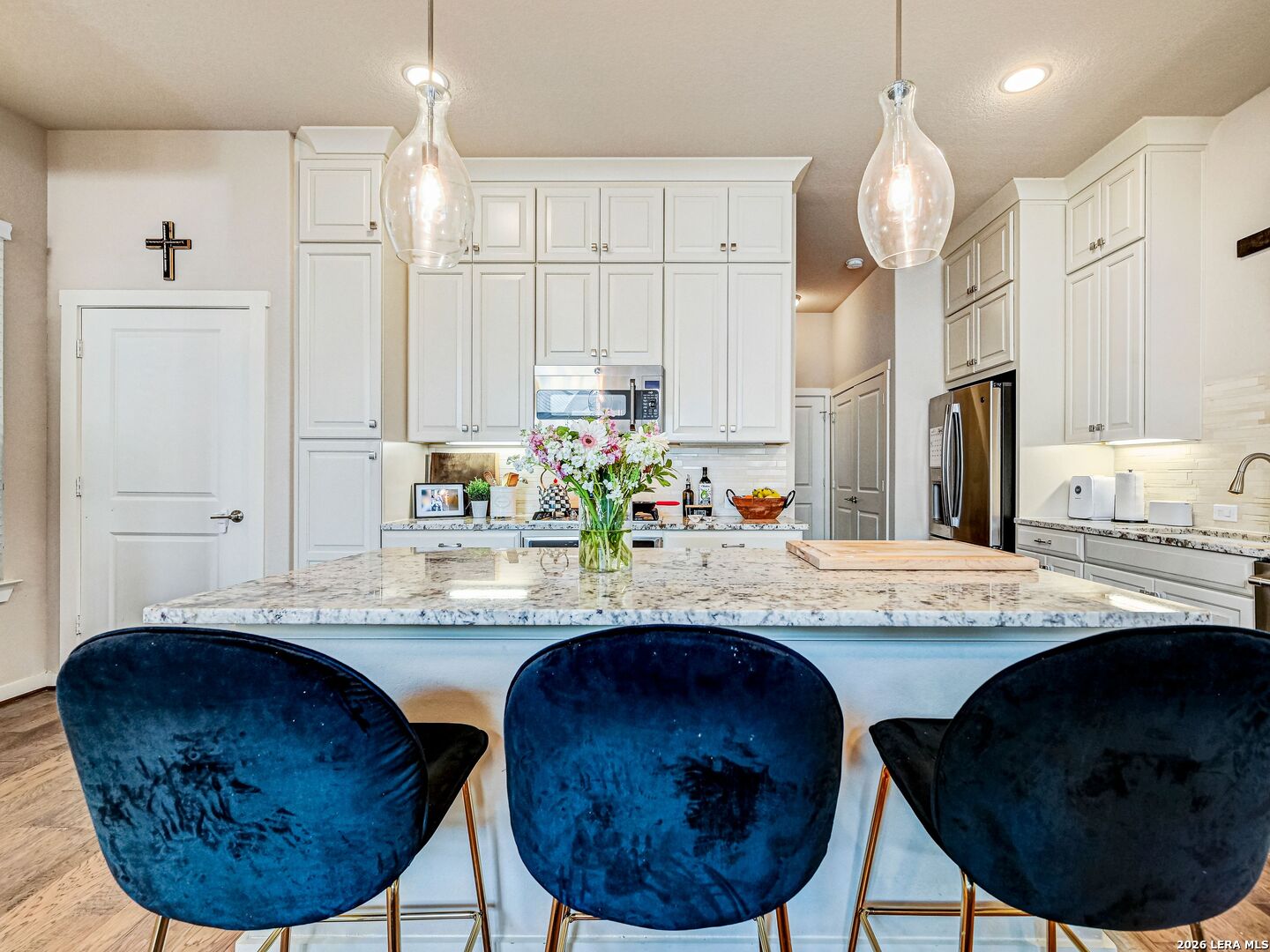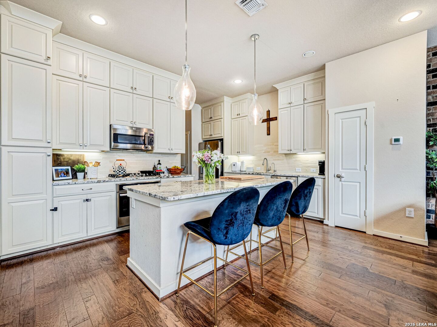 This modern three-story Crockett floor plan by David Weekley Homes is ideally located in the heart of San Antonio's highly desirable Northwood community. The area offers exceptional convenience, with shopping, dining, and entertainment just minutes away, along with quick access to three major highways, making it easy to get anywhere in the city. Inside, this custom home features dramatic oversized windows spanning the second and third floors, filling the space with natural light. The expansive open-concept living area offers 10-foot ceilings, recessed lighting throughout, and a bright, airy feel that is perfect for both everyday living and entertaining.
