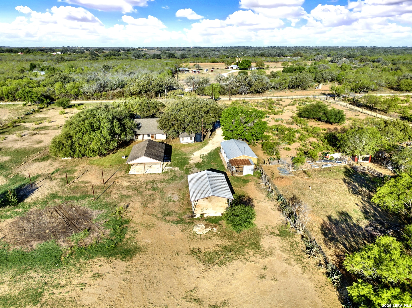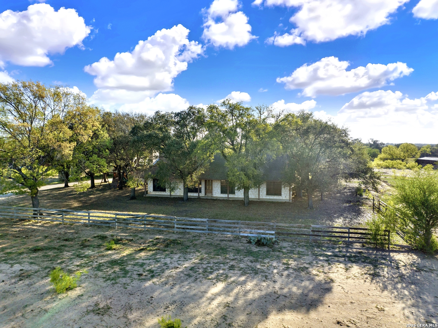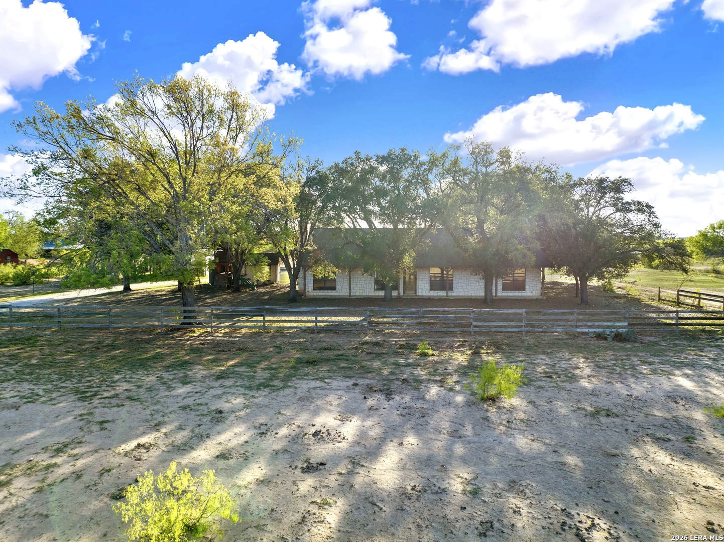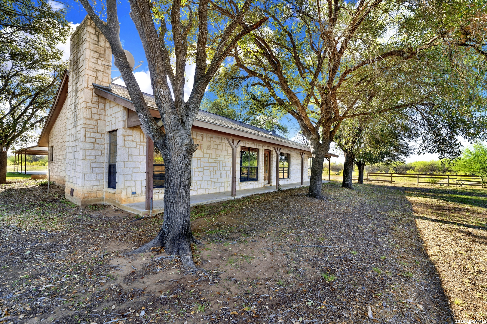 Beautiful 10-acre ag-exempt property in Devine offering the perfect blend of country living and functionality. This 2,037 sq ft home features 3 bedrooms, 2 bathrooms, plus a dedicated office, with an open-concept layout ideal for everyday living and entertaining. Enjoy cozy evenings by the rock fireplace and peace of mind with a one-year-old HVAC system and composition roof. The land is fully fenced and cross-fenced with gated access, making it ideal for livestock or agricultural use. Property includes two pole barns, plus a large barn equipped with septic and a bathroom-perfect for projects, storage, additional workspace or an awesome game room. Water is well-covered with a Yancey water meter and a 200-ft deep well with storage tank for irrigation and outdoor use. Additional features include RV electric hookup and propane gas tank. Owned since 2007 by only the second owners, this property has been well maintained and is ready for its next chapter.