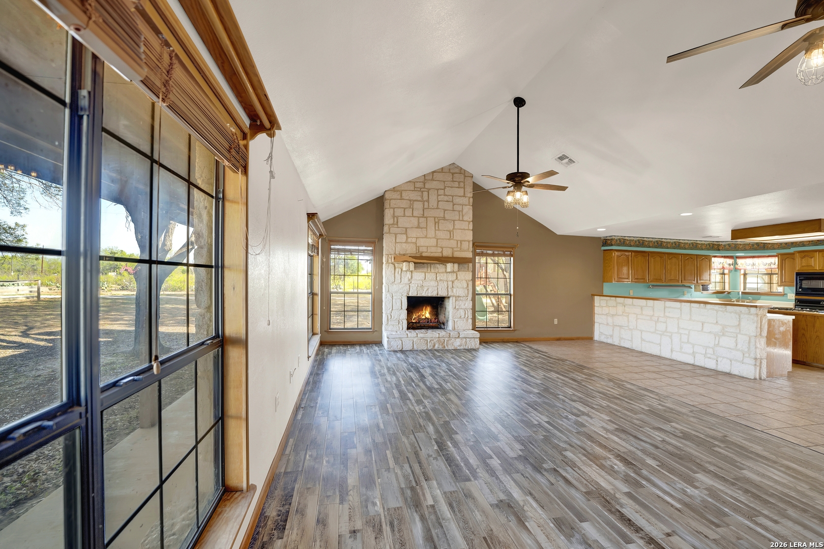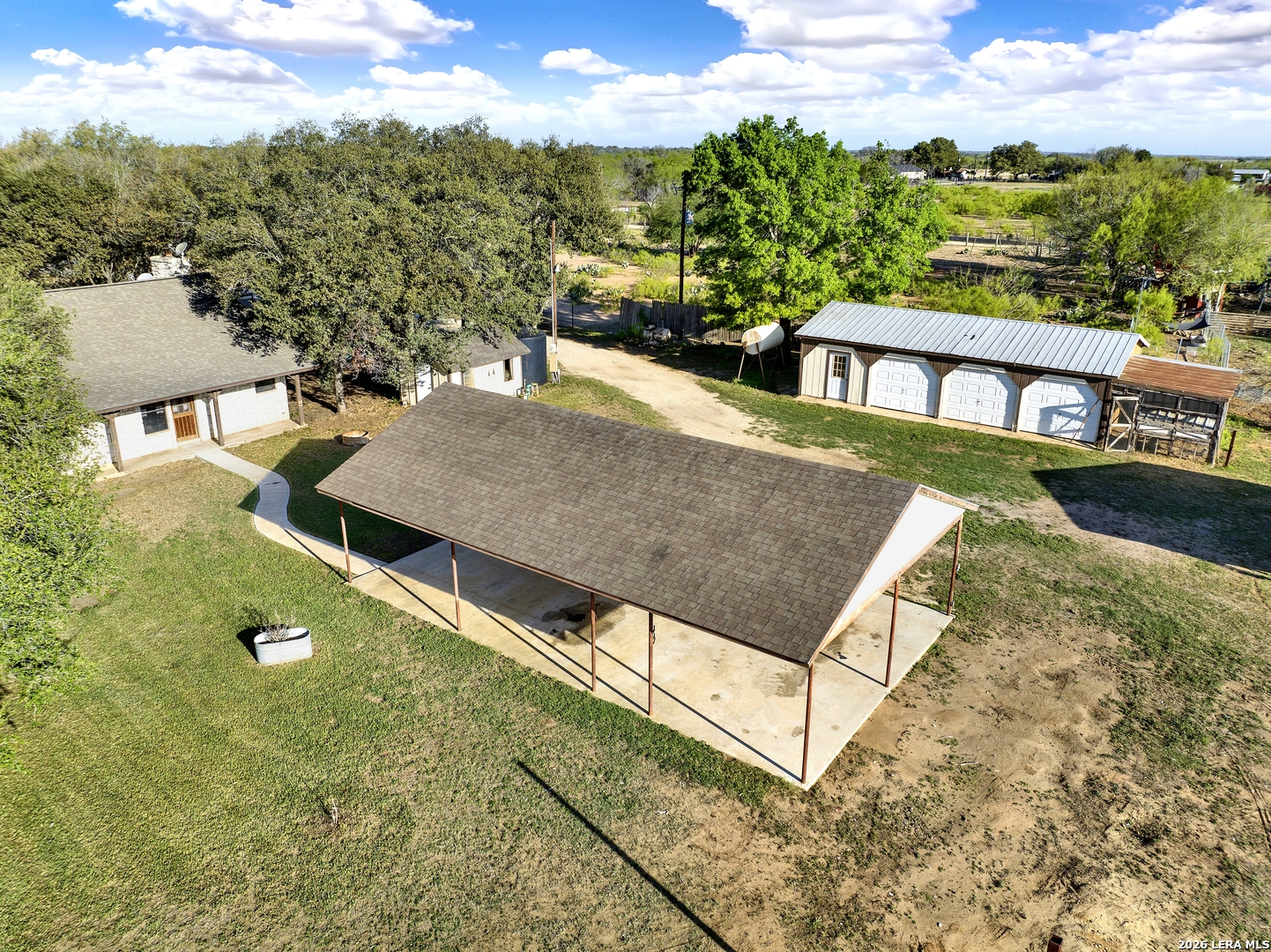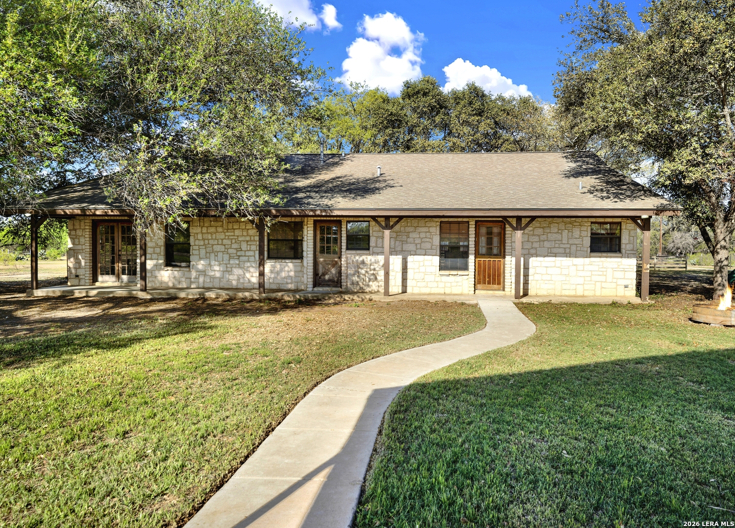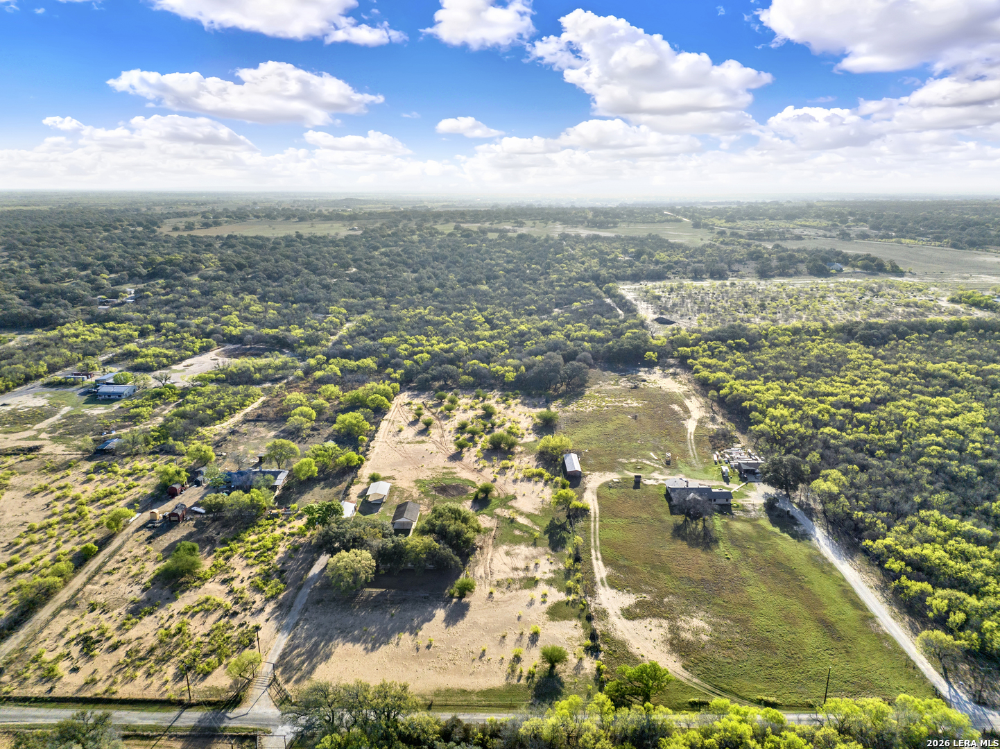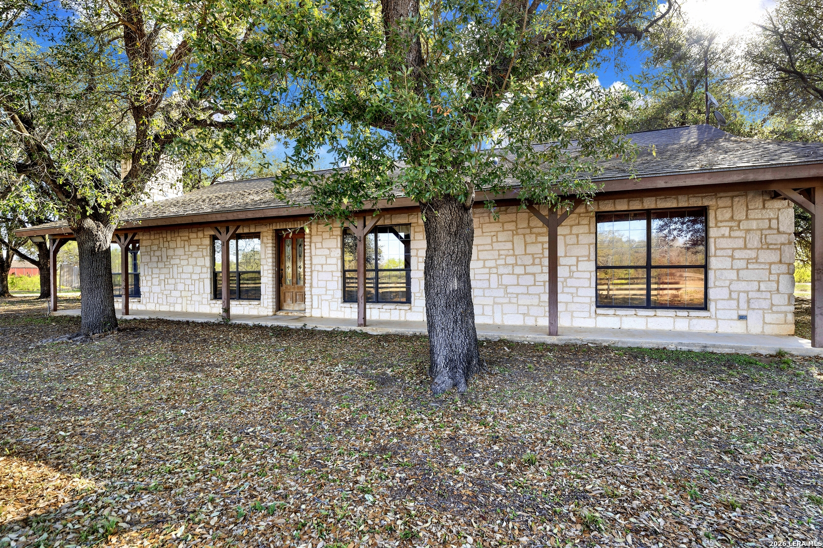 Beautiful 10-acre ag-exempt property in Devine offering the perfect blend of country living and functionality. This 2,037 sq ft home features 3 bedrooms, 2 bathrooms, plus a dedicated office, with an open-concept layout ideal for everyday living and entertaining. Enjoy cozy evenings by the rock fireplace and peace of mind with a one-year-old HVAC system and composition roof. The land is fully fenced and cross-fenced with gated access, making it ideal for livestock or agricultural use. Property includes two pole barns, plus a large barn equipped with septic and a bathroom-perfect for projects, storage, additional workspace or an awesome game room. Water is well-covered with a Yancey water meter and a 200-ft deep well with storage tank for irrigation and outdoor use. Additional features include RV electric hookup and propane gas tank. Owned since 2007 by only the second owners, this property has been well maintained and is ready for its next chapter.