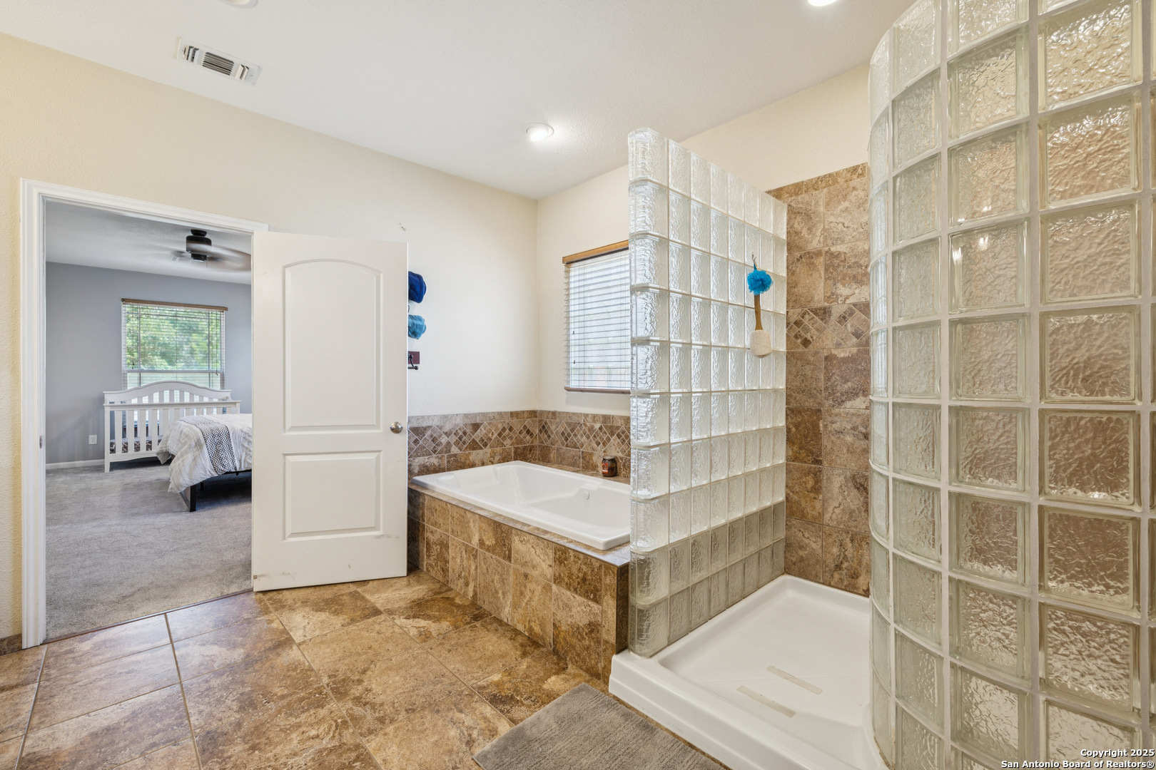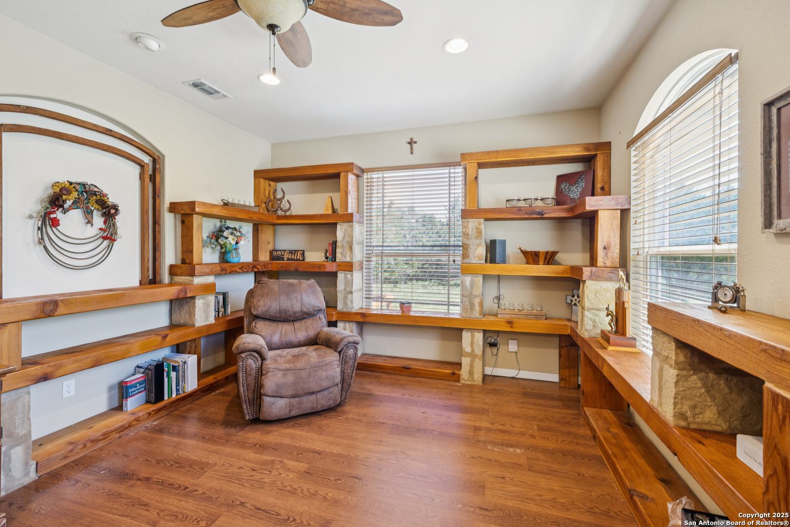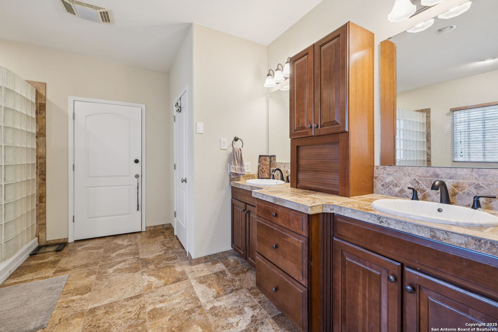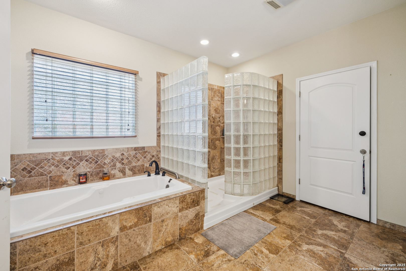 Welcome to your dream home nestled in the sought-after Flying L Ranch community! This beautifully maintained 3-bedroom, 2-bathroom residence offers a perfect blend of comfort and style. Step inside to find solid surface countertops in a spacious kitchen ideal for entertaining. Woodburning Fireplace. The primary suite features a massive walk-in closet, plus a luxurious en-suite bathroom with a separate tub and shower-perfect for relaxing after a long day. Enjoy outdoor living under a majestic oak canopy on the wooden deck, creating a peaceful retreat for morning coffee or evening gatherings. Don't miss your chance to live in this serene, well-established neighborhood with amenities and Hill Country charm.