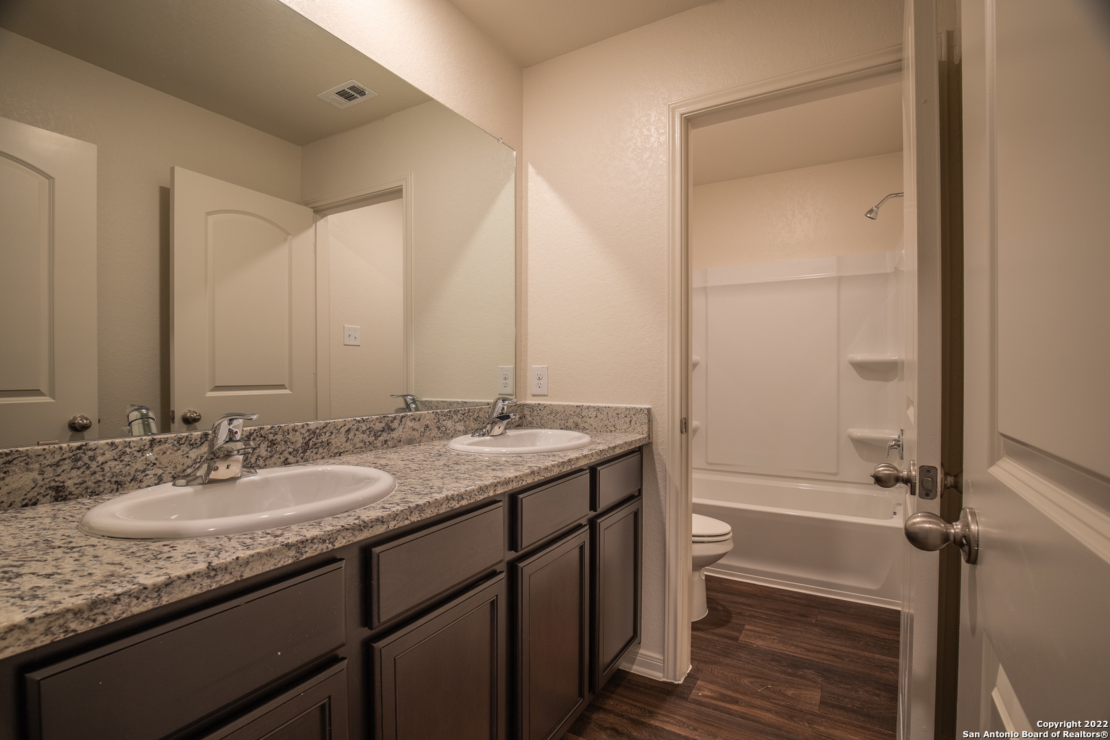 Available Now! This spacious 5-bedroom home in Morningside Trails, New Braunfels features a downstairs master suite and a large upstairs game room. Enjoy designer upgrades at no extra cost, including energy-efficient Whirlpool appliances (fridge included), granite countertops, 36" upper wood cabinets with crown molding, luxury wood-style flooring, a programmable thermostat, and a Wi-Fi-enabled garage door opener. Ideally located just north of San Antonio with easy access to top schools, jobs, and local attractions.