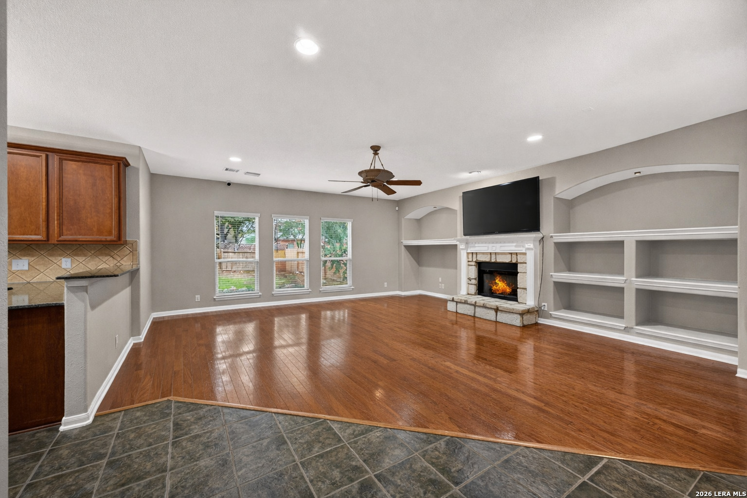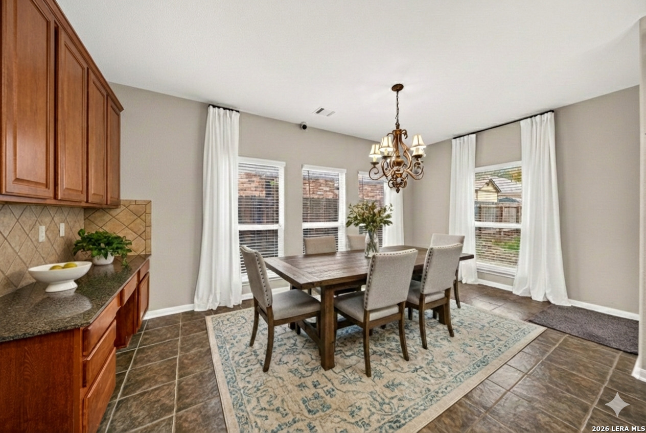 Welcome to this beautifully maintained home located in the highly sought-after, gated community of Finesilver Ranch. Offering 3,648 square feet of thoughtfully designed living space, this impressive residence features 5 spacious bedrooms and 3.5 bathrooms, providing flexibility and comfort for a variety of lifestyles. Designed with both everyday living and entertaining in mind, the open-concept floor plan flows seamlessly through the main living areas. The interior showcases granite countertops, custom wood shutters, and tasteful finishes that create a warm, timeless aesthetic. Generously sized bedrooms offer ample space for relaxation, while the layout allows for privacy and functionality throughout the home. Step outside to enjoy the covered patio and extended patio floor, perfect for outdoor dining or gatherings. The expansive backyard is shaded by mature trees, offering a peaceful retreat and plenty of room to enjoy the outdoors. Residents of Finesilver Ranch enjoy access to outstanding amenities, including a clubhouse with pool, park, pickle ball court, basketball court and scenic walking trails. Conveniently located off Braun Road, this gated community provides a tranquil setting with easy access to shopping, dining, and major thoroughfares. This exceptional property offers the ideal blend of space, comfort, and location.