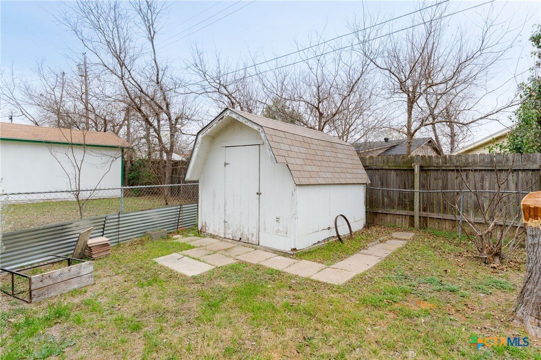 This well-maintained single-family home offers a move-in ready 3-bedroom, 2-bath layout with recent fresh interior paint and easy-care wood-look flooring throughout the main living areas. The open living and dining space provides a practical flow for everyday living. The kitchen features white cabinetry, updated countertops, and stainless steel appliances, with ample storage and workspace. Bedrooms are comfortably sized, and both bathrooms are finished in neutral tones. A covered patio overlooks the backyard and includes a detached storage shed, adding functional outdoor space. Conveniently located just minutes from I-35, Baylor Scott & White Medical Center, shopping, and restaurants, this home offers accessibility to major employers and daily amenities. A solid opportunity for buyers seeking a single-family home in move-in ready condition, well suited for those entering homeownership or looking for a manageable, low-maintenance property.