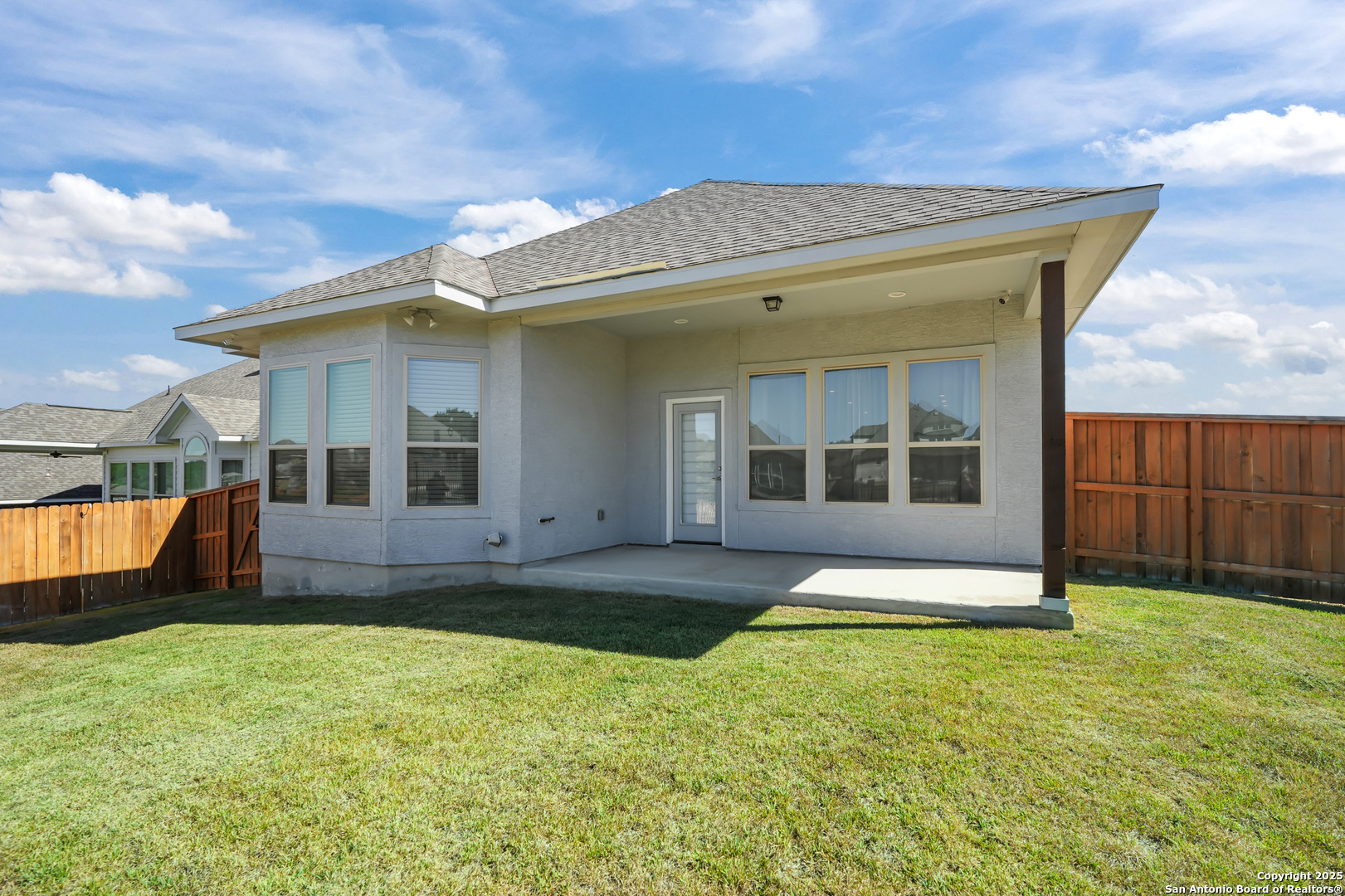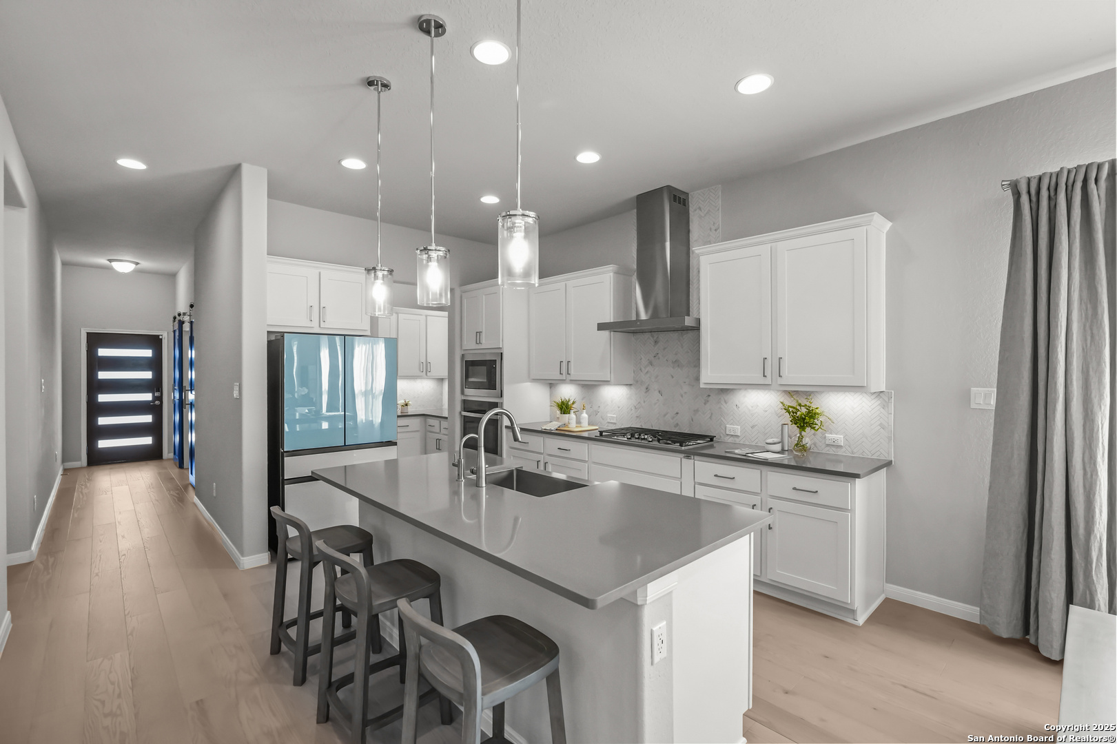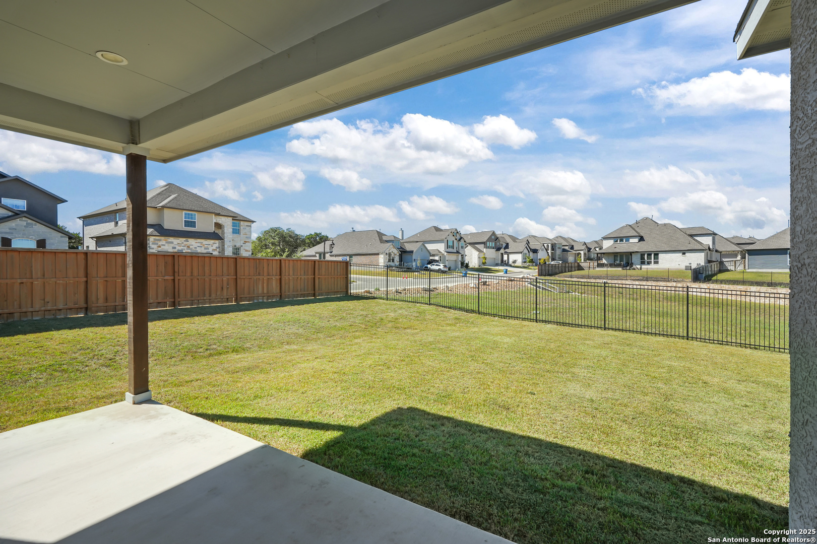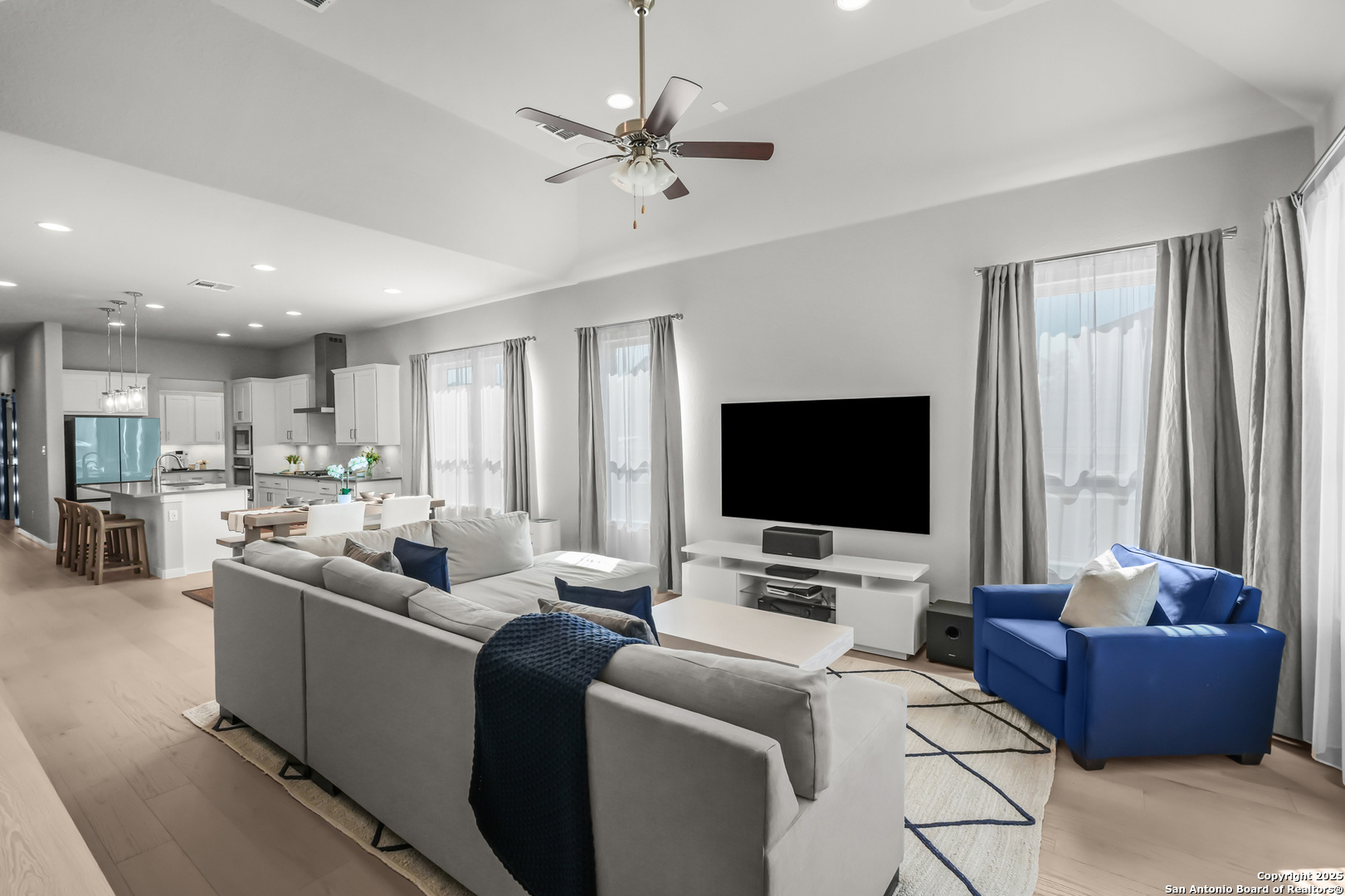 Experience elevated living in this immaculate single-owner home in prestigious Cibolo Canyons. Every detail has been thoughtfully designed, from the open-concept layout and soaring ceilings to the walls of windows that fill the home with natural light. The chef-inspired kitchen showcases sleek quartz counters, gas cooking, an oversized island with seating, soft-close cabinetry, walk-in pantry, a butler's pantry offering abundant counter space for appliances or additional prep and an effortless flow into the main living space perfect for entertaining. The primary suite provides a serene retreat with a bay window, a spa-like bath with a walk-in shower and rain head, and a spacious closet with direct access to the laundry room complete with built-in cabinetry. Additional highlights include energy-efficient design, a private study with barn doors, wood flooring, recessed lighting, CAT 6 ethernet throughout the home, surround sound, an epoxy-coated garage floor, a full sprinkler system and so much more! Step outside to enjoy seamless indoor and outdoor living on the covered back patio, already plumbed for gas and overlooking a tranquil greenbelt. The backyard offers plenty of space for relaxing, playing or entertaining. No city taxes! Residents of Cibolo Canyons enjoy resort-style amenities including two amenity centers with 24-hour fitness, a lazy river, splash pad, waterpark, and basketball courts, soccer field, and scenic walking trails. The community features exclusive community events and programs and offers special TPC San Antonio membership discounts further enhance this exceptional community. Conveniently located near the JW Marriott with easy access to Hwy 281, Loop 1604, shopping, dining, and major employers, this gated enclave offers luxury, convenience, and a true sense of place in one of San Antonio's most desirable areas. WELCOME HOME!