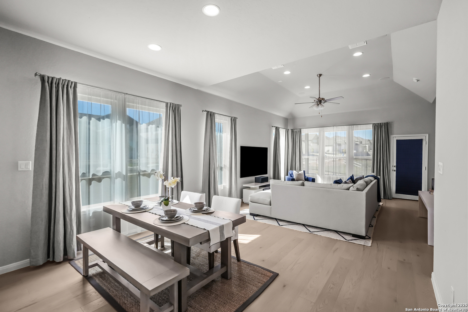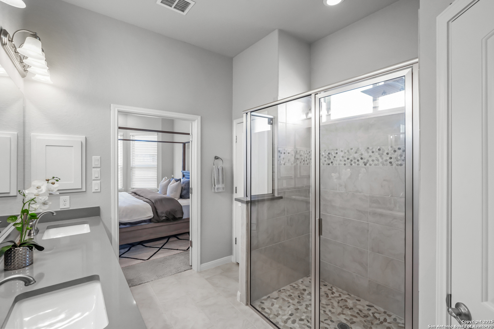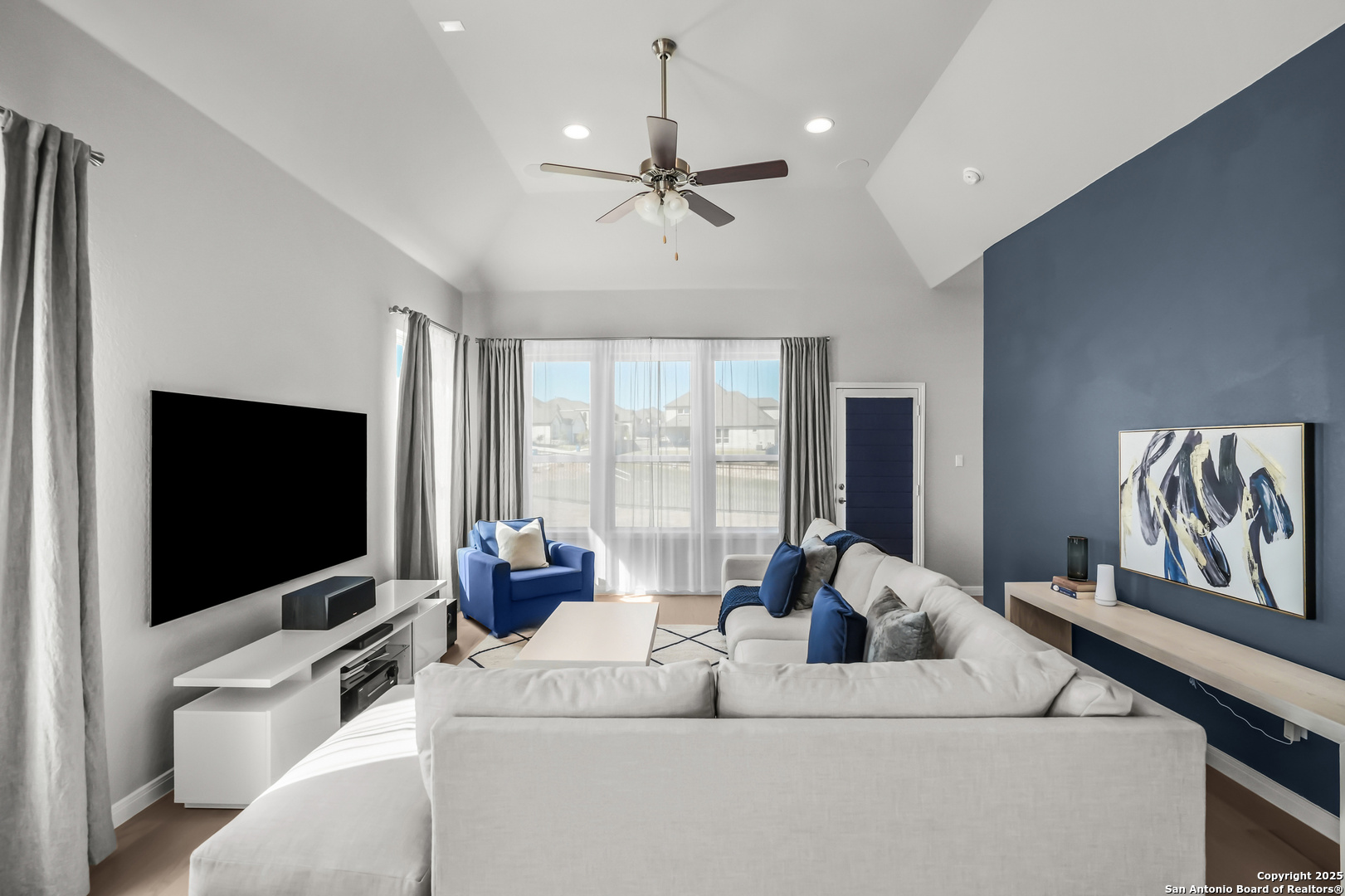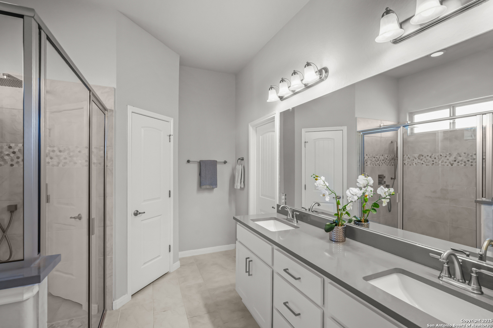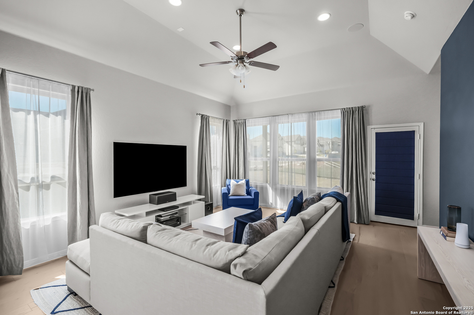Experience elevated living in this immaculate single-owner home in prestigious Cibolo Canyons. Every detail has been thoughtfully designed, from the open-concept layout and soaring ceilings to the walls of windows that fill the home with natural light. The chef-inspired kitchen showcases sleek quartz counters, gas cooking, an oversized island with seating, soft-close cabinetry, walk-in pantry, a butler's pantry offering abundant counter space for appliances or additional prep and an effortless flow into the main living space perfect for entertaining. The primary suite provides a serene retreat with a bay window, a spa-like bath with a walk-in shower and rain head, and a spacious closet with direct access to the laundry room complete with built-in cabinetry. Additional highlights include energy-efficient design, a private study with barn doors, wood flooring, recessed lighting, CAT 6 ethernet throughout the home, surround sound, an epoxy-coated garage floor, a full sprinkler system and so much more! Step outside to enjoy seamless indoor and outdoor living on the covered back patio, already plumbed for gas and overlooking a tranquil greenbelt. The backyard offers plenty of space for relaxing, playing or entertaining. No city taxes! Residents of Cibolo Canyons enjoy resort-style amenities including two amenity centers with 24-hour fitness, a lazy river, splash pad, waterpark, and basketball courts, soccer field, and scenic walking trails. The community features exclusive community events and programs and offers special TPC San Antonio membership discounts further enhance this exceptional community. Conveniently located near the JW Marriott with easy access to Hwy 281, Loop 1604, shopping, dining, and major employers, this gated enclave offers luxury, convenience, and a true sense of place in one of San Antonio's most desirable areas. WELCOME HOME!