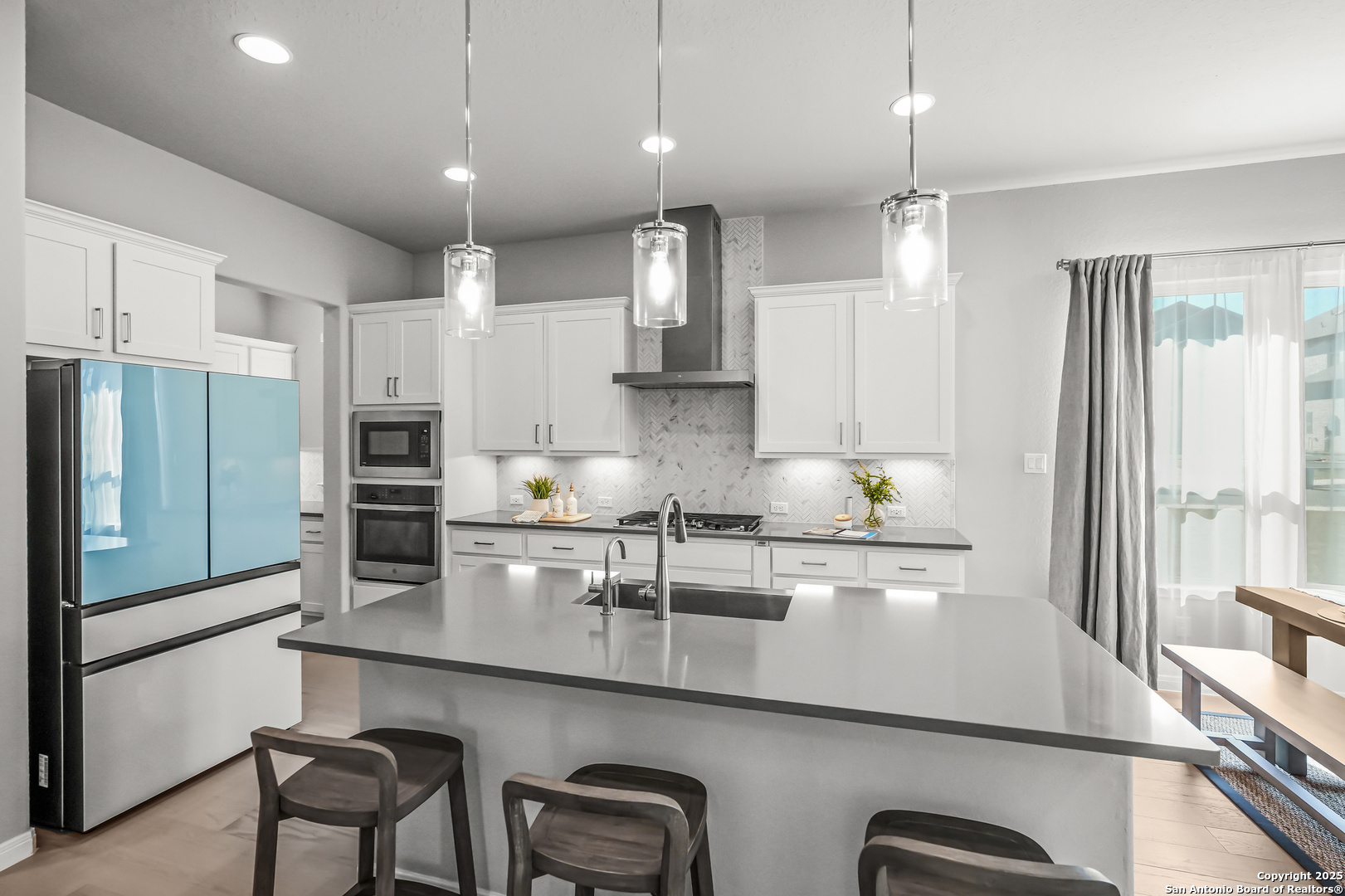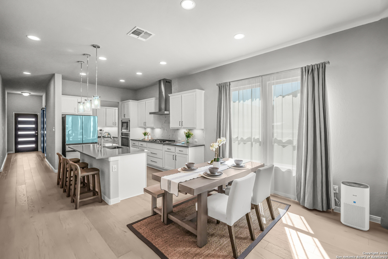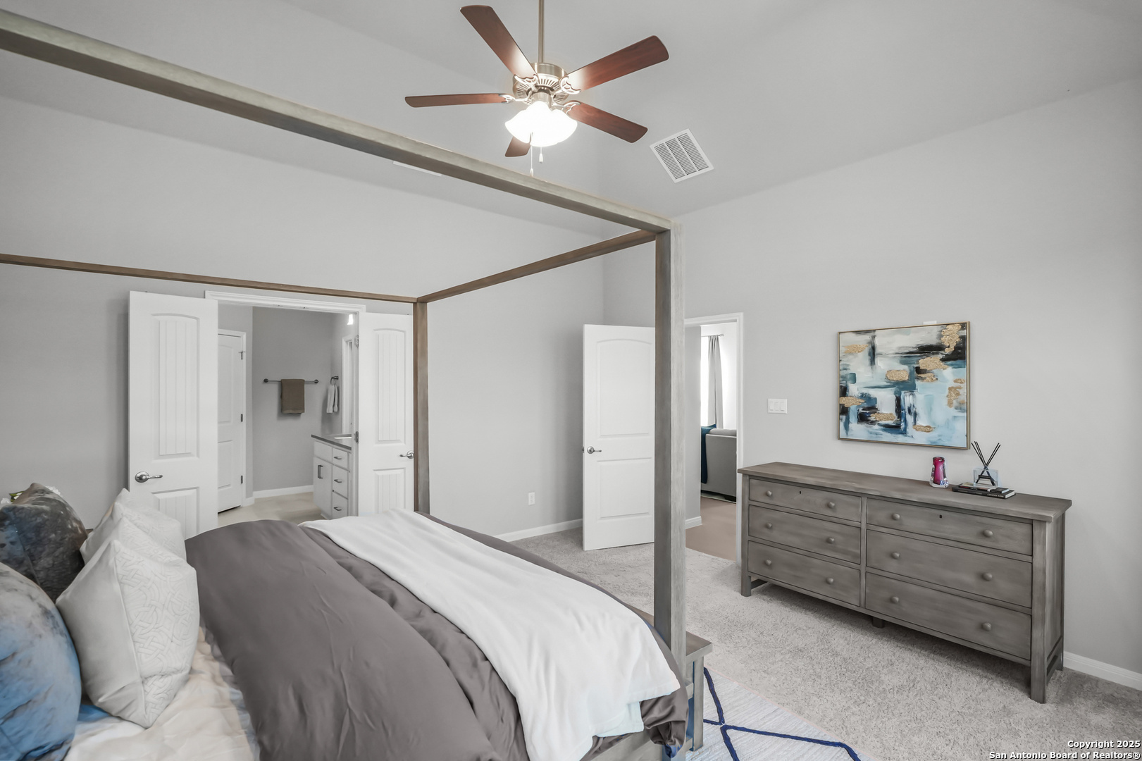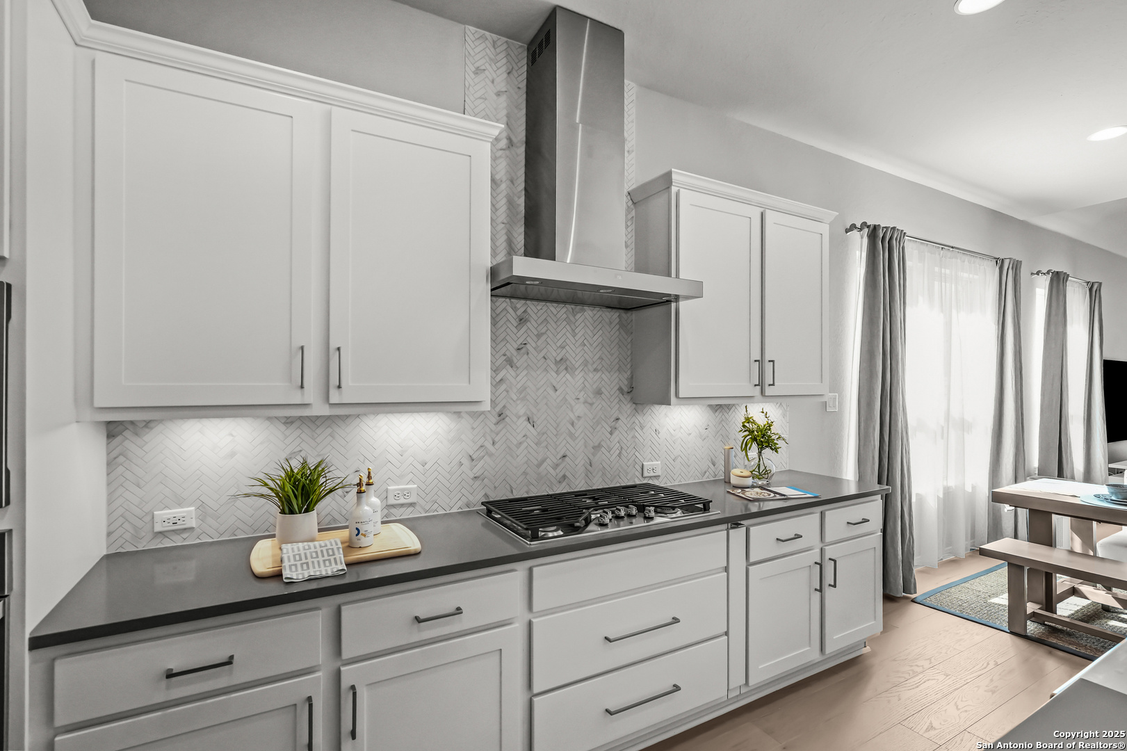 Experience elevated living in this immaculate single-owner home in prestigious Cibolo Canyons. Every detail has been thoughtfully designed, from the open-concept layout and soaring ceilings to the walls of windows that fill the home with natural light. The chef-inspired kitchen showcases sleek quartz counters, gas cooking, an oversized island with seating, soft-close cabinetry, walk-in pantry, a butler's pantry offering abundant counter space for appliances or additional prep and an effortless flow into the main living space perfect for entertaining. The primary suite provides a serene retreat with a bay window, a spa-like bath with a walk-in shower and rain head, and a spacious closet with direct access to the laundry room complete with built-in cabinetry. Additional highlights include energy-efficient design, a private study with barn doors, wood flooring, recessed lighting, CAT 6 ethernet throughout the home, surround sound, an epoxy-coated garage floor, a full sprinkler system and so much more! Step outside to enjoy seamless indoor and outdoor living on the covered back patio, already plumbed for gas and overlooking a tranquil greenbelt. The backyard offers plenty of space for relaxing, playing or entertaining. No city taxes! Residents of Cibolo Canyons enjoy resort-style amenities including two amenity centers with 24-hour fitness, a lazy river, splash pad, waterpark, and basketball courts, soccer field, and scenic walking trails. The community features exclusive community events and programs and offers special TPC San Antonio membership discounts further enhance this exceptional community. Conveniently located near the JW Marriott with easy access to Hwy 281, Loop 1604, shopping, dining, and major employers, this gated enclave offers luxury, convenience, and a true sense of place in one of San Antonio's most desirable areas. WELCOME HOME!