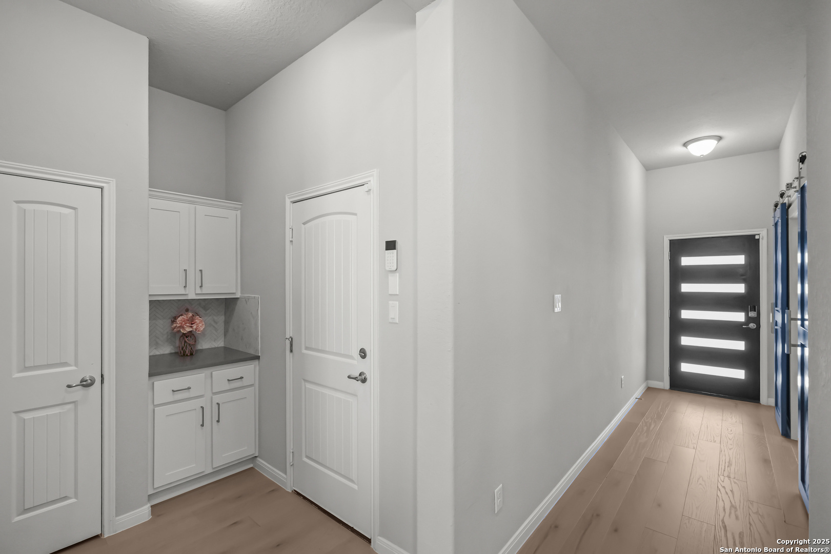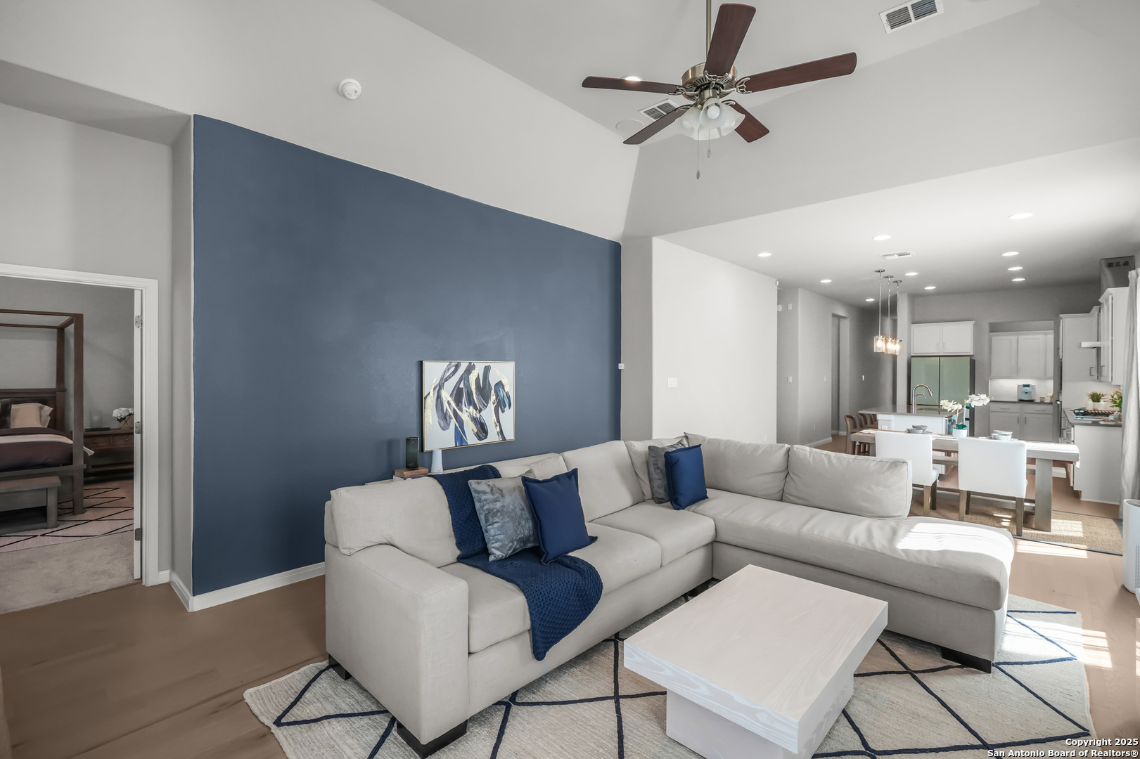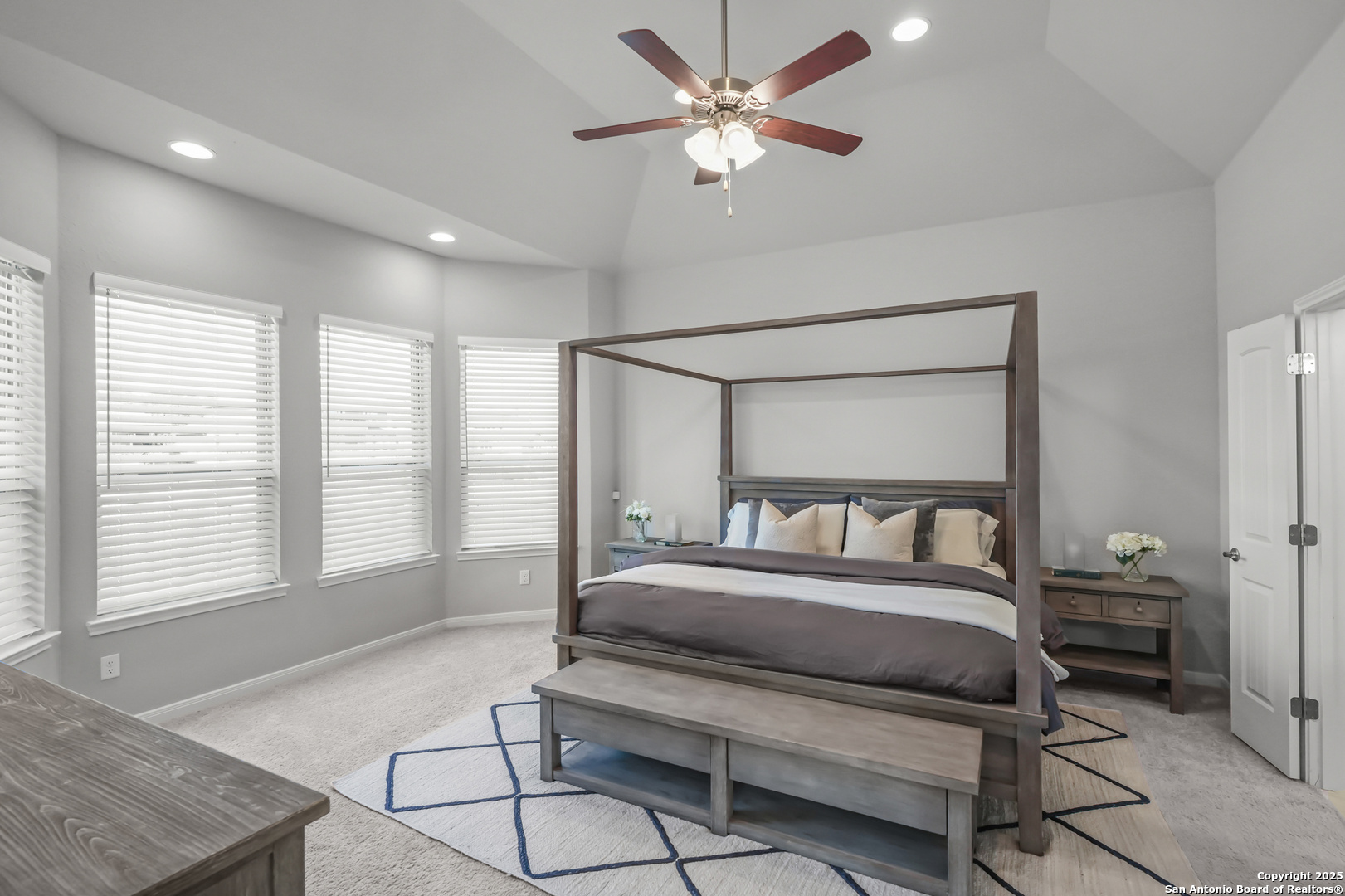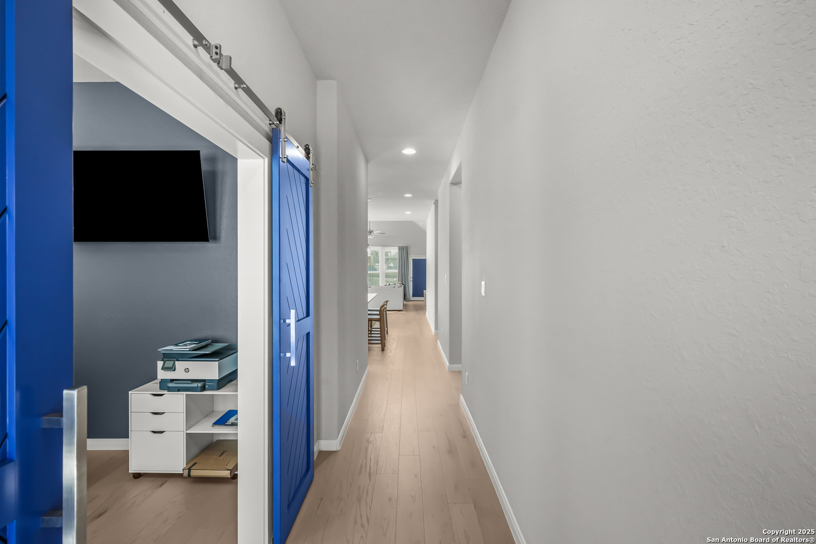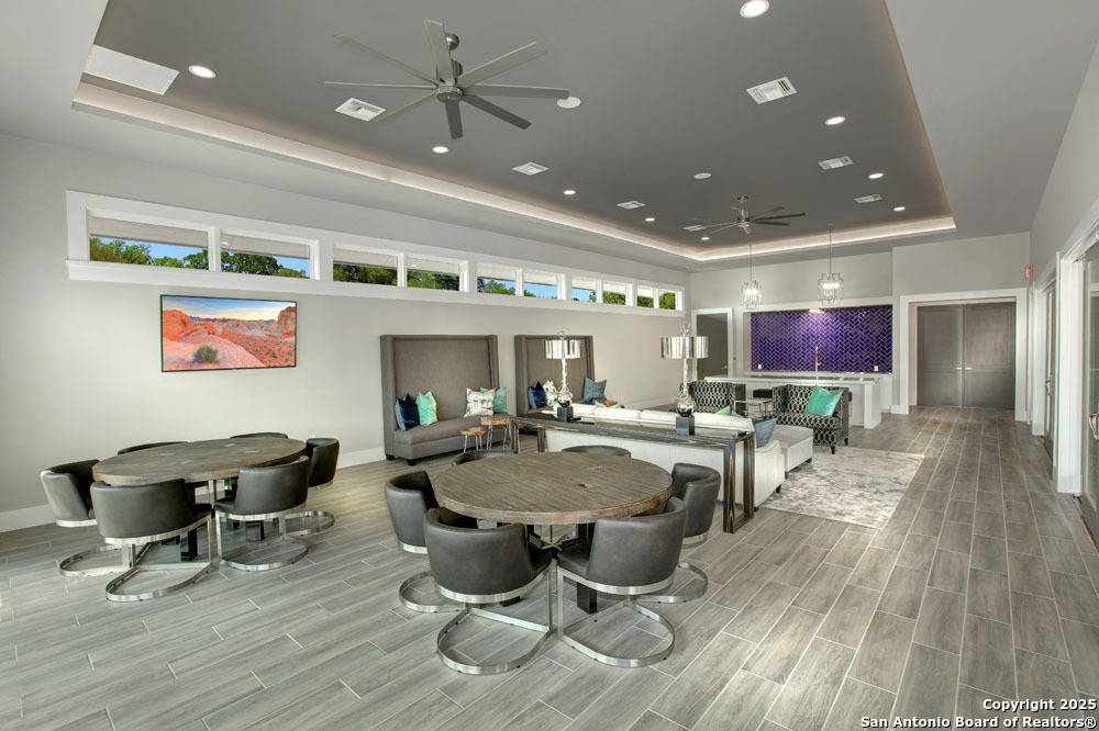 Experience elevated living in this immaculate single-owner home in prestigious Cibolo Canyons. Every detail has been thoughtfully designed, from the open-concept layout and soaring ceilings to the walls of windows that fill the home with natural light. The chef-inspired kitchen showcases sleek quartz counters, gas cooking, an oversized island with seating, soft-close cabinetry, walk-in pantry, a butler's pantry offering abundant counter space for appliances or additional prep and an effortless flow into the main living space perfect for entertaining. The primary suite provides a serene retreat with a bay window, a spa-like bath with a walk-in shower and rain head, and a spacious closet with direct access to the laundry room complete with built-in cabinetry. Additional highlights include energy-efficient design, a private study with barn doors, wood flooring, recessed lighting, CAT 6 ethernet throughout the home, surround sound, an epoxy-coated garage floor, a full sprinkler system and so much more! Step outside to enjoy seamless indoor and outdoor living on the covered back patio, already plumbed for gas and overlooking a tranquil greenbelt. The backyard offers plenty of space for relaxing, playing or entertaining. No city taxes! Residents of Cibolo Canyons enjoy resort-style amenities including two amenity centers with 24-hour fitness, a lazy river, splash pad, waterpark, and basketball courts, soccer field, and scenic walking trails. The community features exclusive community events and programs and offers special TPC San Antonio membership discounts further enhance this exceptional community. Conveniently located near the JW Marriott with easy access to Hwy 281, Loop 1604, shopping, dining, and major employers, this gated enclave offers luxury, convenience, and a true sense of place in one of San Antonio's most desirable areas. WELCOME HOME!