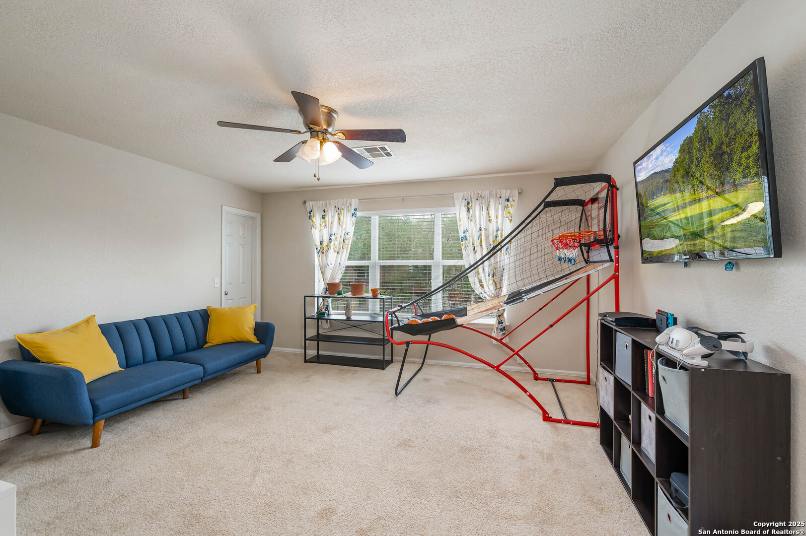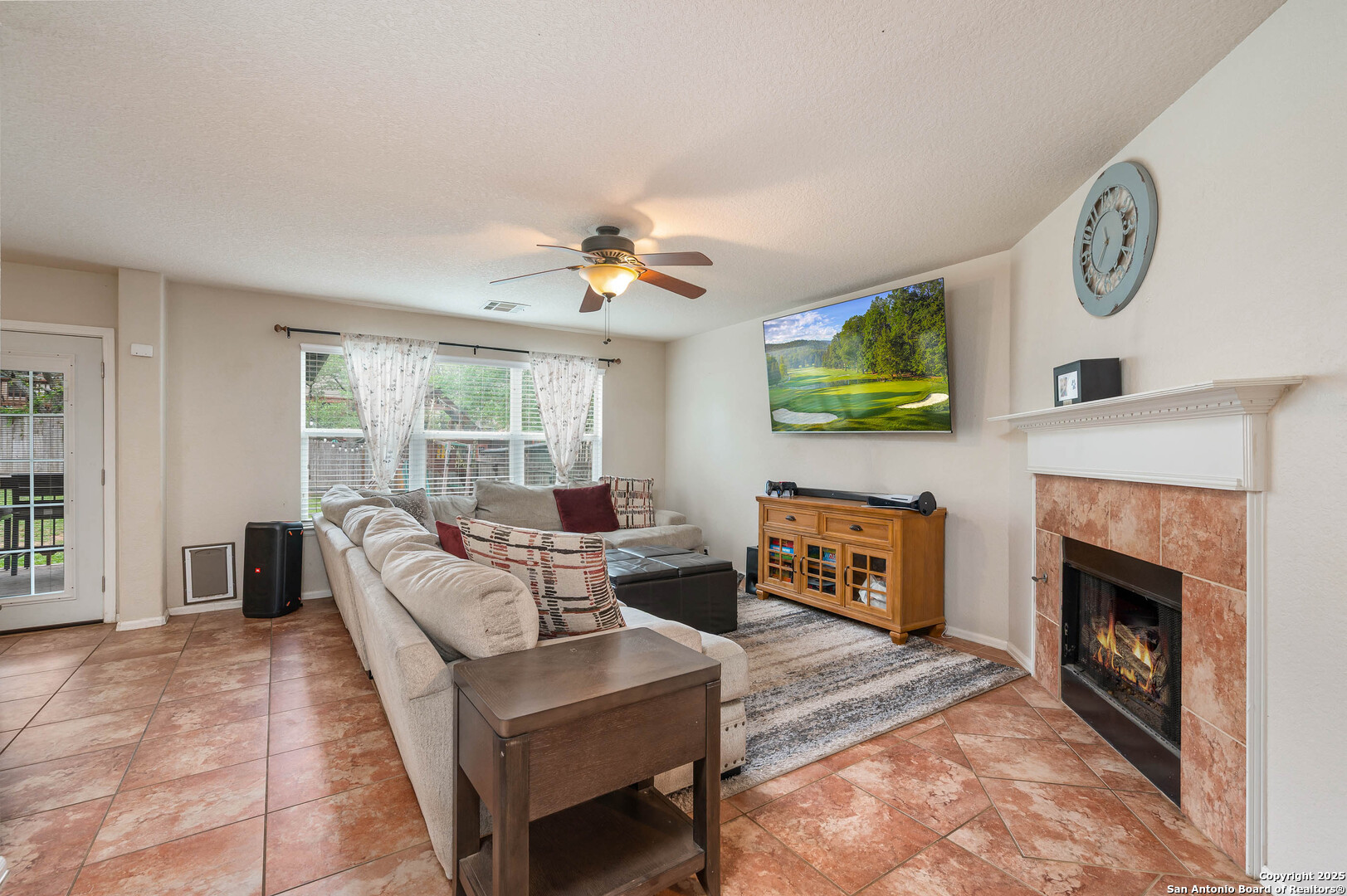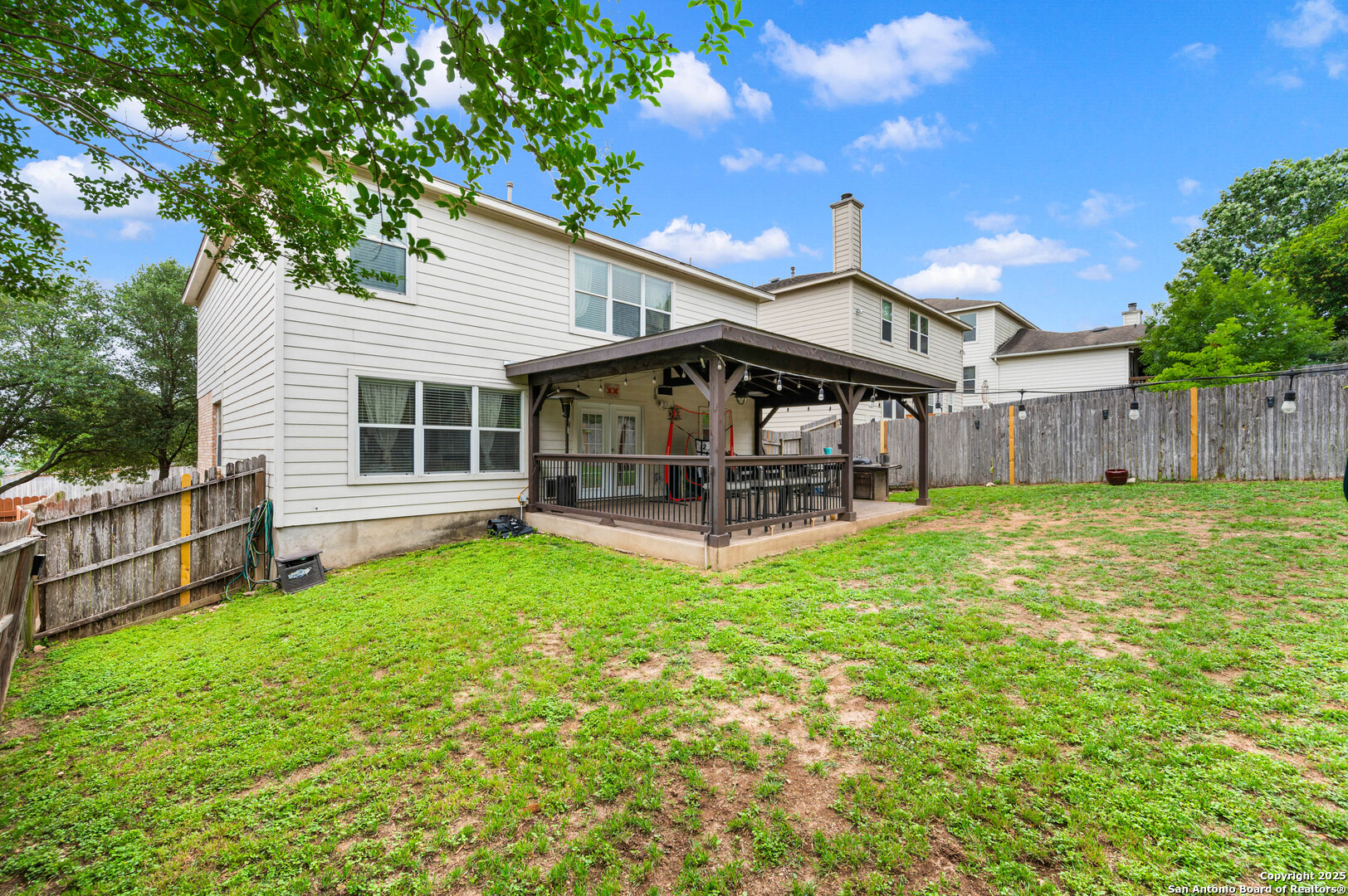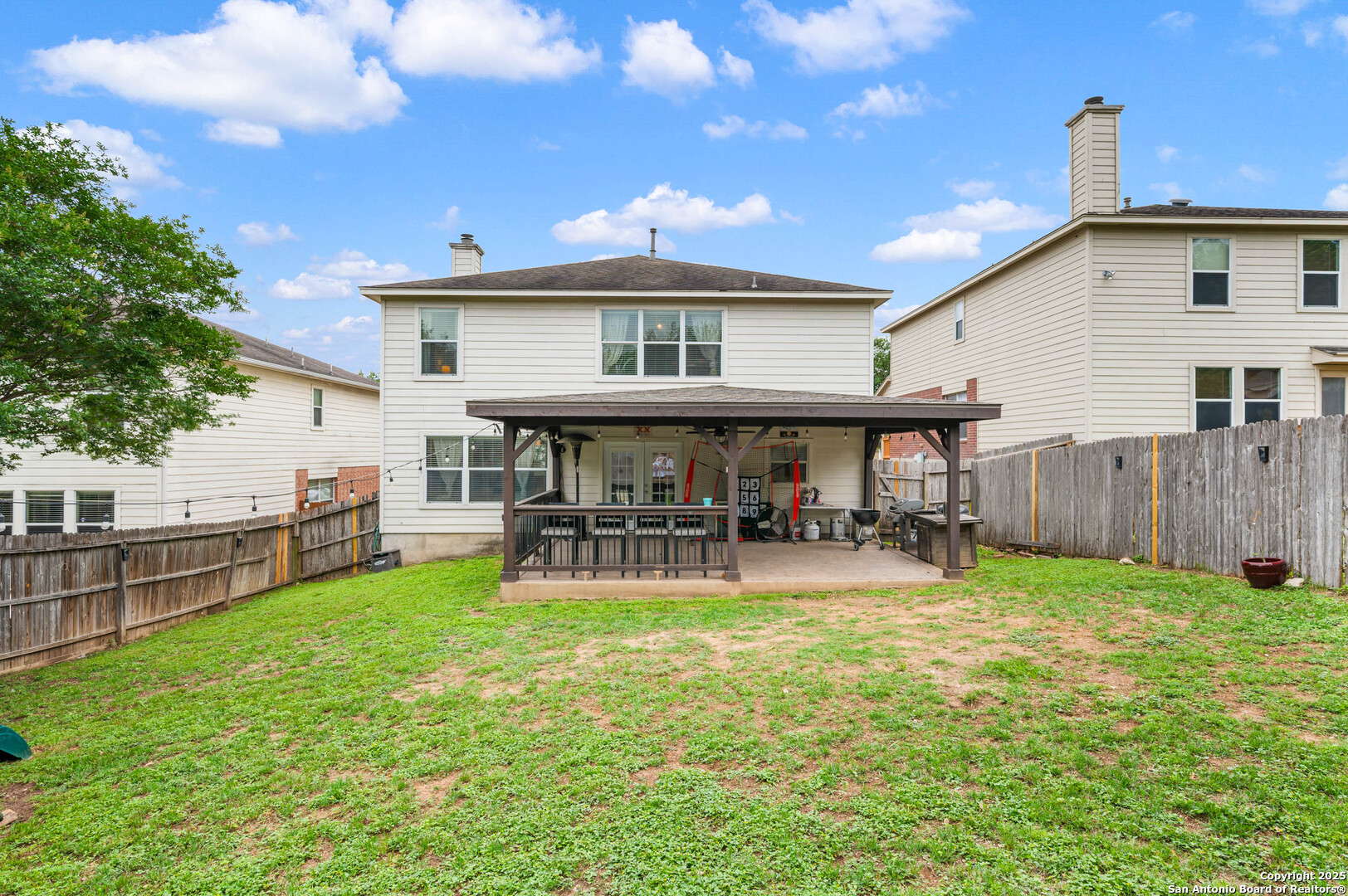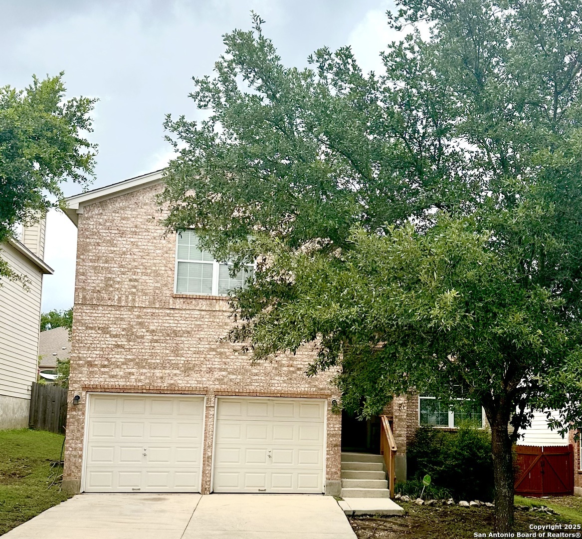 Step into this inviting 3-bedroom, 2.5-bath home nestled in Bulverde Village. The open-concept main floor features porcelain tile, two living areas, a cozy gas fireplace, and a spacious kitchen with abundant counter space-ideal for both daily living and entertaining. Upstairs, you'll find all bedrooms along with a versatile game room or additional living area. The oversized primary suite boasts dual walk-in closets, a double vanity, and a relaxing garden tub. Secondary bedrooms are well-sized and include walk-in closets for ample storage. Enjoy outdoor living year-round on the large covered patio-perfect for entertaining. Neighborhood amenities include a community pool and park. Located in NEISD.