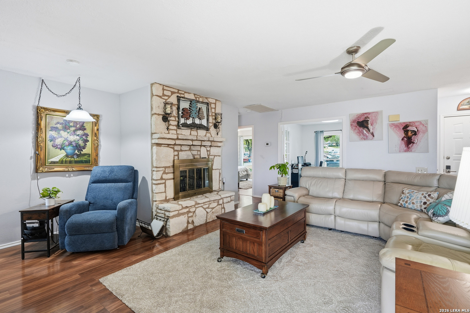 EXCELLENT OPPORTUNITY to live in this 55+ gated community with 24-hour guard on duty! BEAUTIFULLY MAINTAINED AND UPDATED home in a quiet cul-de-sac PRICED TO SELL***GORGEOUS kitchen with custom pull-out cabinets, high-end stainless appliances, Refrigerator included!***2 large bedrooms with 17' x 5.5' walk-through DREAM CLOSET with custom built-ins***Additional Study w/ FRENCH DOORS***SPACIOUS, open floor plan with separate dining room***Cozy, WOODBURNING fireplace***Large covered patio with AWESOME VIEW overlooks green space***ALL NEW, ENERGY-EFFICIENT ANDERSON WINDOWS IN 2024!!! ENJOY all the neighborhood amenities, including LAWN MAINTENANCE AND IRRIGATION, 24 hour guard on duty, community lodge with pool, billiard room, library, craft room, exercise room and a spot for your RV! Plenty of activities to enjoy!!! Come join a WELCOMING and ACTIVE neighborhood at an AMAZING PRICE!