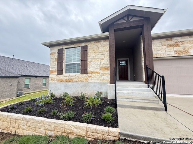 Beautiful single-story home located in the exclusive gated community of Cibolo Canyon Monte Verde. This 3-bedroom, 2-bath residence offers 2,010 square feet of thoughtfully designed living space and a desirable three-car garage. The open-concept floor plan provides spacious living and dining areas, ideal for both everyday living and entertaining. Generously sized bedrooms offer comfort and privacy, while the primary suite serves as a relaxing retreat. Enjoy the security and tranquility of a gated neighborhood with convenient access to shopping, dining, and outdoor recreation. Added features are a water softener system and gutters. Large backyard overlooking the JW Marriott Hill Country Resort and Spa, with ample space for a shed, greenhouse, or playground. Centrally located, easy access to 281 and 1604. Short drive to HEB+, Walmart, restaurants, and gas stations. Minutes away from San Antonio Airport, Randolph AFB, Fort Sam Houston, Tower of America, Riverwalk, Alamo, AT&T Center, and museums. MUST SEE!