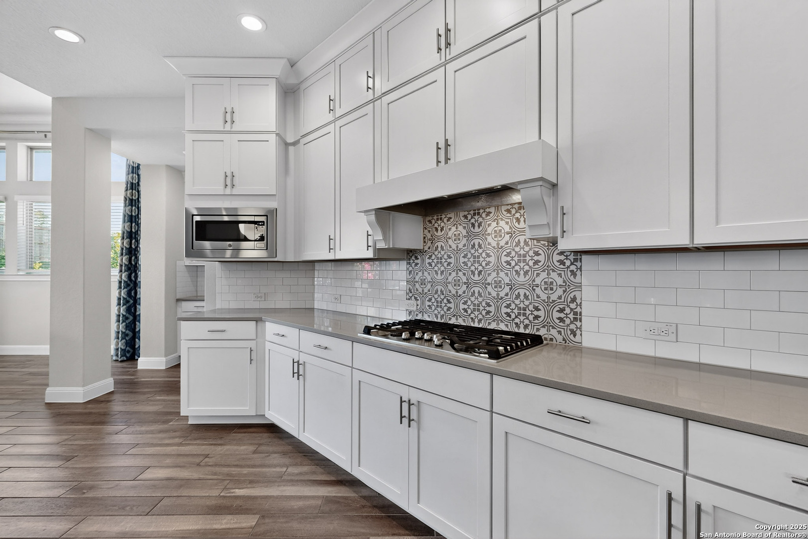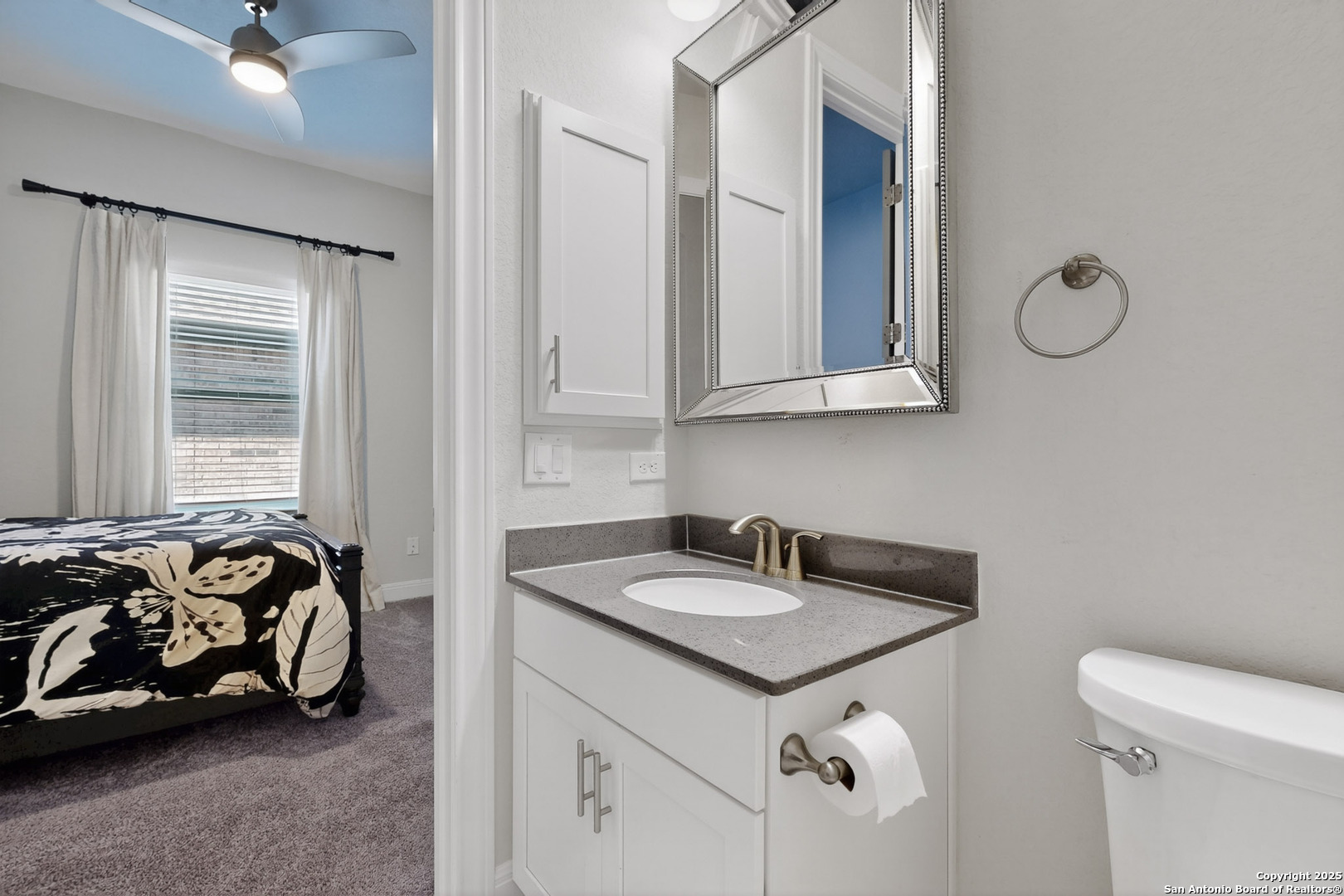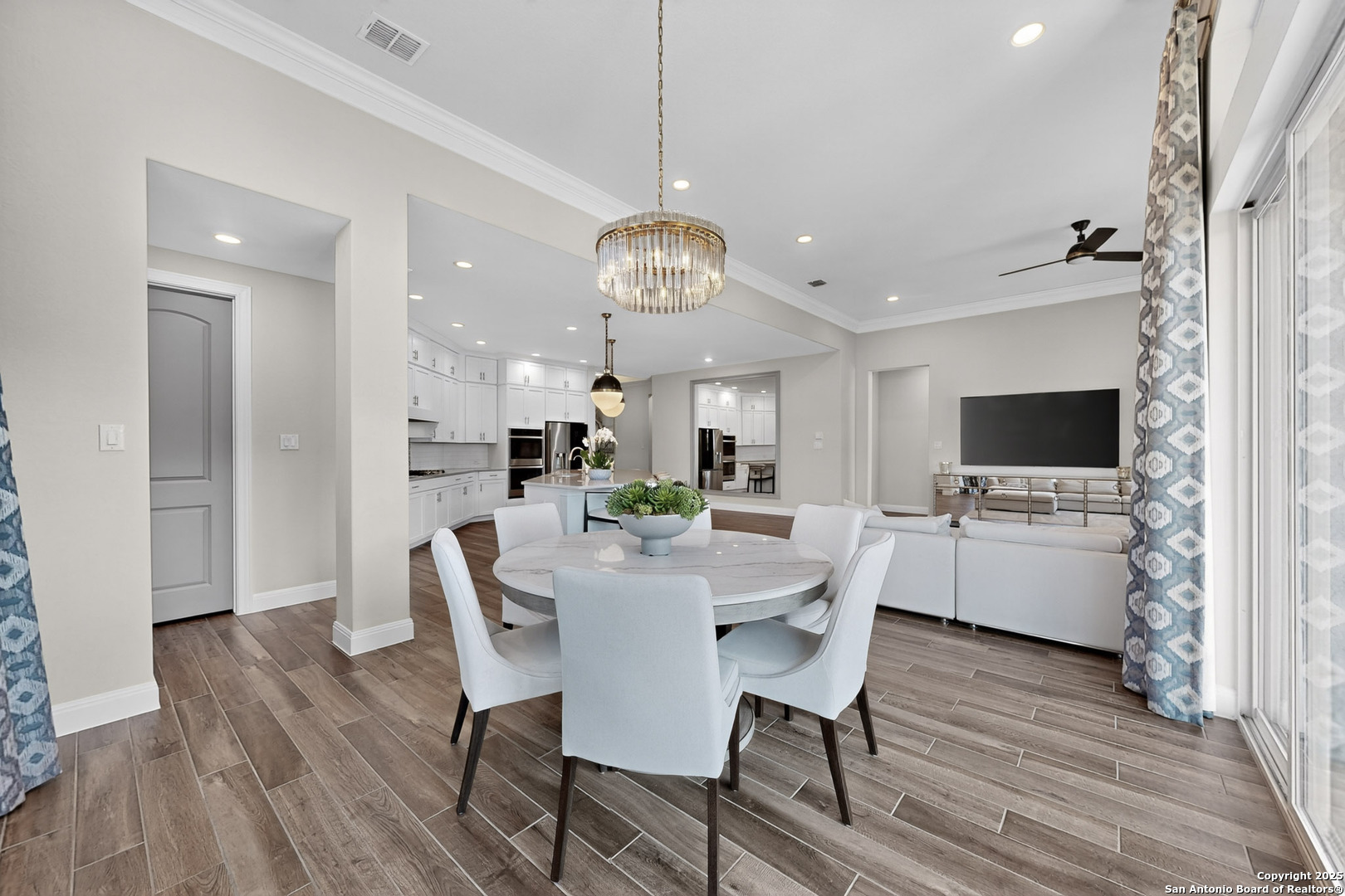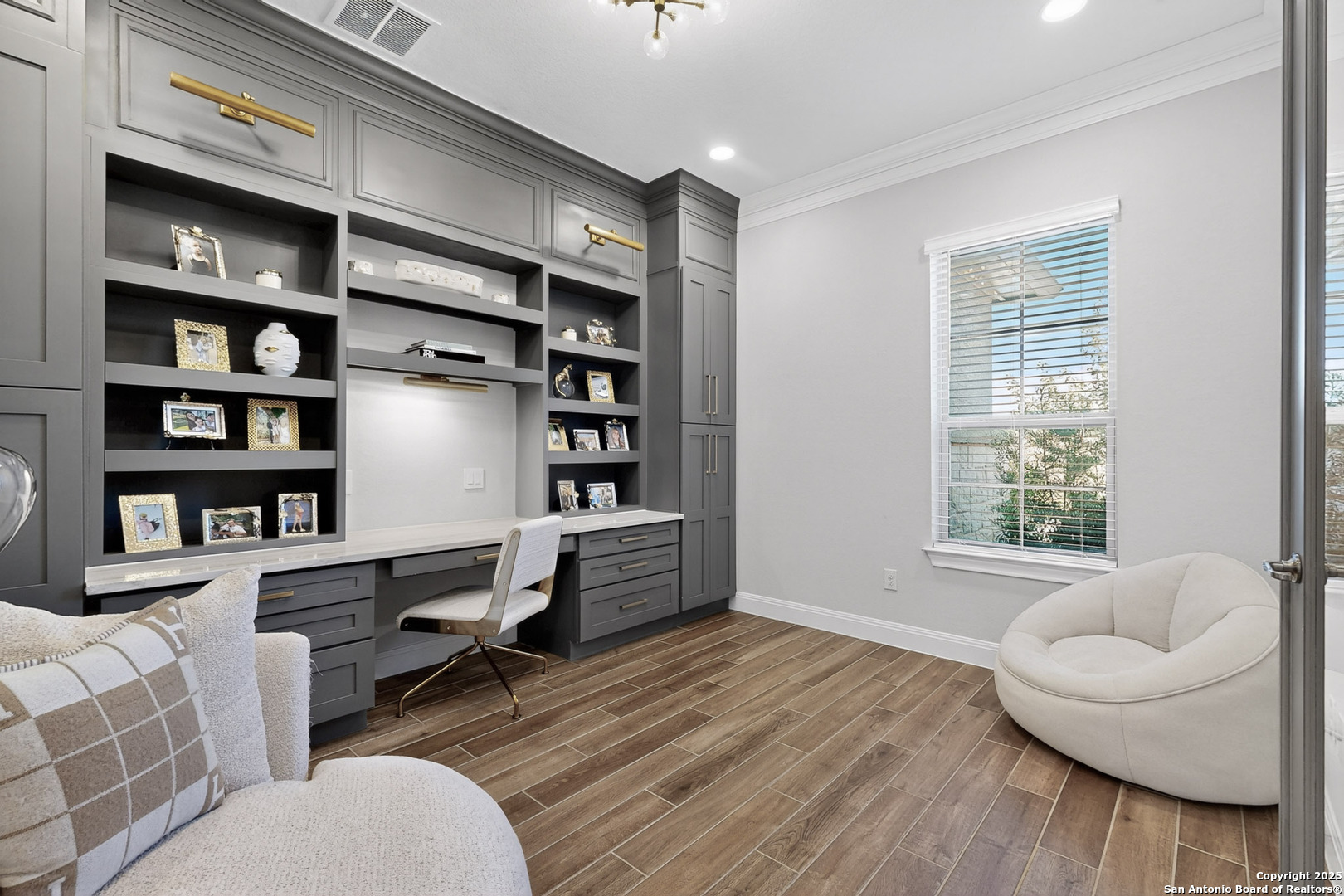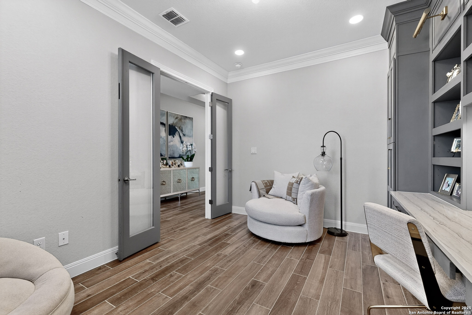 Is there a 4-bed home in Shavano Highlands with ensuite baths and office space? Yes! And this 2020 David Weekley home delivers it all in 3217 sqft. Single-story, stylish, and spacious, it offers comfort and flexibility for multigenerational living or hosting guests. Built with purpose, this one-story home includes four bedrooms, each with its own ensuite bath plus a powder room. A smart flex room connects two secondary suites, perfect for a playroom, media zone, or extra living space. The open layout flows from the stone-and-stucco exterior into light-filled common areas with high ceilings, wood floors, and an upgraded gas fireplace. The private study features built-in cabinetry for a polished work-from-home setup. The primary suite stuns with wood flooring and custom walk-in closets. Custom drapes elevate the living and dining rooms and stay with the home, along with the entry mirror and mirrors in the primary bedroom. Kitchen highlights include an island, walk-in pantry, and casual bar seating. Backyard trampoline to be removed, and yard will be freshly sodded before closing. Cornerstone Christian is walkable, and Blattman Elementary is in the acclaimed Northside ISD. With controlled neighborhood access and scenic trails, Shavano Highlands offers rare privacy just north of 1604 near shopping and dining. Garage fits two cars. Fridge negotiable. HOA $1,160/year. Taxes: $18,059.67.