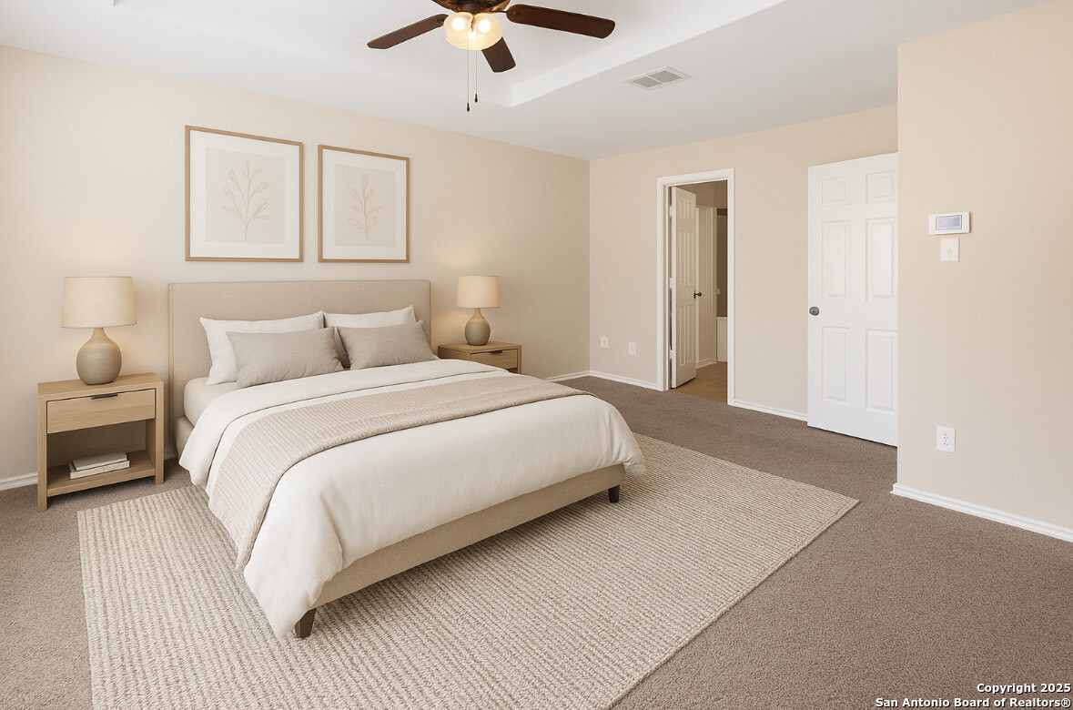 BEAUTIFUL HOME IN BULVERDE VILLAGE! This spacious 4-bedroom, 2.5-bath home offers an open and inviting floor plan with plenty of natural light. The primary suite is conveniently located downstairs and features a large walk-in closet, double vanity, garden tub, and separate shower. The kitchen boasts overlooks the dining and living areas-perfect for entertaining! Upstairs includes a generous family room and private office/study space. Enjoy the community amenities including parks, playgrounds, and sports courts. Located within the highly rated NEISD school district-Cibolo Green Elementary, Hill Middle, and Johnson High. Convenient to TPC Parkway, shopping, and restaurants. This move-in ready home is a must see!
