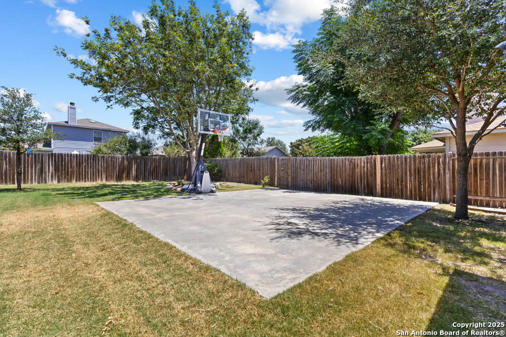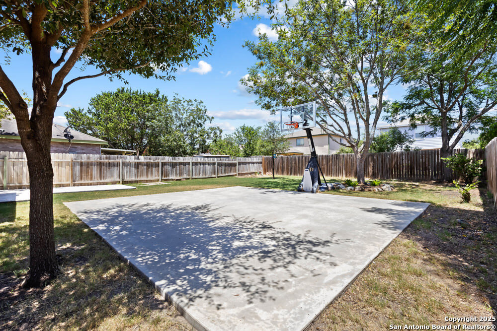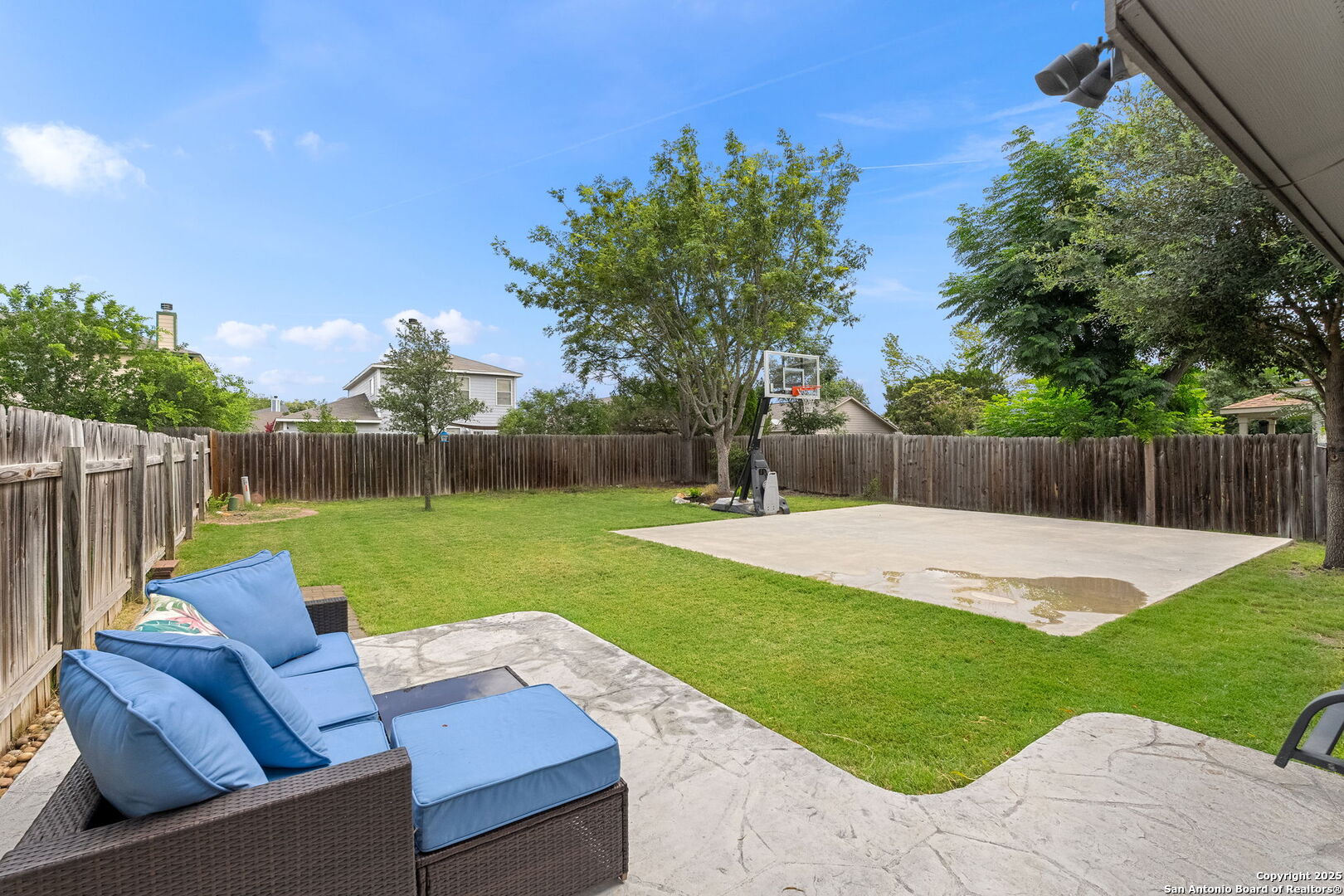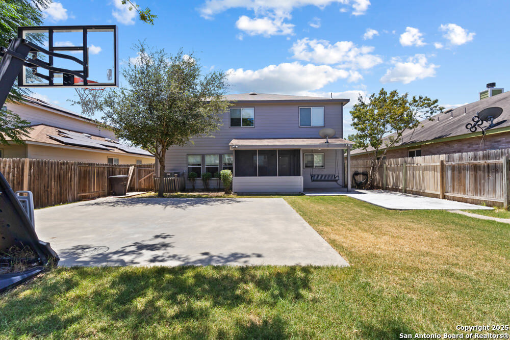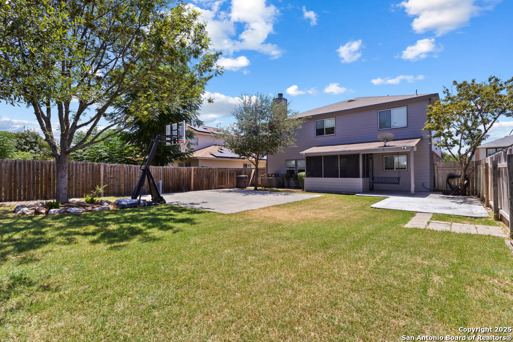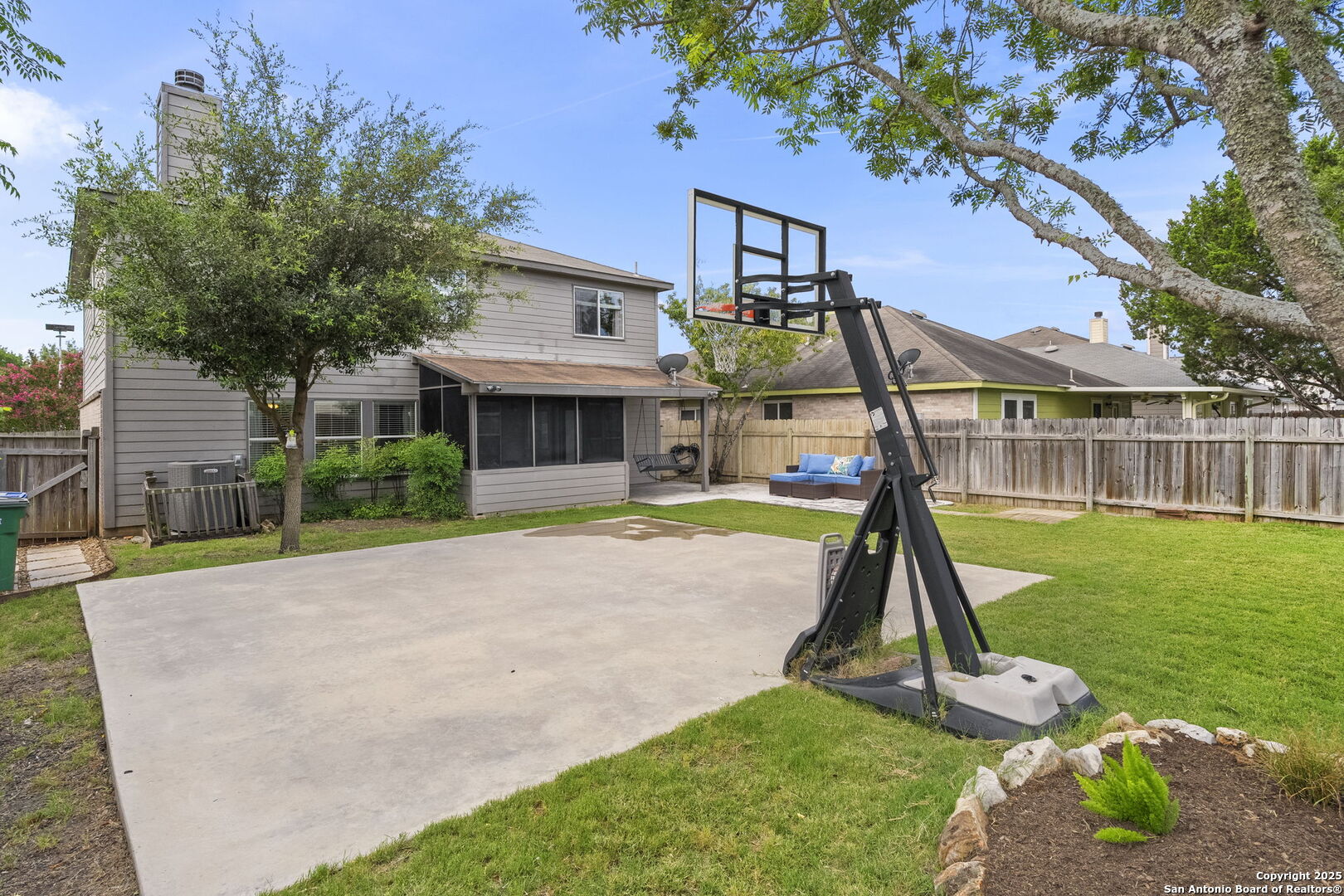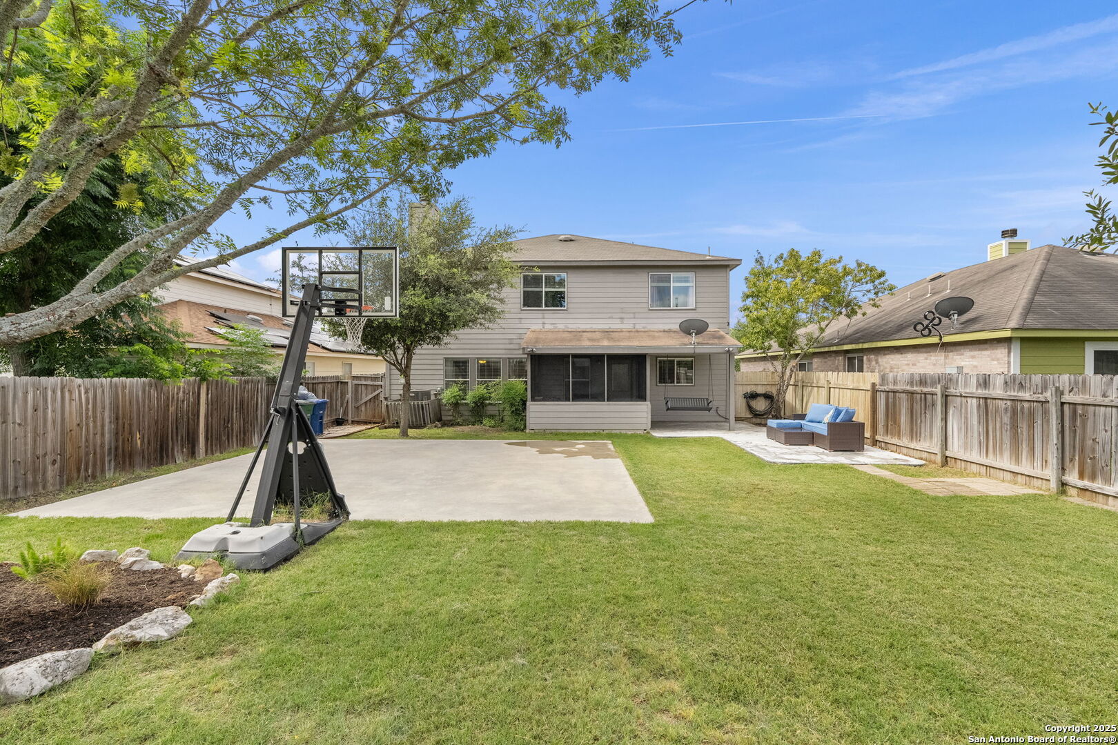 This fantastically maintained two-story home in San Antonio's desirable North East ISD offers the perfect blend of comfort and convenience. Ideally located off Bulverde Pkwy, the home is within walking distance to both the local elementary and middle schools, with Johnson High School just 2.5 miles away. The exterior has just been freshly painted and gutters added. Step inside to discover neutral paint tones and a spacious layout enhanced by new flooring installed throughout the entire home in 2021. Additional updates include a new AC unit (2023) and a Water Softener. The backyard is a standout feature-perfect for entertaining with a screened-in porch, covered patio with extended seating, basketball court, and plenty of green space to enjoy. Don't miss your chance to own this move-in ready gem in a prime San Antonio location!