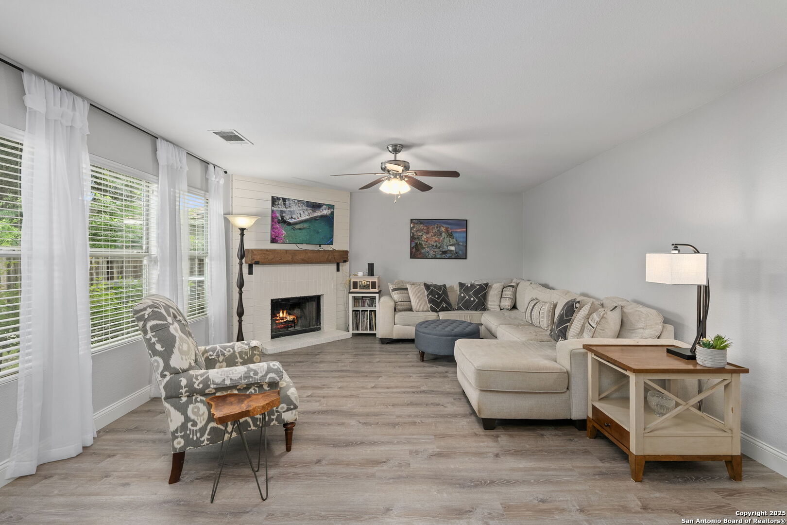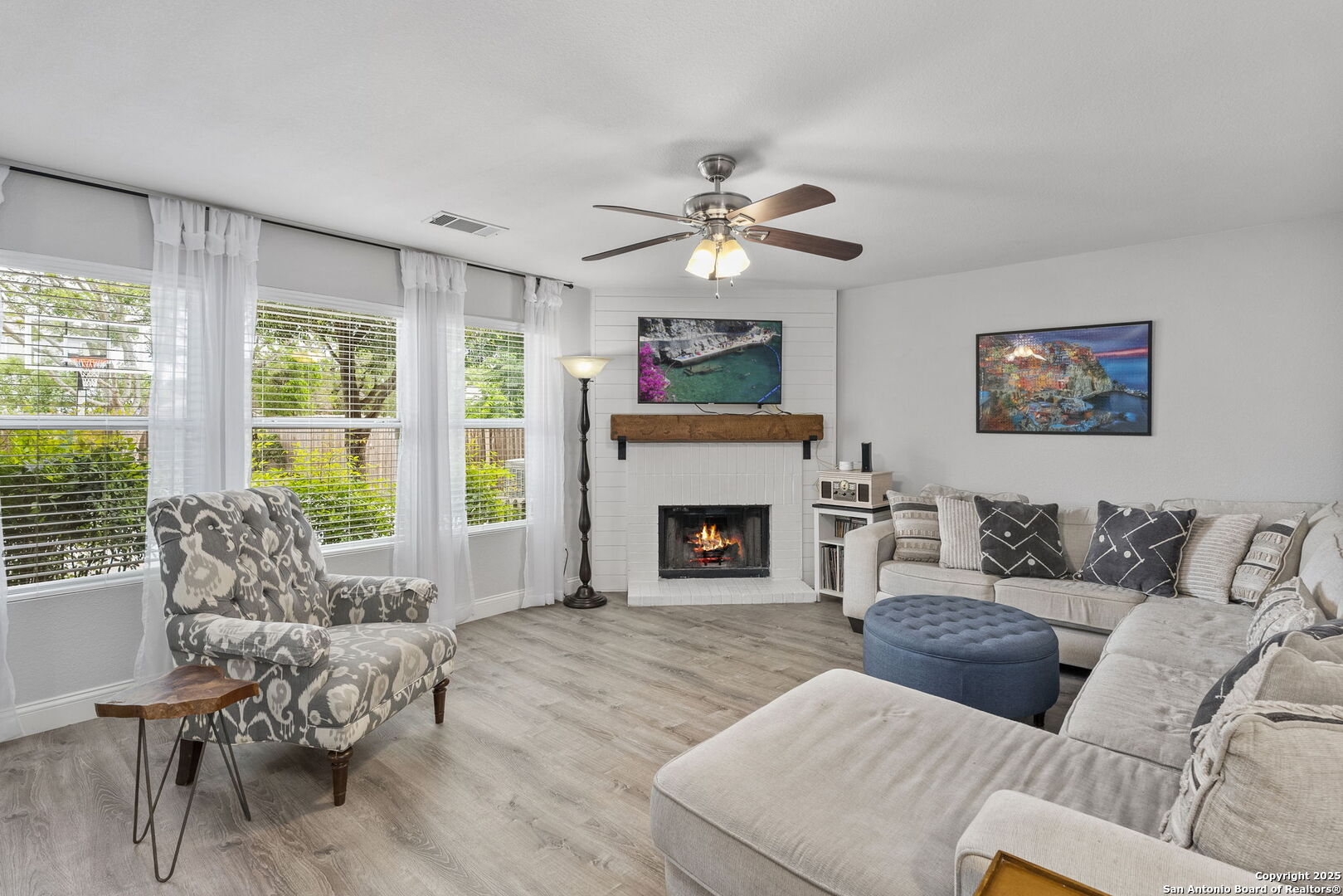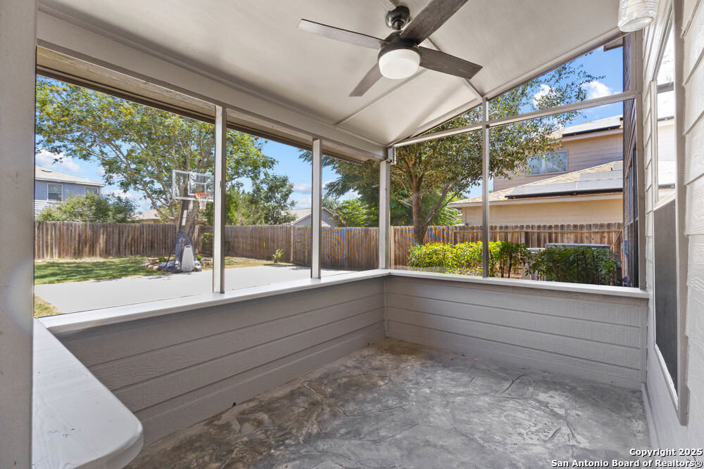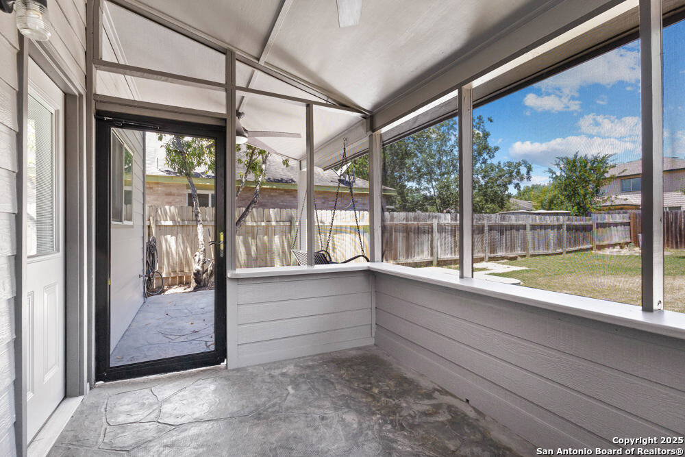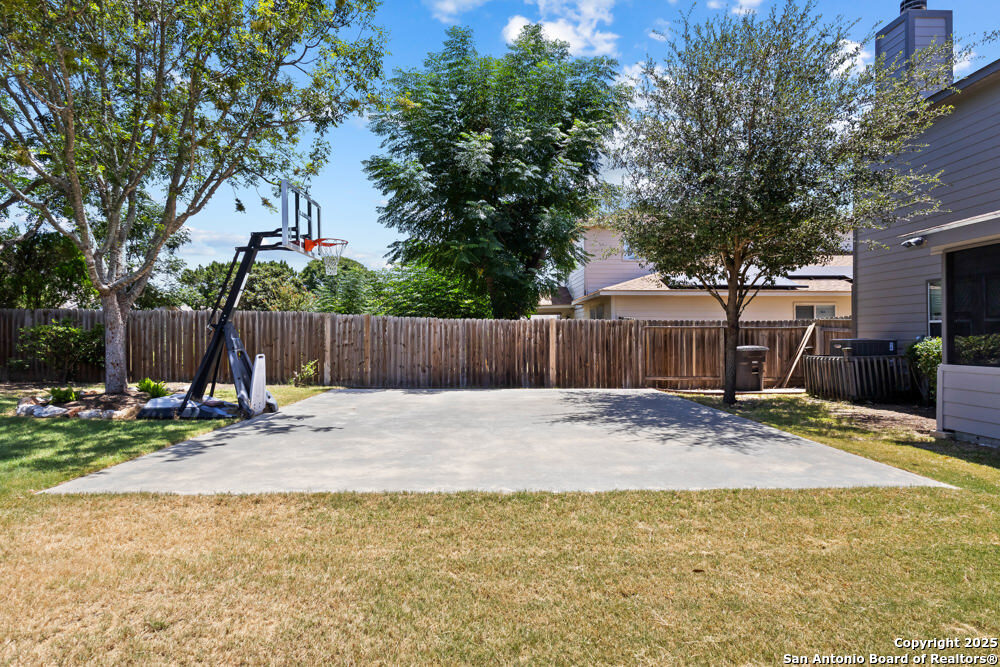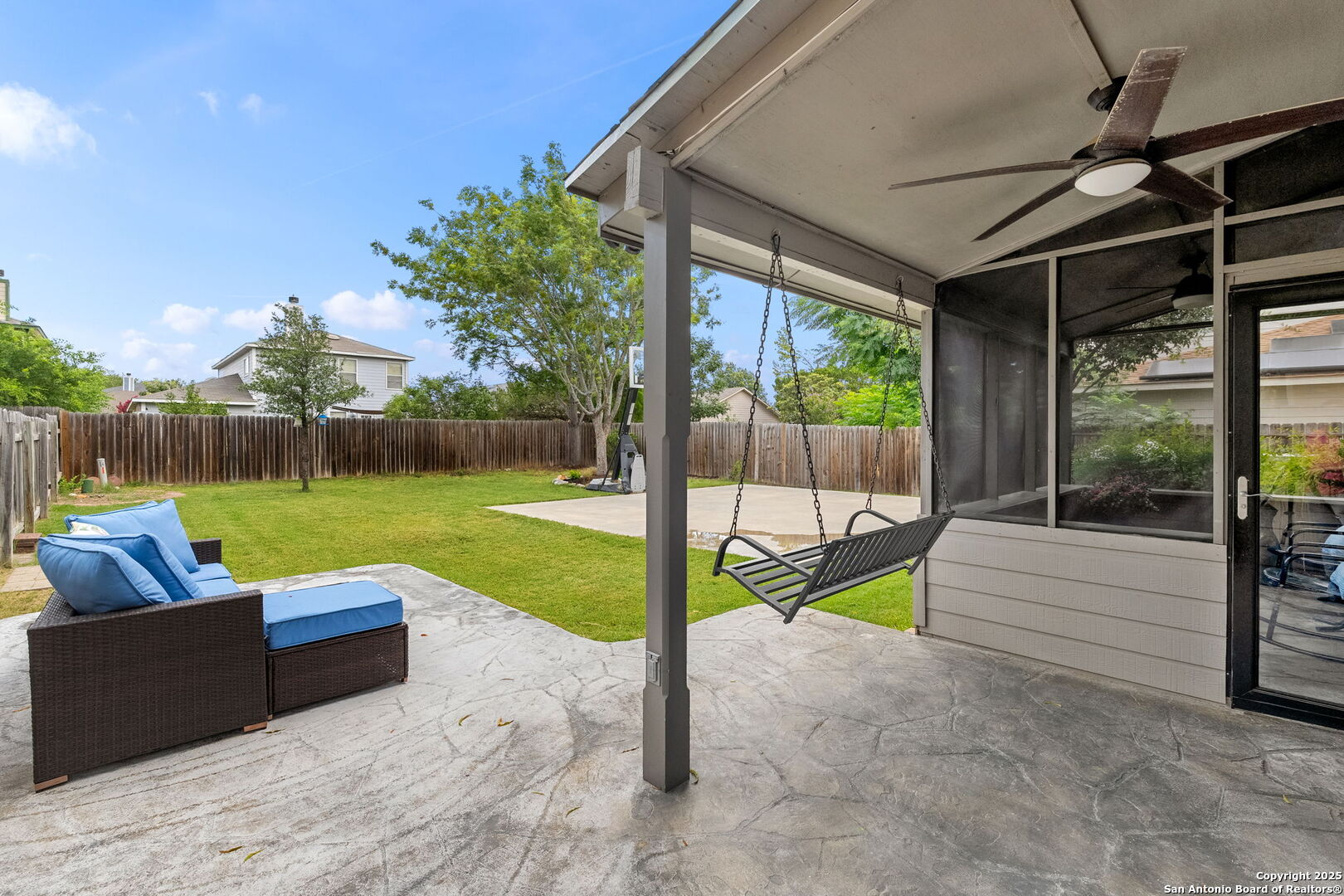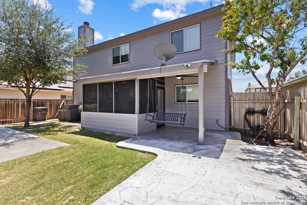 This fantastically maintained two-story home in San Antonio's desirable North East ISD offers the perfect blend of comfort and convenience. Ideally located off Bulverde Pkwy, the home is within walking distance to both the local elementary and middle schools, with Johnson High School just 2.5 miles away. The exterior has just been freshly painted and gutters added. Step inside to discover neutral paint tones and a spacious layout enhanced by new flooring installed throughout the entire home in 2021. Additional updates include a new AC unit (2023) and a Water Softener. The backyard is a standout feature-perfect for entertaining with a screened-in porch, covered patio with extended seating, basketball court, and plenty of green space to enjoy. Don't miss your chance to own this move-in ready gem in a prime San Antonio location!
