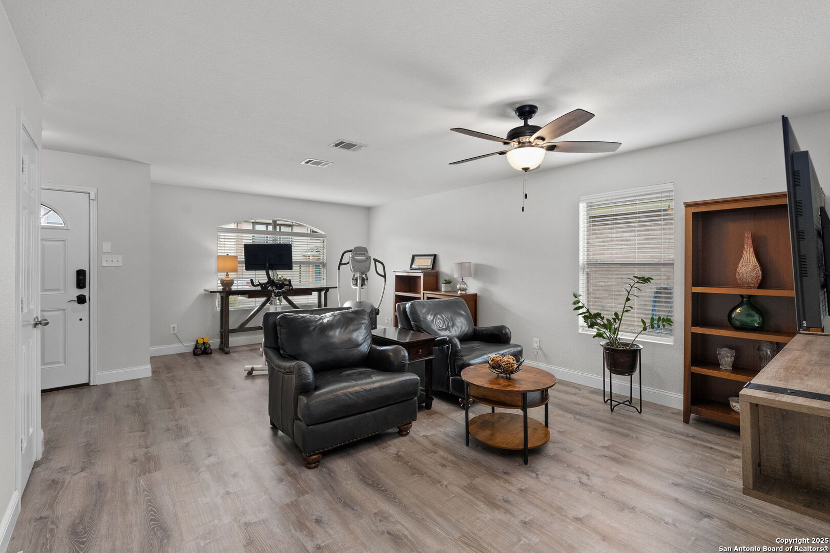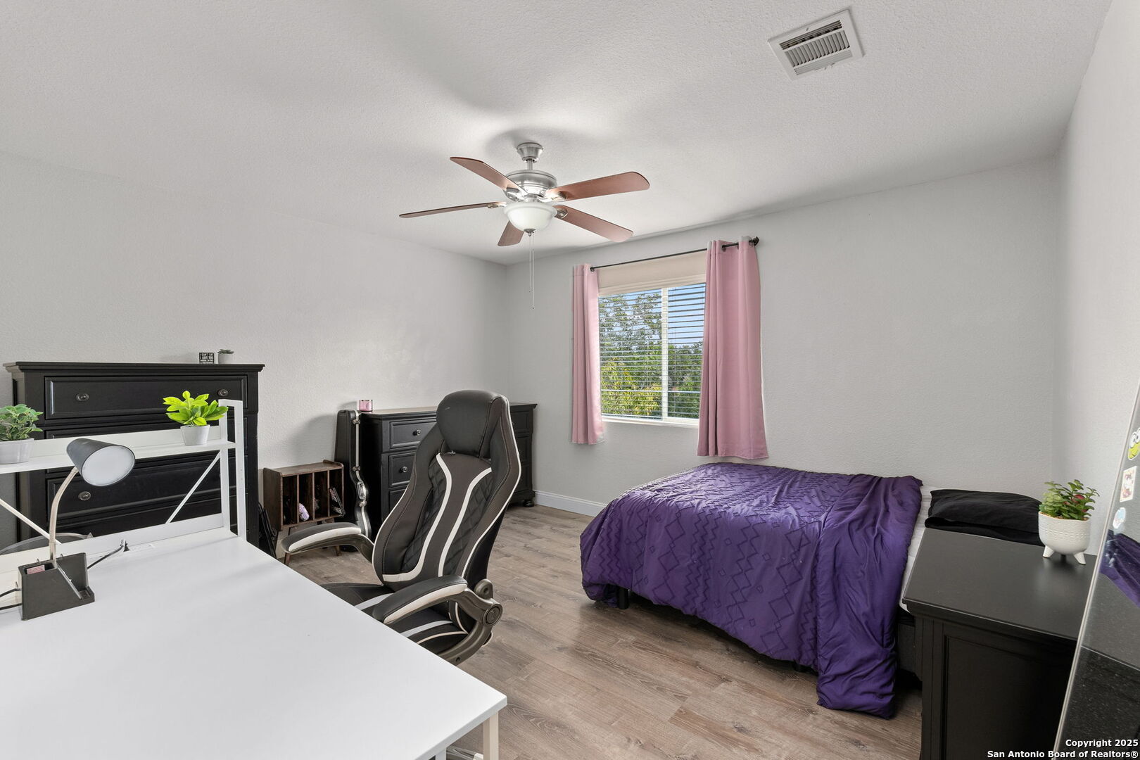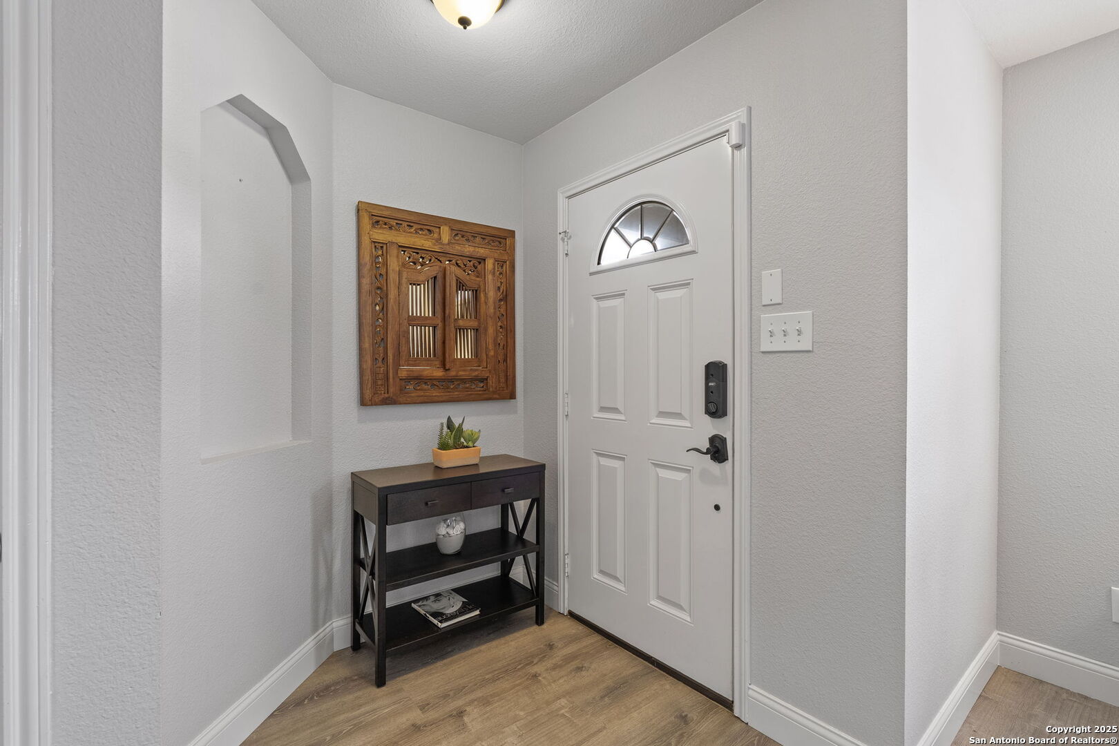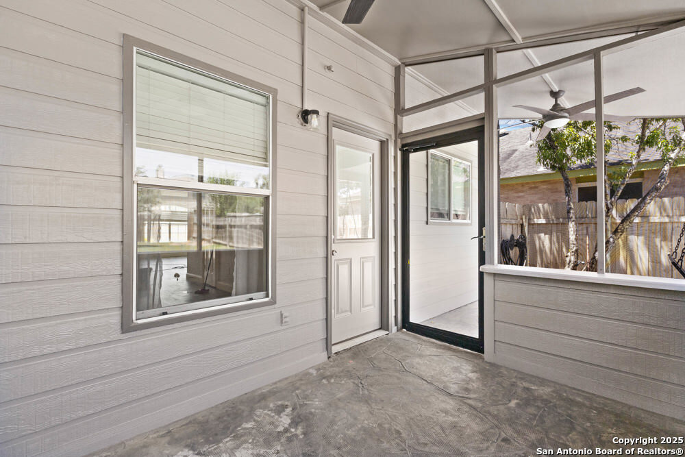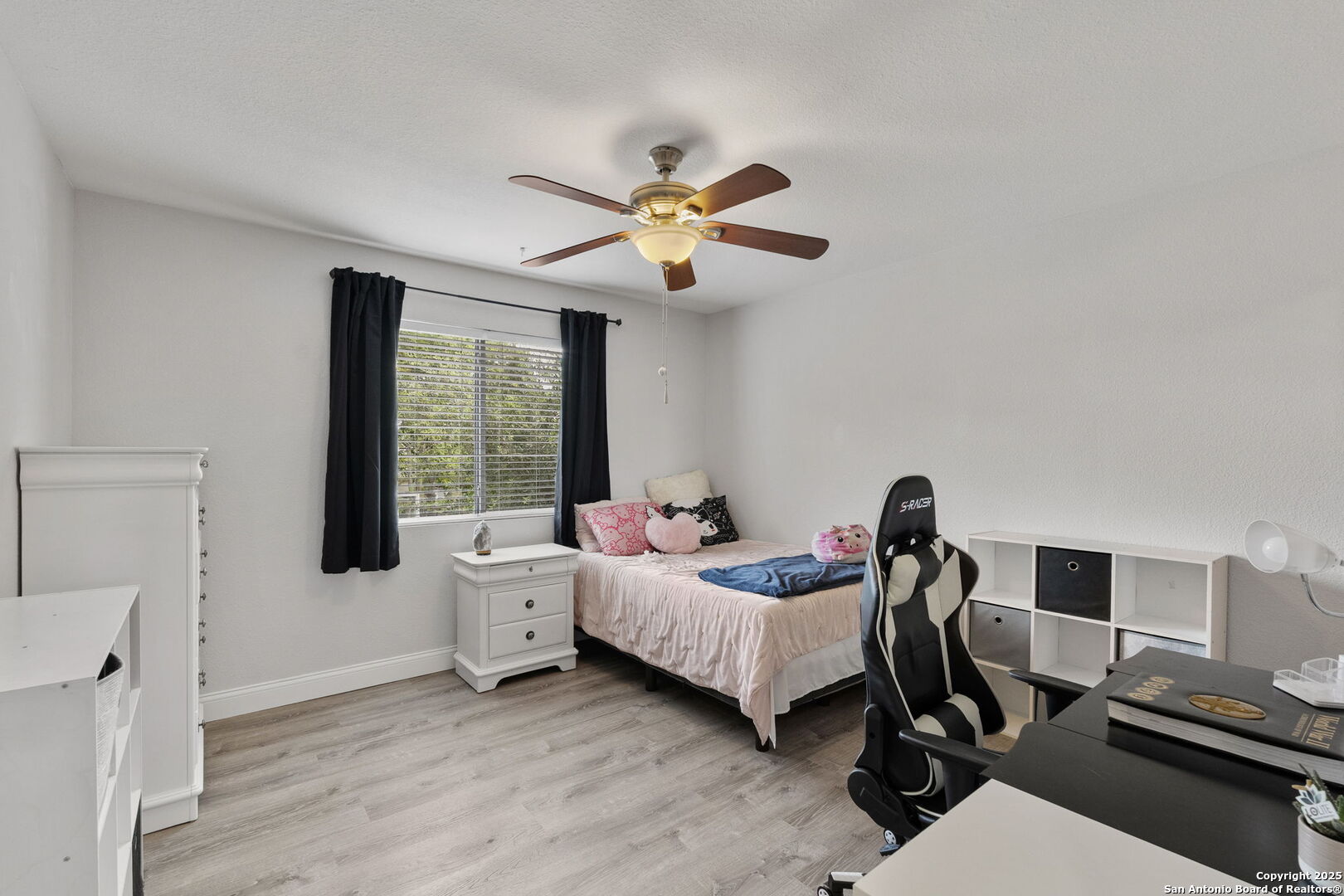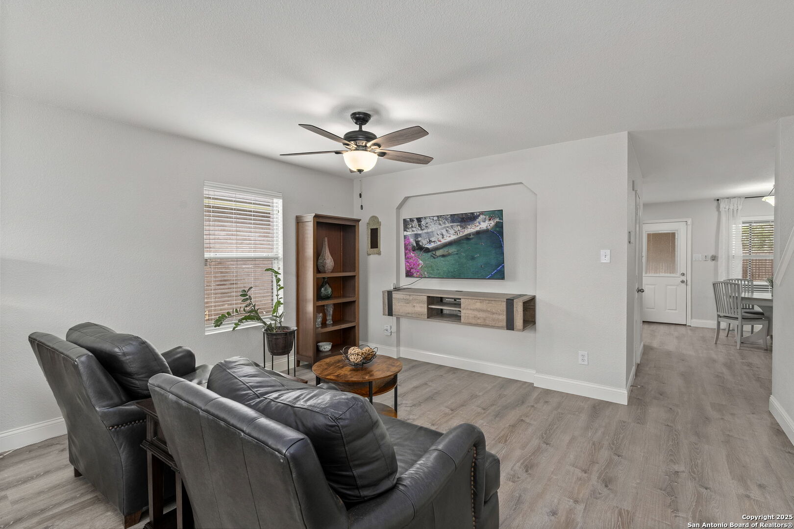 This fantastically maintained two-story home in San Antonio's desirable North East ISD offers the perfect blend of comfort and convenience. Ideally located off Bulverde Pkwy, the home is within walking distance to both the local elementary and middle schools, with Johnson High School just 2.5 miles away. The exterior has just been freshly painted and gutters added. Step inside to discover neutral paint tones and a spacious layout enhanced by new flooring installed throughout the entire home in 2021. Additional updates include a new AC unit (2023) and a Water Softener. The backyard is a standout feature-perfect for entertaining with a screened-in porch, covered patio with extended seating, basketball court, and plenty of green space to enjoy. Don't miss your chance to own this move-in ready gem in a prime San Antonio location!