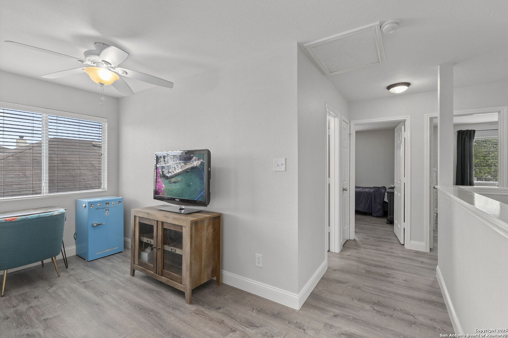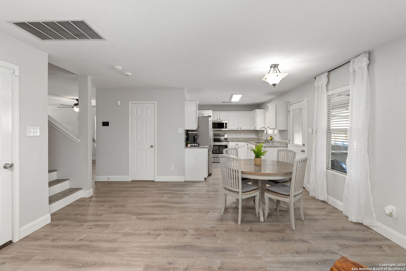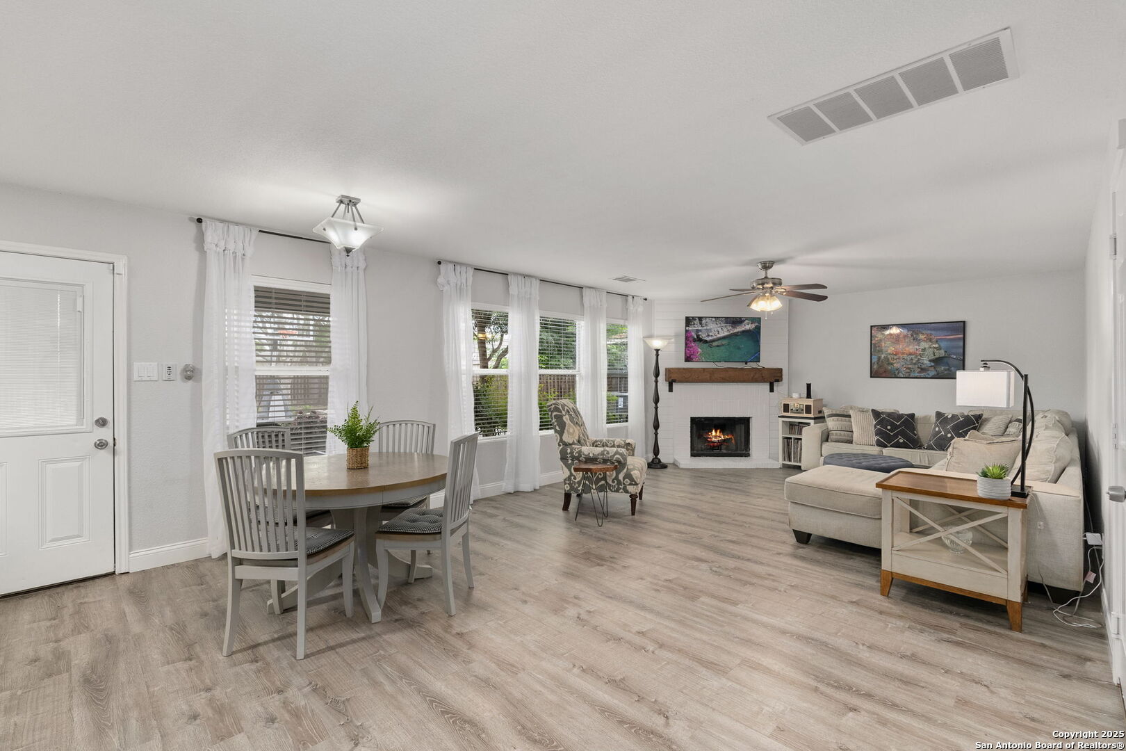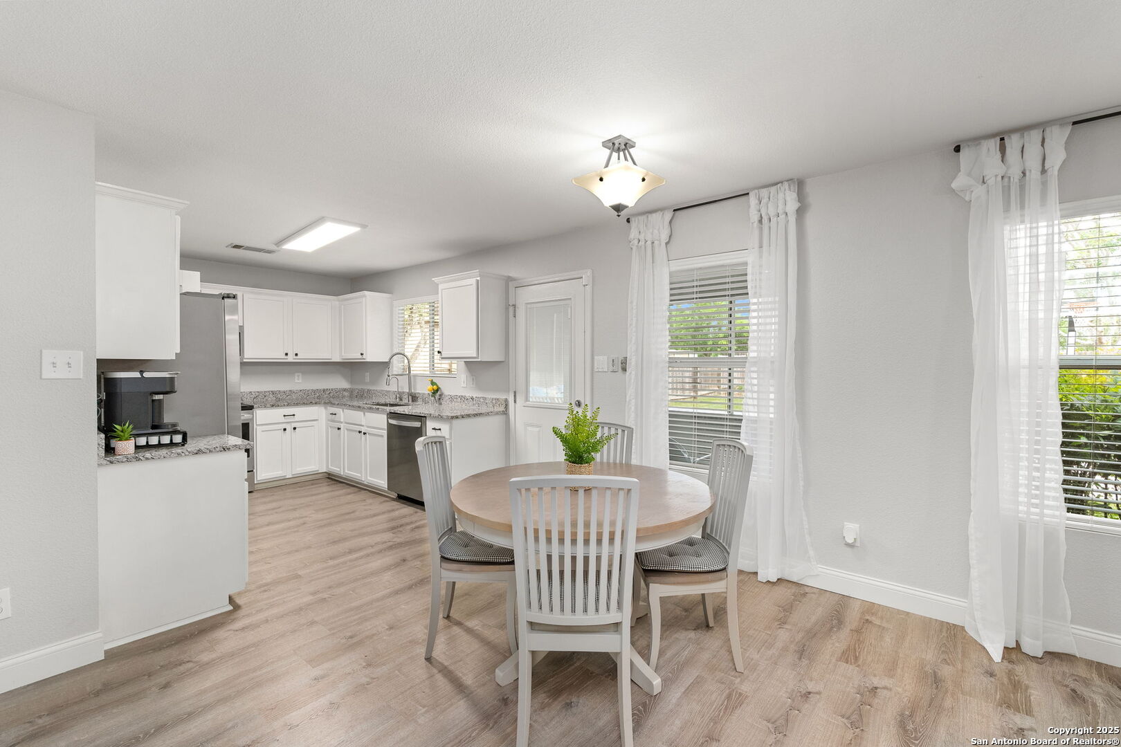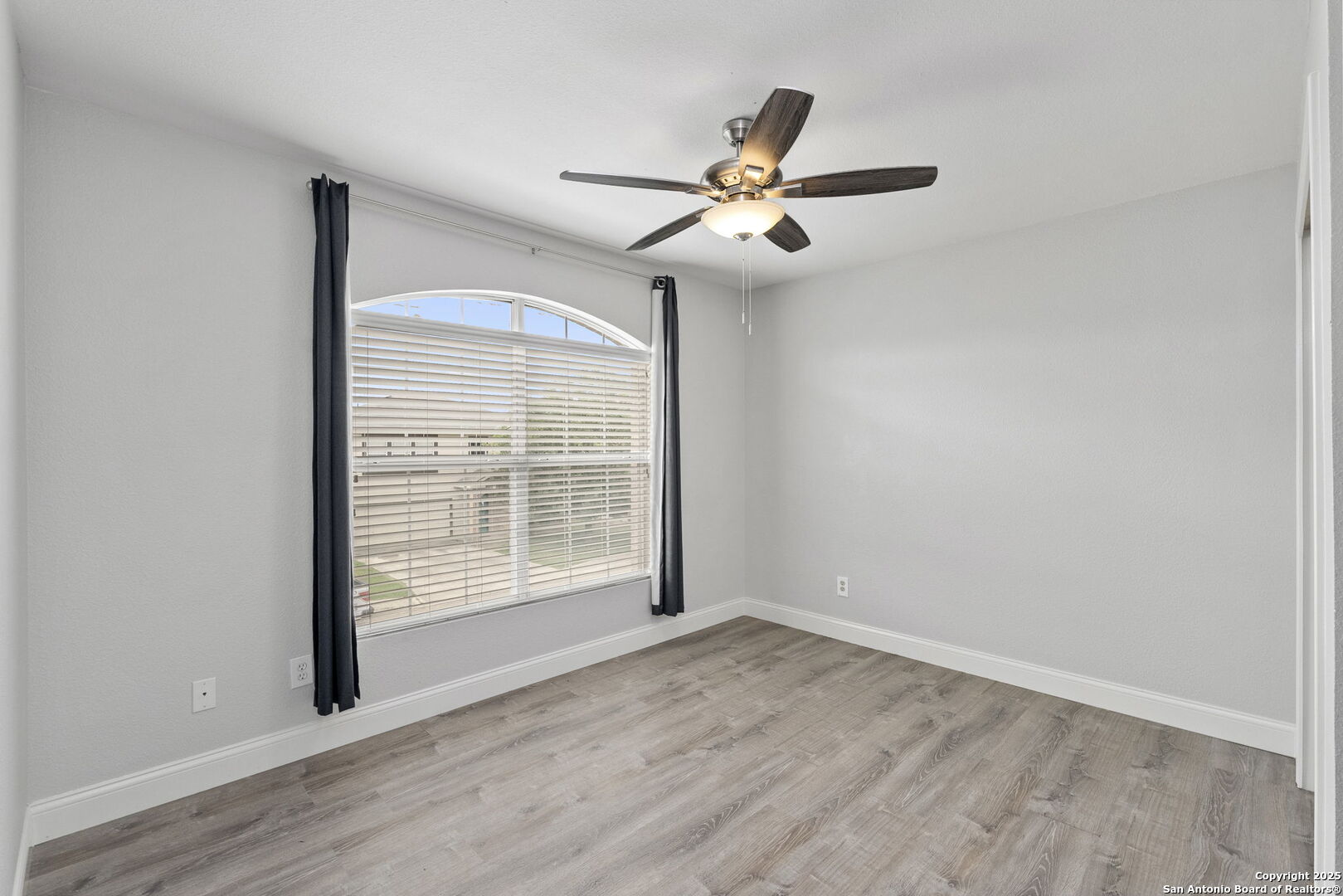This fantastically maintained two-story home in San Antonio's desirable North East ISD offers the perfect blend of comfort and convenience. Ideally located off Bulverde Pkwy, the home is within walking distance to both the local elementary and middle schools, with Johnson High School just 2.5 miles away. The exterior has just been freshly painted and gutters added. Step inside to discover neutral paint tones and a spacious layout enhanced by new flooring installed throughout the entire home in 2021. Additional updates include a new AC unit (2023) and a Water Softener. The backyard is a standout feature-perfect for entertaining with a screened-in porch, covered patio with extended seating, basketball court, and plenty of green space to enjoy. Don't miss your chance to own this move-in ready gem in a prime San Antonio location!