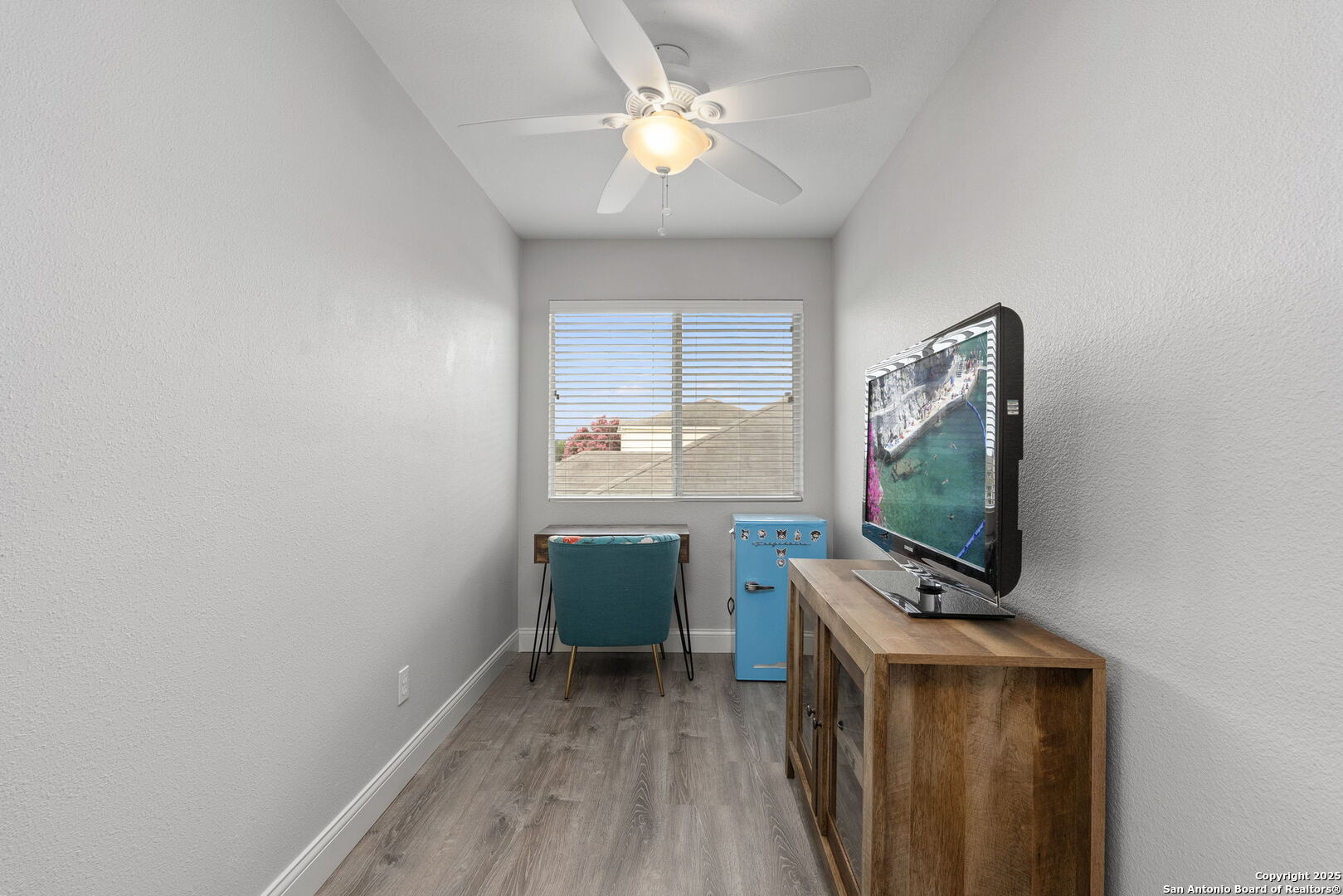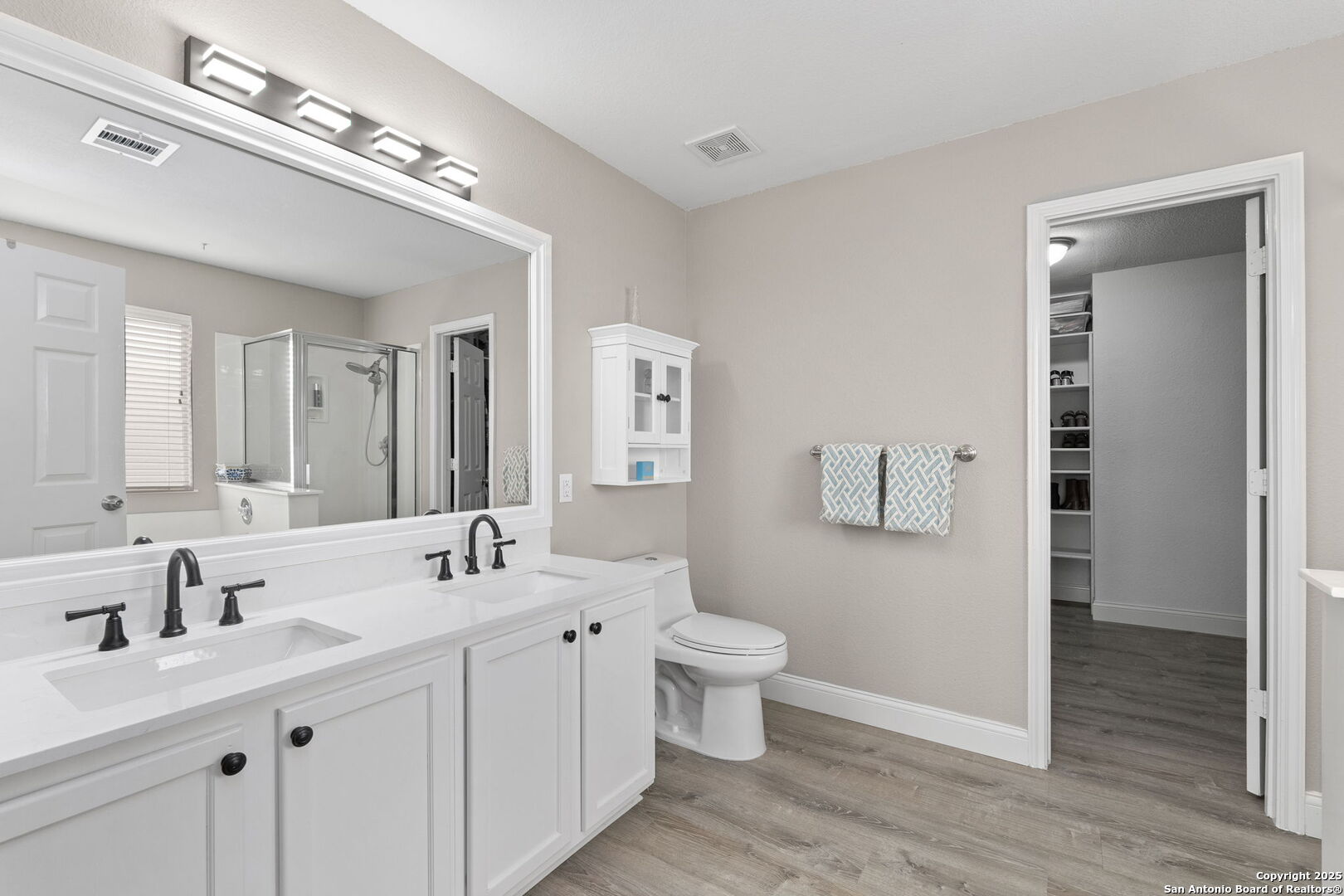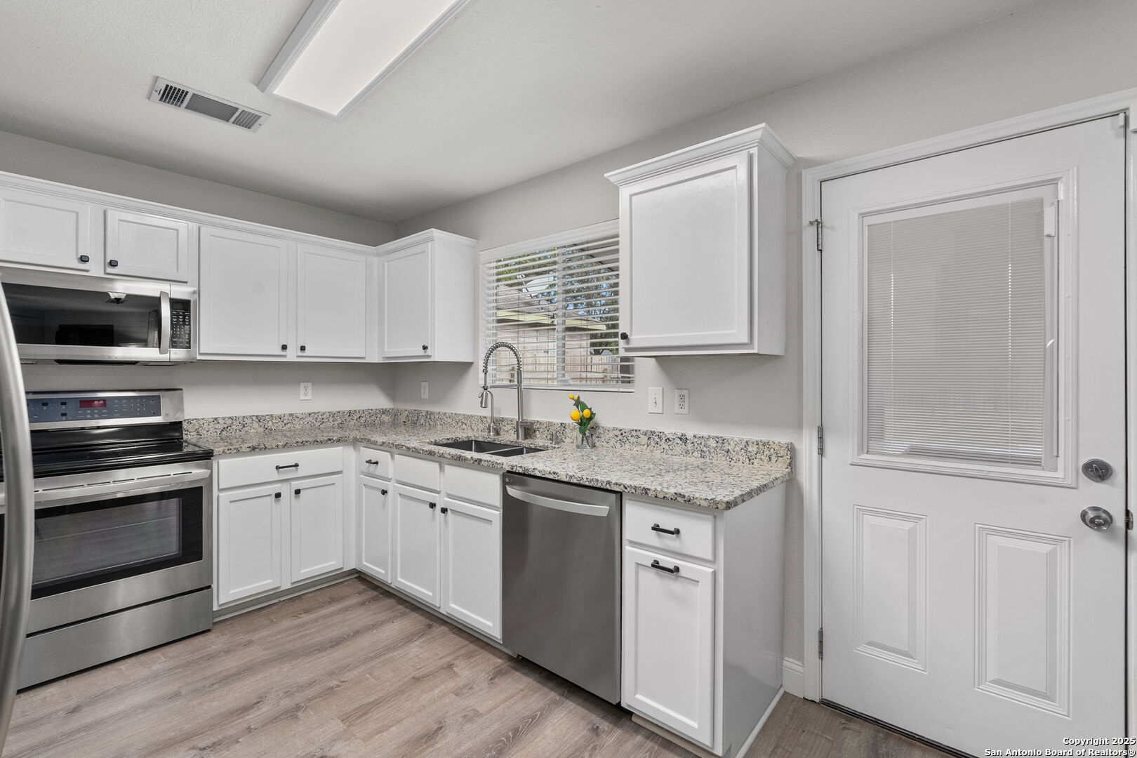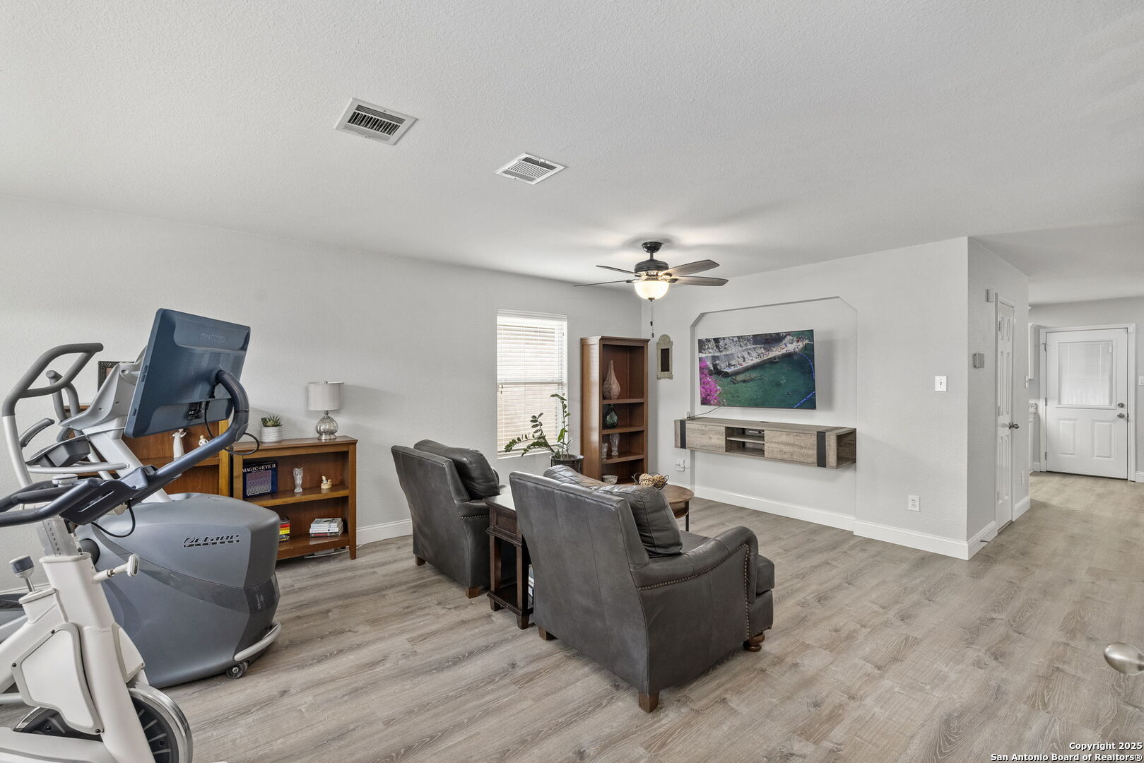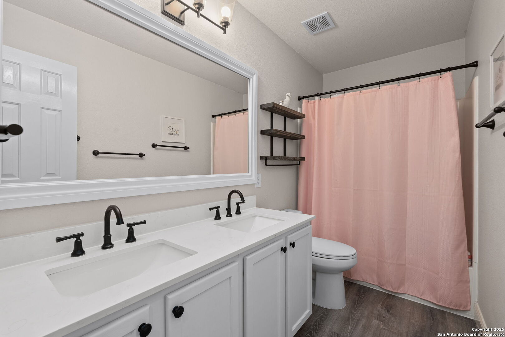 This fantastically maintained two-story home in San Antonio's desirable North East ISD offers the perfect blend of comfort and convenience. Ideally located off Bulverde Pkwy, the home is within walking distance to both the local elementary and middle schools, with Johnson High School just 2.5 miles away. The exterior has just been freshly painted and gutters added. Step inside to discover neutral paint tones and a spacious layout enhanced by new flooring installed throughout the entire home in 2021. Additional updates include a new AC unit (2023) and a Water Softener. The backyard is a standout feature-perfect for entertaining with a screened-in porch, covered patio with extended seating, basketball court, and plenty of green space to enjoy. Don't miss your chance to own this move-in ready gem in a prime San Antonio location!