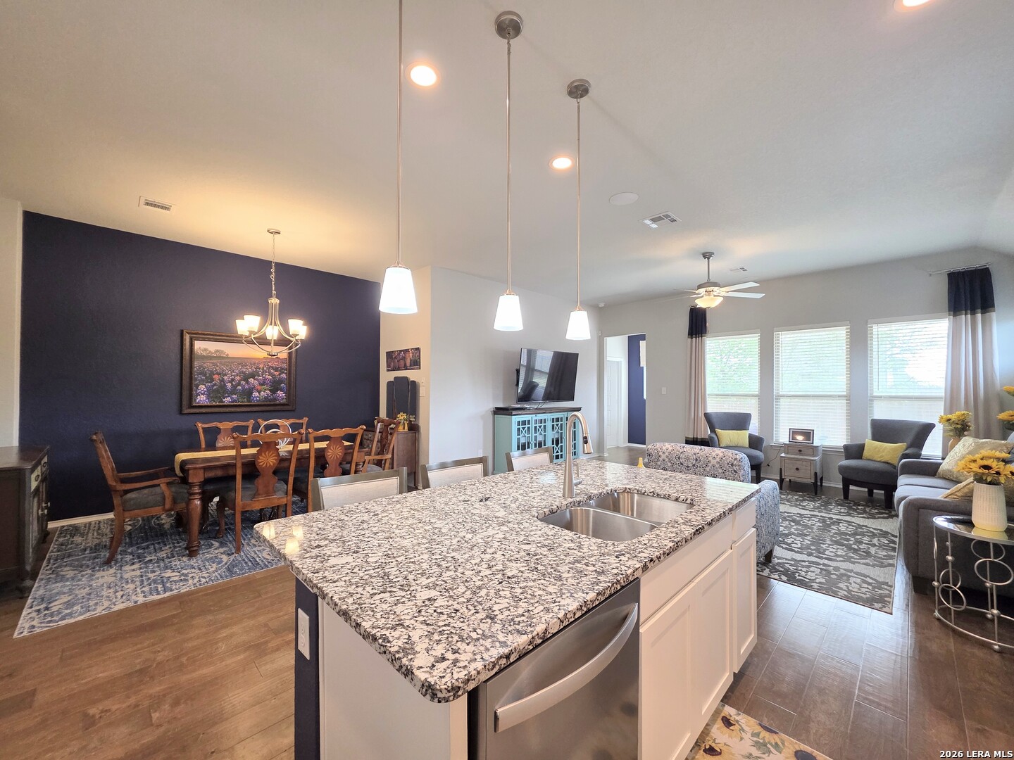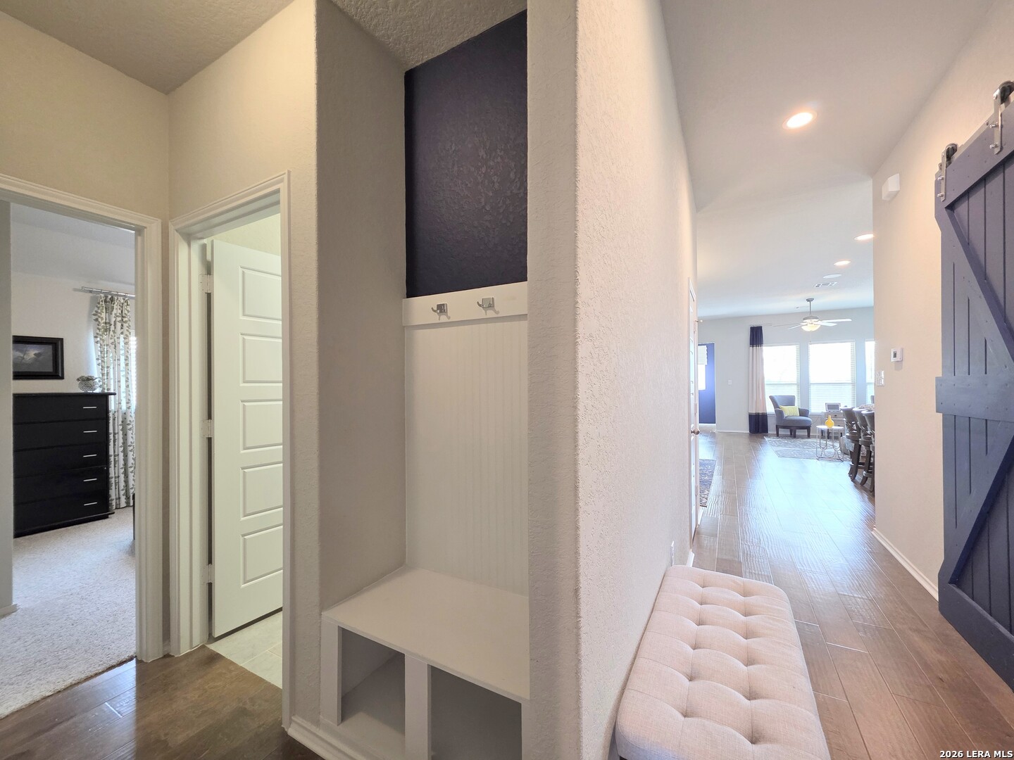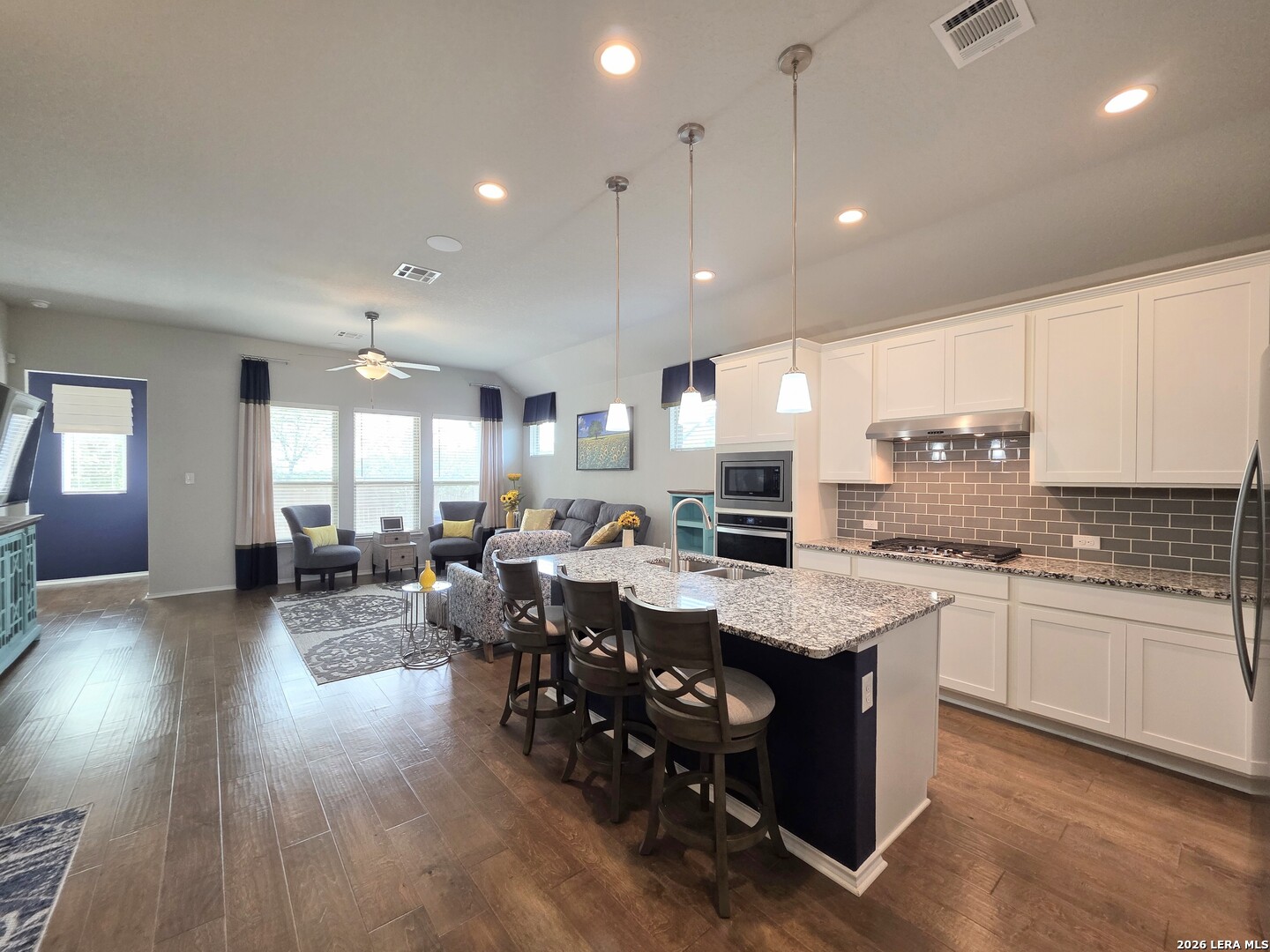 Walking distance to NBISD's newest High School (Go Dragons!), the local Middle & Elementary schools & the NEW Zipp Family Sports Park in this BOOMing part of New Braunfels, this Coventry Model Home (2019-2023) is full of a special mix of features & upgrades like no other. From the professionally landscaped & irrigated front & back yards on this large corner lot along a greenbelt, to the custom rain glass w/decorative iron front door, there is even more to impress inside, like the sliding Barn Doors to the Office/4th bedroom, the Knotty Pine accent wall in the 2nd bedroom, the handscraped hardwood floors throughout, the luxury carpet in the bedrooms, the designer draperies, the glass subway tilework in the kitchen, the gas countertop range w/ chef's quality vent, the full set of sleek stainless kitchen appliances, the popping granite countertops. the slatted accent wall in the Owner's suite, the painted accent walls in the dining room & laundry room, the Kinetico water softener system, the extra bump-out garage for enhanced storage space & more! Do not miss out on this special luxury model home! Don't Delay! Schedule your exclusive showing today!