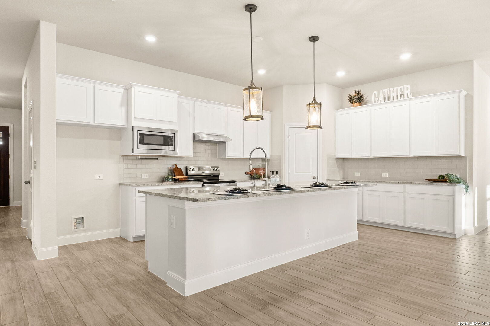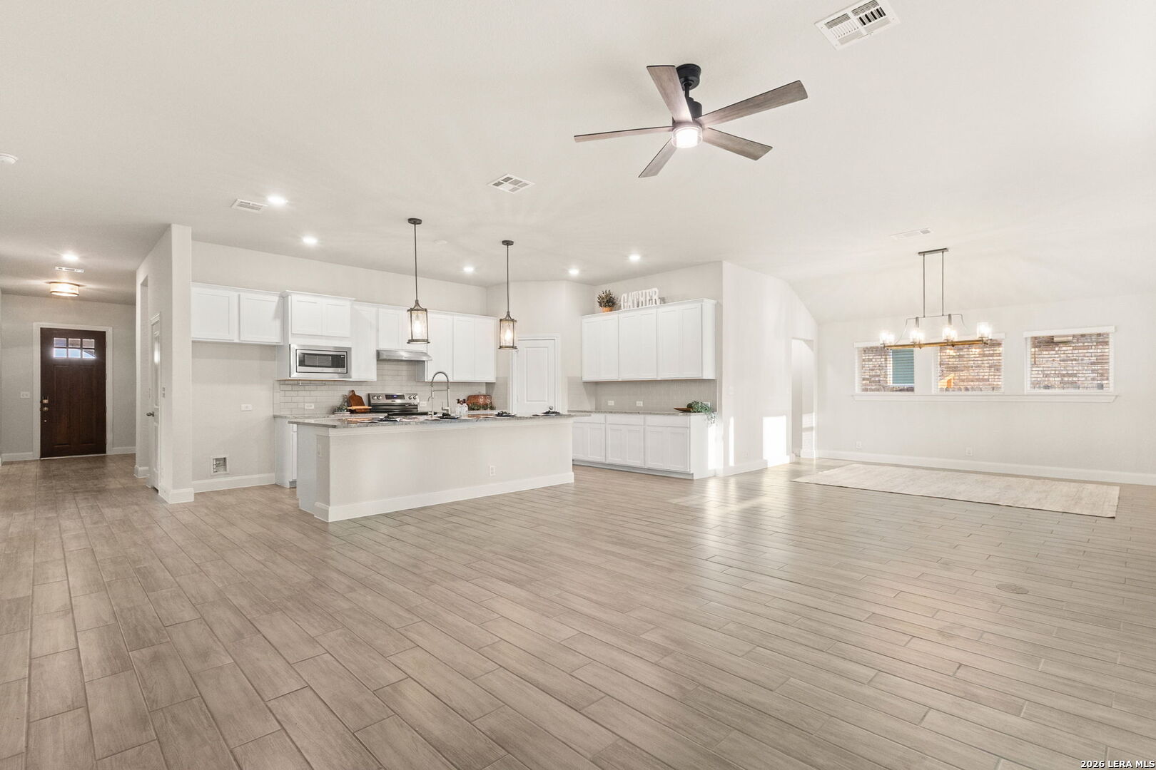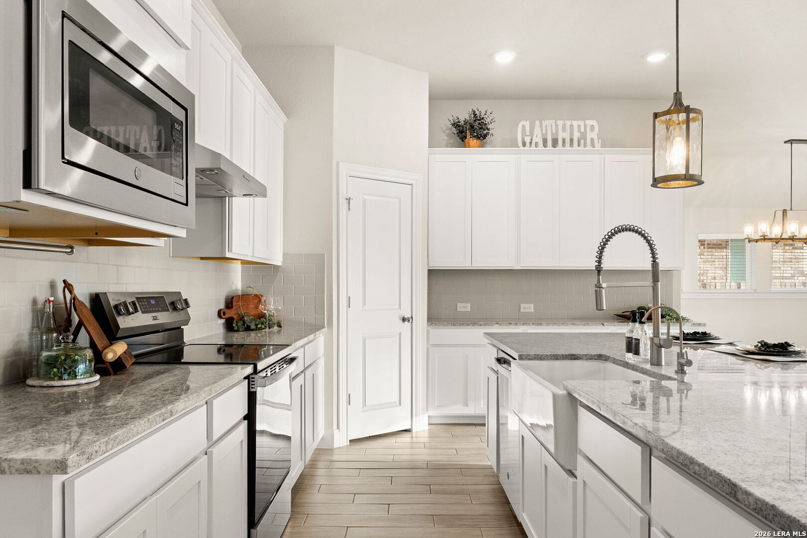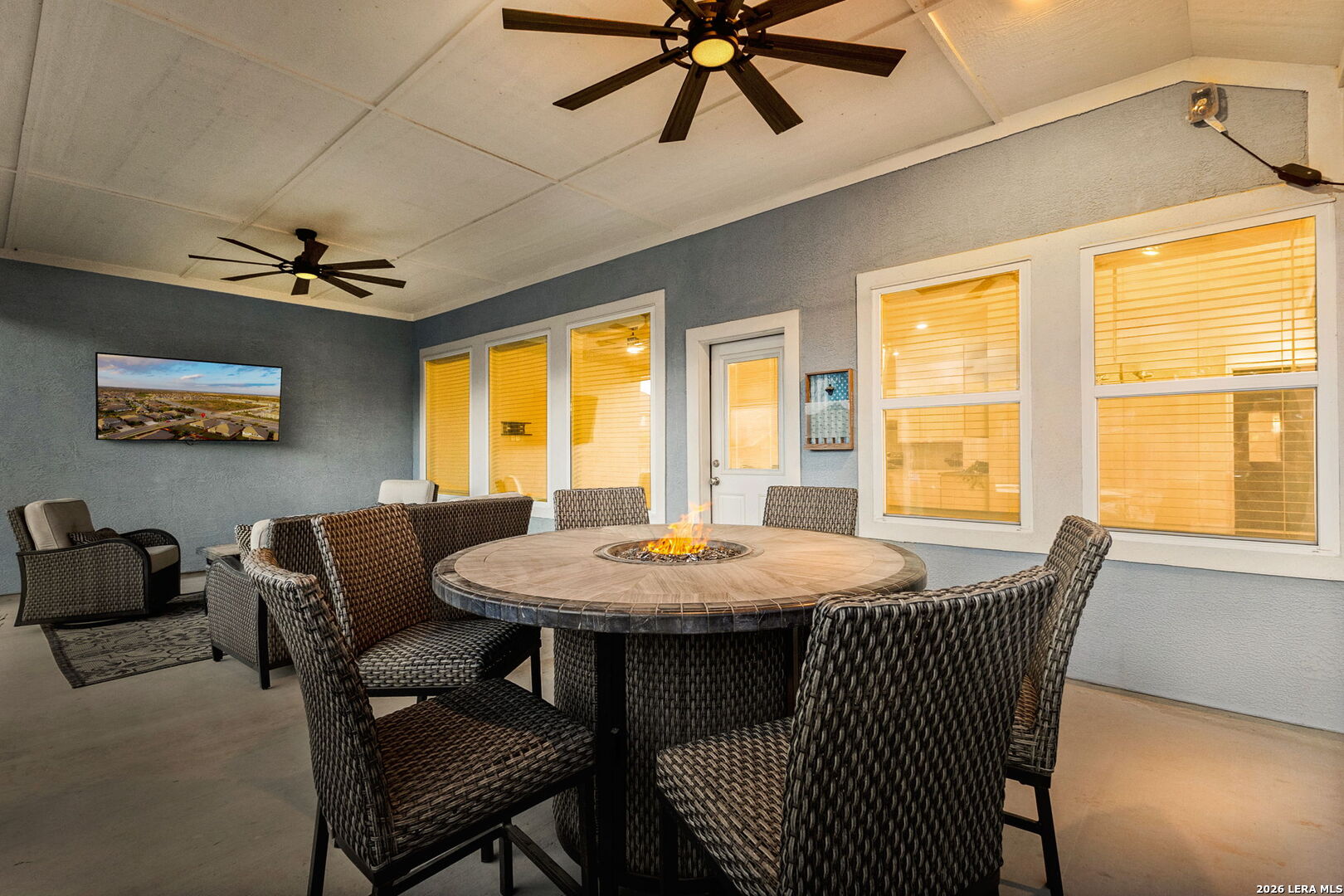 Set on a larger lot in Veramendi, this home brings together thoughtful upgrades, flexible space, and a backyard designed to actually be enjoyed. The layout flows easily from the main living areas into a kitchen equipped with a Kinetico water softener and reverse osmosis system at both the sink and refrigerator... small details that make a big difference in everyday living. Out back is where this one really shines. A dedicated fire pit patio, permanent exterior lighting, and patio lights create the perfect setting for evenings outside, while a roller shade adds comfort when the Texas sun is doing its thing. Tinted rear windows offer added privacy and efficiency without sacrificing natural light. Inside, you'll find smart upgrades like a whole home alarm system, in-wall pest control, and a decked attic for extra storage. The garage has been partially built out into a gym or workshop space, giving you flexibility depending on how you want to use it. Located in the highly desirable Veramendi community with access to trails, parks, and neighborhood amenities, this home is set up to make daily living feel just a little bit easier.