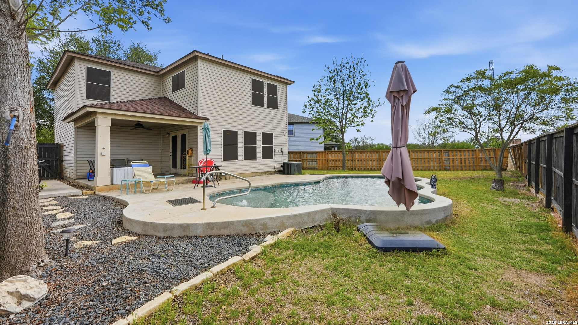 Welcome home to this beautifully maintained 3-bedroom, 2.5-bath property sitting on an oversized lot with mature trees and no back neighbors for added privacy. Enjoy your own backyard retreat featuring a sparkling in-ground pool, an extended concrete patio, and a sidewalk that wraps around to the front-perfect for entertaining or relaxing outdoors. Inside, the layout offers comfortable living with plenty of space to spread out, while the oversized lot gives you room to enjoy the outdoors. Located in Comal ISD (Davenport) and just minutes from IH-35, so commuting North or South is a breeze. A rare combination of privacy, space, and convenience-priced to sell and ready for its next owner!