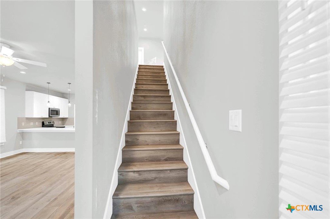 Modern construction. Proven rental appeal. Strong price position. Best-priced home in the area for its year built. Built in 2022 and located in a quiet dark-sky community, this two-story home offers clean finishes and a peaceful setting with no backyard neighbors and tree-top views from the primary suite. The open-concept main level features tile-plank flooring throughout (no carpet), a bright living area, stainless steel appliances, breakfast bar seating, a convenient half bath, and additional storage under the stairs. Upstairs, the primary bedroom includes an ensuite bath, with two secondary bedrooms and a linen closet down the hall. Enjoy the covered back deck overlooking nature — ideal for morning coffee, evening sunsets, and frequent deer sightings. Whether you're seeking a primary residence or an investment property, this home delivers flexibility and value in a desirable Wimberley setting — just minutes to downtown shopping, dining, and local events. Community park with playground and dog park within walking distance. Please note: the home is currently tenant occupied. 24-hour notice required for all showings - no exceptions. Pre-approval letter or proof of funds required prior to scheduling. Refrigerator, washer, and dryer convey. Photos shown are of a similar home with the same floor plan and finishes. Make this your primary home, secondary home or an investment property - you have great options at this price point!