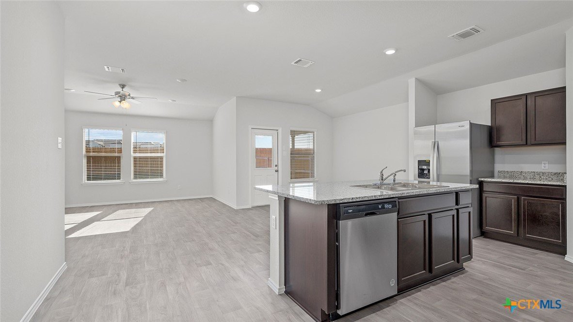 Step into the incredible Texas Cali floorplan at Eastern Wells in Jarrell, Texas. The 4 bedroom, 2-bathroom has a spacious 1,796 approximate square footage that is perfect as your new home. Entertain in the large, open space living room or gather in the beautifully designed kitchen. The kitchen features shaker-style cabinetry, granite countertops, and stainless-steel appliances. Or enjoy nature from under the backyard covered patio. You’ll also find three cozy carpeted secondary bedrooms with easy access to the secondary bathroom. The laundry room is also centrally located for convenience. Retreat to the luxurious primary bedroom, where you’ll find the attached primary bathroom with its double vanity and walk-in closet. The Texas Cali floorplan was designed with you in mind, this floorplan offers plenty of space to move around. The smart home package is included to keep your home connected. Control and secure your home through the Qolsys smart panel, through your phone, or even with your voice. With comfort and functionality, our Texas Cali floorplan is living at its finest. Contact us today to learn more about the Texas Cali floorplan.