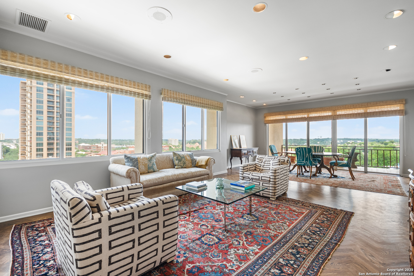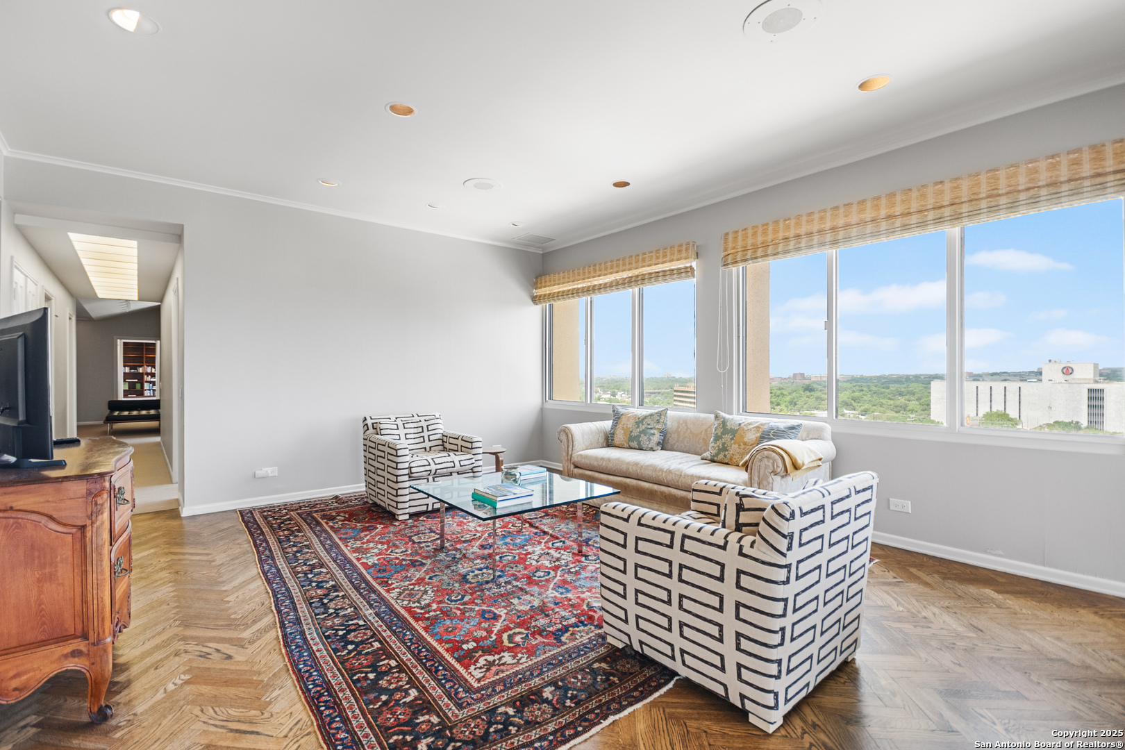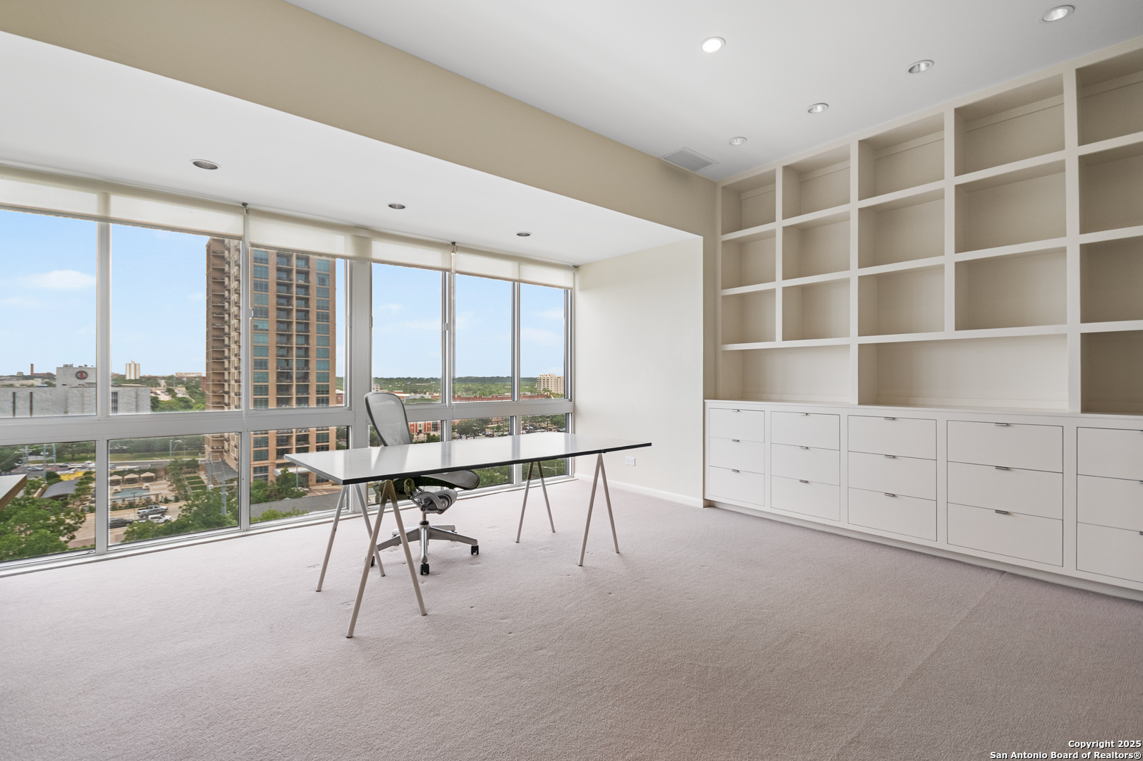 Perched high above the vibrant heart of Alamo Heights in San Antonio, this luxury high-rise condo offers a blend of modern sophistication, breathtaking views, and unmatched convenience. Step inside and you're greeted with floor-to-ceiling windows that flood the space with natural light and great views of the San Antonio Country Club golf course. The living space features sleek hardwood floors, cozy spaces, and incredible floor plan to take in the views from every room. The kitchen has a functional layout right off the main living room to make it easy for entertaining. The master suite is a tranquil retreat with a large walk-in closet, and a spa-inspired bathroom and a spacious sitting room. 3 generous size bedrooms with built in cabinets, custom closets, bookcases and storage. This condo is just a walk across the street to the San Antonio Country Club and quick access to city life.