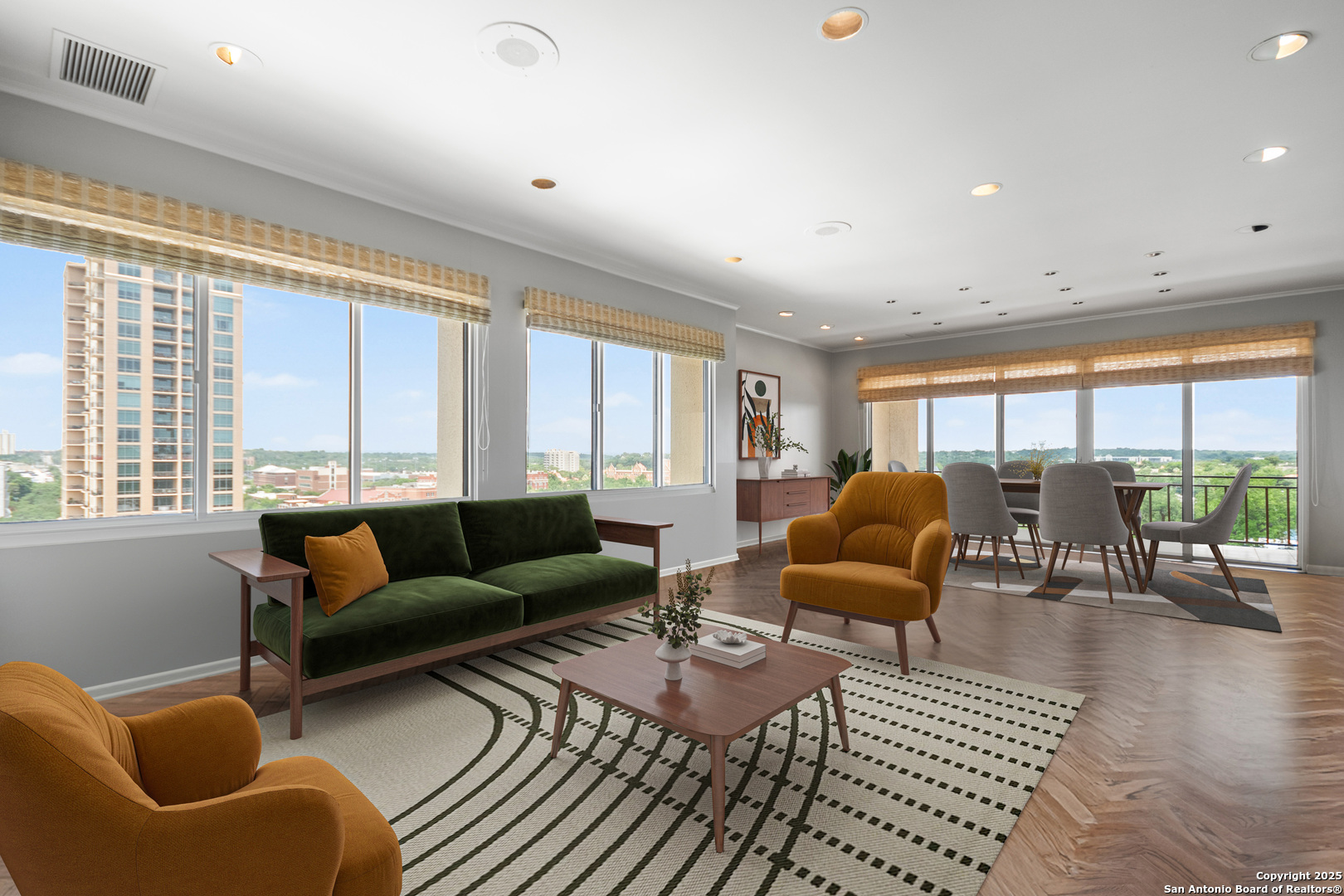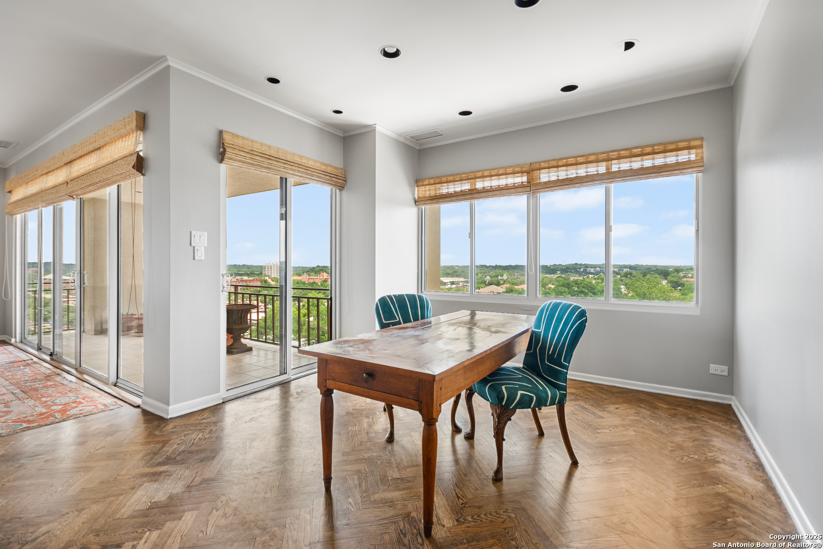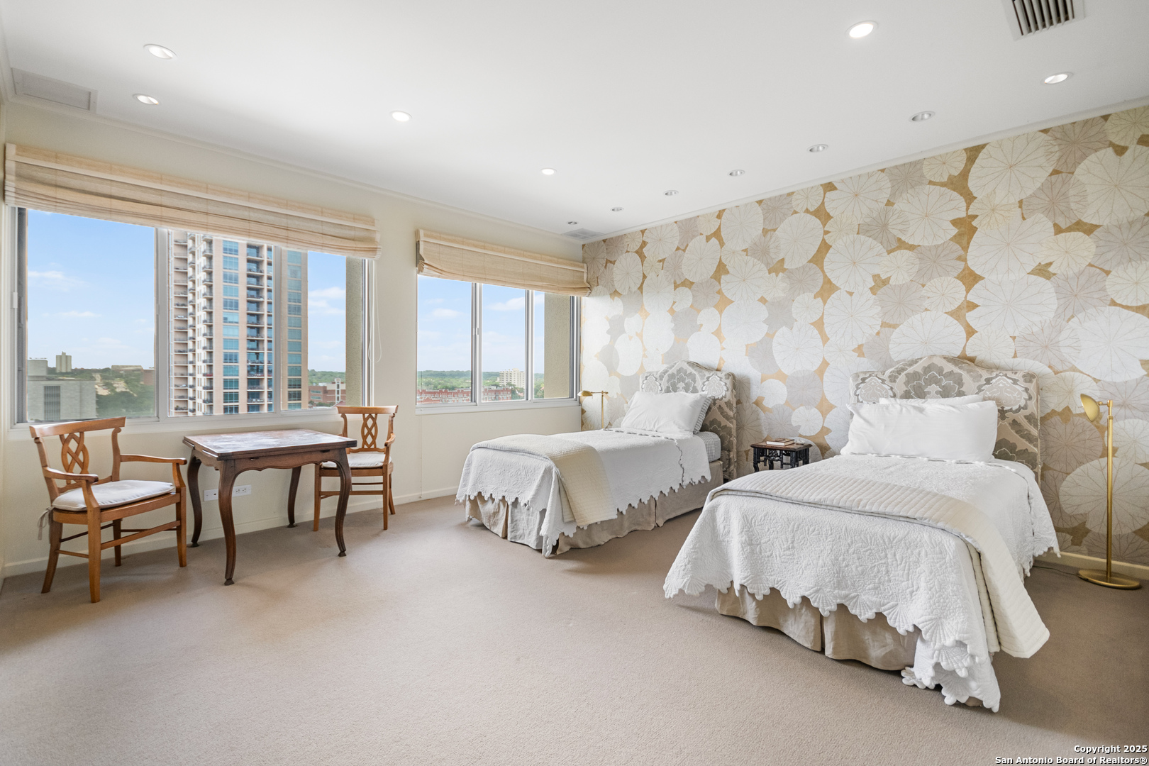 Perched high above the vibrant heart of Alamo Heights in San Antonio, this luxury high-rise condo offers a blend of modern sophistication, breathtaking views, and unmatched convenience. Step inside and you're greeted with floor-to-ceiling windows that flood the space with natural light and great views of the San Antonio Country Club golf course. The living space features sleek hardwood floors, cozy spaces, and incredible floor plan to take in the views from every room. The kitchen has a functional layout right off the main living room to make it easy for entertaining. The master suite is a tranquil retreat with a large walk-in closet, and a spa-inspired bathroom and a spacious sitting room. 3 generous size bedrooms with built in cabinets, custom closets, bookcases and storage. This condo is just a walk across the street to the San Antonio Country Club and quick access to city life.